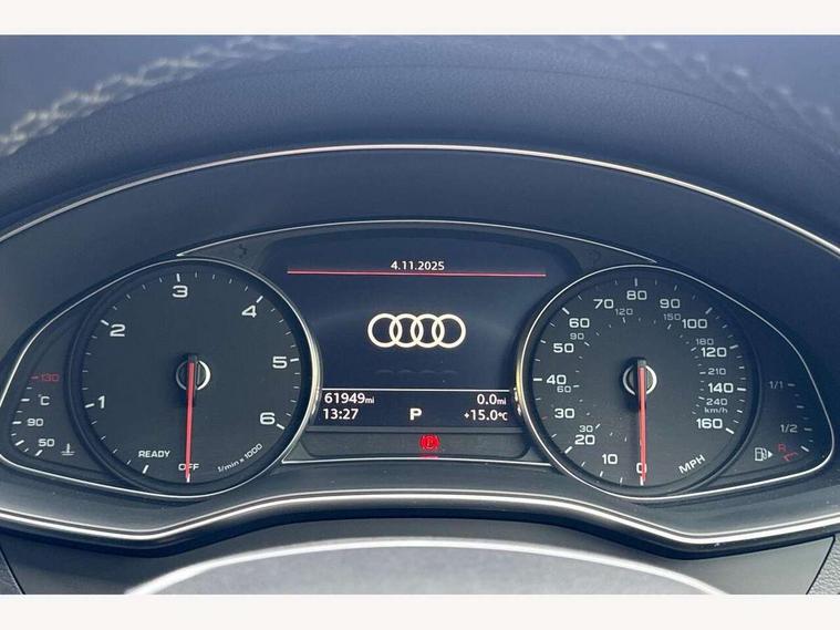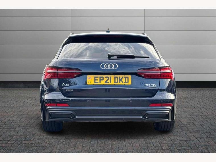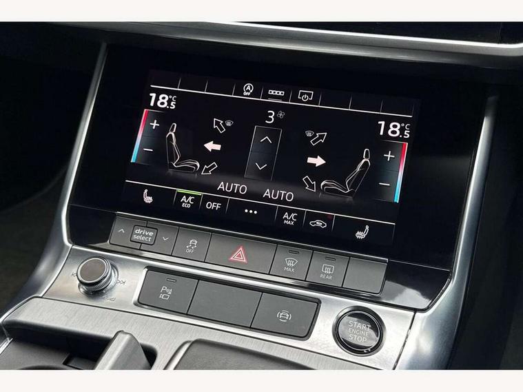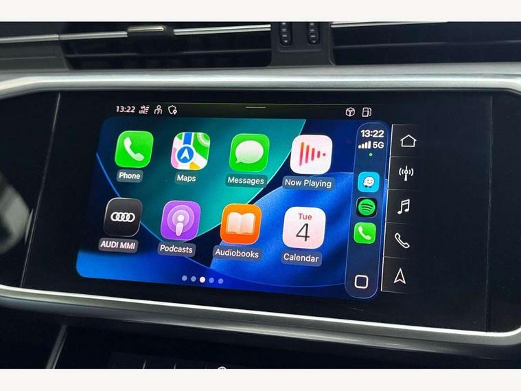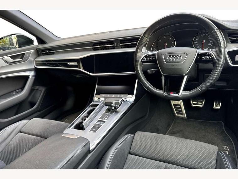 7" high resolution colour driver information display system, Audi connect safety and service (e-call), Audi drive select, Audi parking system plus - acoustic and visual park assist system for front and rear, Audi smartphone interface, Automatic start/stop system with coasting functionality, Bluetooth interface, Lane departure warning system, MMI navigation with MMI touch + twin touch screens 8.8" and 8.6" with haptic and acoustic feedback, Power operated tailgate, Progressive steering, Rear view camera, Service interval indicator, Voice control system, 12V Mild hybrid, 24 litre AdBlue tank, Diesel particulate filter, Quattro on demand, Sports suspension, Audi music interface, Audi sound system, Auxiliary input socket, DAB Digital radio, USB connection, Black roof rails, Electric front/rear windows, Frameless auto dimming interior rear view mirror, Gloss black exterior mirror housings, Gloss black highlights on the exterior area of the Audi Single frame, Gloss black highlights on the front and rear bumpers, Gloss black highlights on the radiator grille, Gloss black highlights on the side windows trim strips, Headlight washers, Heat insulating glass in side and rear windows, Heat insulating glass in windshield, LED rear lights, LED signature front daytime running light, Matrix LED headlights with dynamic rear indicators, Matt black rear diffuser with diffuser strip and tailpipes in chrome, Matt black side air intake grille with inlay in matt aluminium, Privacy glass, Rain and light sensors, Rear roof spoiler, Signature rear LED light design, 2 zone deluxe electronic climate control, 4 way electric lumbar support for driver and front passenger, 40/20/40 split folding 3 rear seat bench in 3 parts with rear centre armrest, Black cloth headlining, Electrically adjustable front seats with driver memory, Front centre armrest, Front head restraints, Front/rear floor mats, Heated front seats, Height/reach adjust steering wheel, Illuminated door sill trims with S logo, Illuminated sun visors with vanity mirrors, ISOFIX child seat mounting and Top Tether with front passenger airbag deactivation, Leather gear knob, Luggage compartment system, Rear headrests, Stainless steel pedals and foot rest, Tool kit and car jack, LED Interior Ambient Lighting Pack - A6, Non smoking pack - A6, 3 point seatbelts on all seats, Airbags - Front side, front and rear including head, Audi pre-sense front, Black seatbelts, EBD - Electronic brakeforce distribution, Electromechanical parking brake, Electronic Stability Control (ESC) including ABS, ASR and EDL, Extended pedestrian protection measures, Seatbelt monitoring, Tyre pressure warning light, Warning triangle and first aid kit, Anti theft alarm with tow away protection, Anti-theft wheel bolts and wheel loosening detection, Immobiliser, Keyless Go, Remote central locking, Matt brushed aluminium dark inlays, 20" 5 V spoke star design Audi sport cast aluminium alloy wheels in matt titanium look,