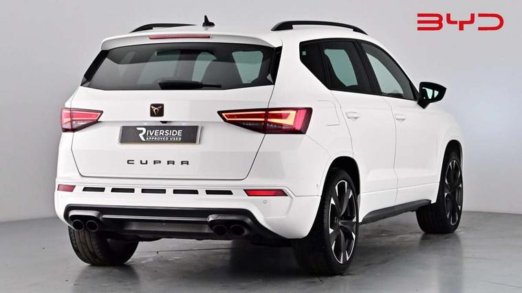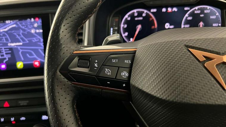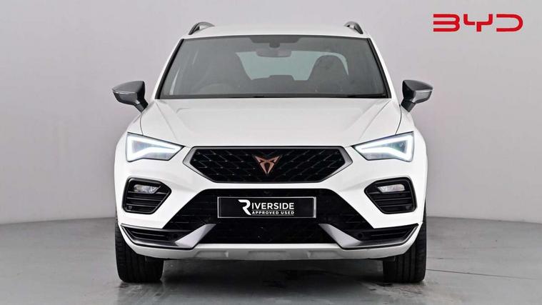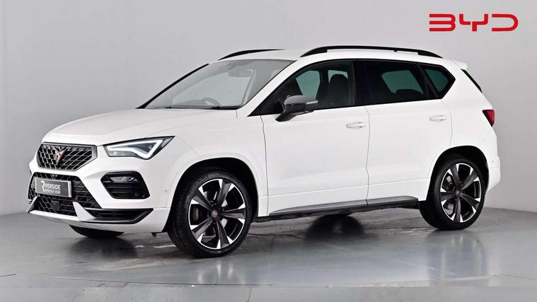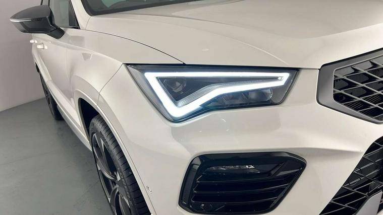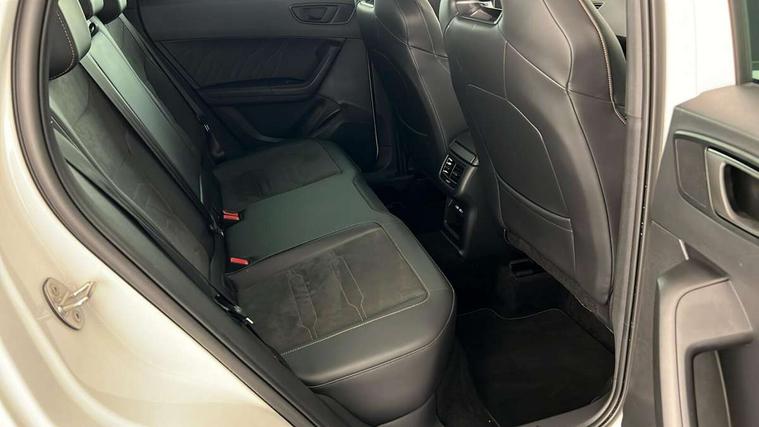 Cruise control system with speed limiter, CUPRA drive profile -Normal, Sport, CUPRA and Individual modes, steering/throttle response, gearshift mode, sound actuator and dynamic chassis control, Digital cockpit, E-call, Outside temperature gauge, Progressive power assisted steering, Rear view camera, Self parking functionality (includes front and rear parking sensors), Top view camera, Trip computer, Wireless full link smartphone integration, Wireless phone charger, CUPRA sport suspension, Beats audio system, Steering wheel mounted audio/phone controls, Body colour bumpers with dark aluminium diffusor, Body coloured wheel arch surrounds, Dark tinted rear windows, Daytime running lights, Door mirrors with welcome CUPRA light silhouette, Dynamic headlight range control with self adjusting whilst driving, Electric adjustable/heated/folding door mirrors, Front and rear electric windows, Front grille frame in chrome, Full LED headlamps with lens and LED front fog lamps with cornering function, Gloss black door mirrors, Gloss black roof rails, Gloss black side mouldings, Gloss black side window trim, Illuminated aluminium front door sill, LED rear tail lights with dynamic indicators, Rear fog lights, Rear side wing doors, Rear spoiler, Rear wash/wipe, Specific CUPRA design front bumper, Third brake light, Visible twin black exhaust pipes in both sides with dark aluminium diffuser, 12v socket in front, 3 seat bench in 2nd row, 60/40 split folding rear seat, Aluminium pedals, Bucket sport seats in dinamica upholstery, Dual zone climate control, Front and rear head restraints, Front centre armrest, Front seat back storage pockets, Heated steering wheel, Height adjustable driver and passenger seat with lumbar adjustment, ISOFIX points in outer rear seats with top tether anchorage points, Leather steering wheel and gear knob, Multicoloured ambient lighting with LED interior illumination, Rear armrest and easy back seat release mechanism from boot, Single front passenger seat, Steering wheel mounted gearshift paddles, Storage compartment in roof console for sunglass, Storage compartment under driver's seat, Convenience pack - Ateca, Interior lighting pack - Ateca, Navigation system plus pack with DAB - Ateca, 3x3 point rear seatbelts, ABS, Traction control system (TCS), Electronic stability control (ESC) and Electronic differential lock system (XDS), Airbags - Driver and front passenger airbag with deactivation, front side, two curtain and driver's knee airbags, Black brake callipers with CUPRA logo, Electric parking brake with auto hold function, Front and rear seatbelt reminder, Front assist with autonomous emergency braking, Hill hold control, Manual rear child locks, Tiredness recognition system, Tyre pressure monitoring system, Alarm, Keyless entry, Locking wheel bolts,
