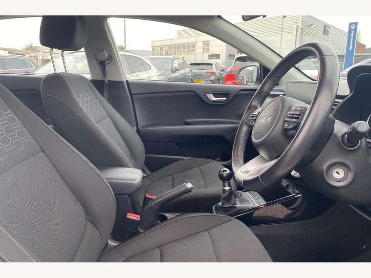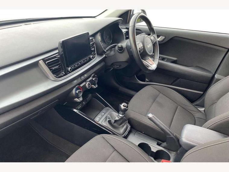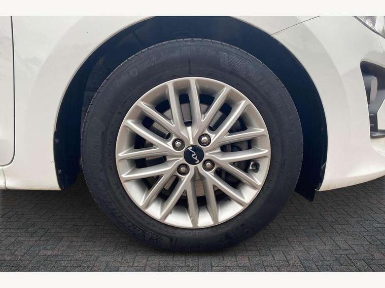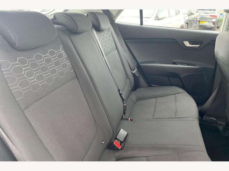 8" touch screen, Apple car play/Android Auto, Cruise control + speed limiter, Digital clock, Electric power steering, Emergency call service, Emergency stop signalling system, Gear selection indicator, Manual speed limit assist (MLSA), Outside temperature display, Rear parking sensor, Reversing camera system with dynamic guidelines (Integrated into centre fascia screen), Tachometer, Tailgate, Trip computer, Voice control system, Windscreen washer level indicator, Intelligent Stop and Go, 6 speakers, Bluetooth connectivity including audio streaming, DAB Digital radio, Front USB port for media connection, Rear USB port, Steering wheel mounted audio controls, 3rd brake light, Aeroblade-type front wipers, Automatic lighting control, Bi-function projection headlights, Black grille with chrome surround, Body colour bumpers, Body colour door handles, Body coloured door mirrors, Cornering light, Electric adjustable/heated/folding door mirrors, Front electric windows with driver's auto up/down function, Headlamp levelling, Heated rear window, LED daytime running lights, LED indicators in door mirrors, Projection front fog lights, Rain sensor, Rear electric windows, Rear fog lamp, Rear side wing doors, Rear wash/wipe, Speed variable front wipers, Tinted glass, Welcome home function, 3 passenger assist grips, 3 seat bench in 2nd row, 60/40 split/folding 2nd row of seats, Air conditioning, All round height adjustable headrests, Centre Console with Storage Box and Sliding Armrest, Dash illumination dimmer switch, Driver's seat height adjuster, Driver/passenger sunvisors and illuminated vanity mirrors, Front and rear door map pockets with bottle holder, Front passenger seatback pockets, Front USB charger port and 12V socket, ISOFIX top tethers and lower anchor points, Leather trimmed gearshift, Leather trimmed steering wheel, Load area light, Luggage area parcel shelf, Luggage hooks, Overhead console with sunglasses holder, Premium cloth upholstery, Silver interior door handles, Single front passenger seat, Tilt/telescopic adjustable steering wheel, Advanced driving assistance pack - Rio, 3-point front seatbelts, 3x3 point rear seatbelts, ABS with Electronic Brakeforce Distribution (EBD) and Brake Assist System (BAS), Automatic unlocking of doors in case of impact, Cornering brake control (CBC) and Straight line stability (SLS), Electronic stability control (ESC) and vehicle stability management (VSM), Front seatbelt pretensioners + load limiters, Height adjustable front seatbelt anchors, Hill start assist control (HAC), Passenger airbag deactivate switch, Rear child proof door locks, Seatbelt warning, Traction control, Twin curtain airbags, Twin front airbags, Twin front side airbags, Tyre pressure monitoring system, Anti theft alarm, Deadlocking system, Engine immobiliser, Locking wheel nuts, Remote central door and tailgate locking with fold-away key, Speed sensitive auto door locking, Visible vehicle identification number, Silver fascia trim, 15" Alloy wheels, Tyre mobility system,