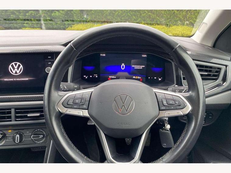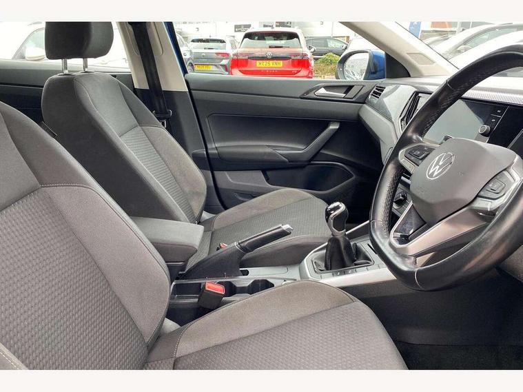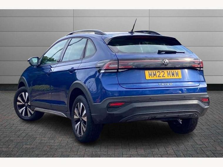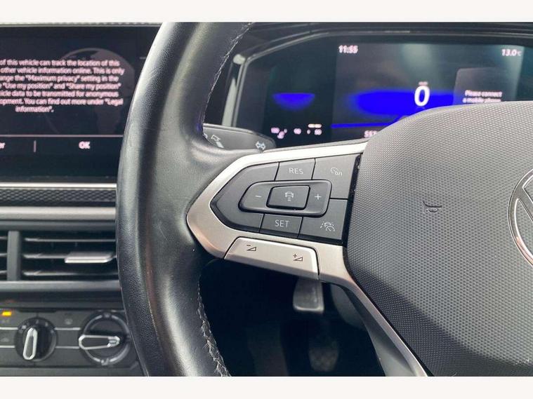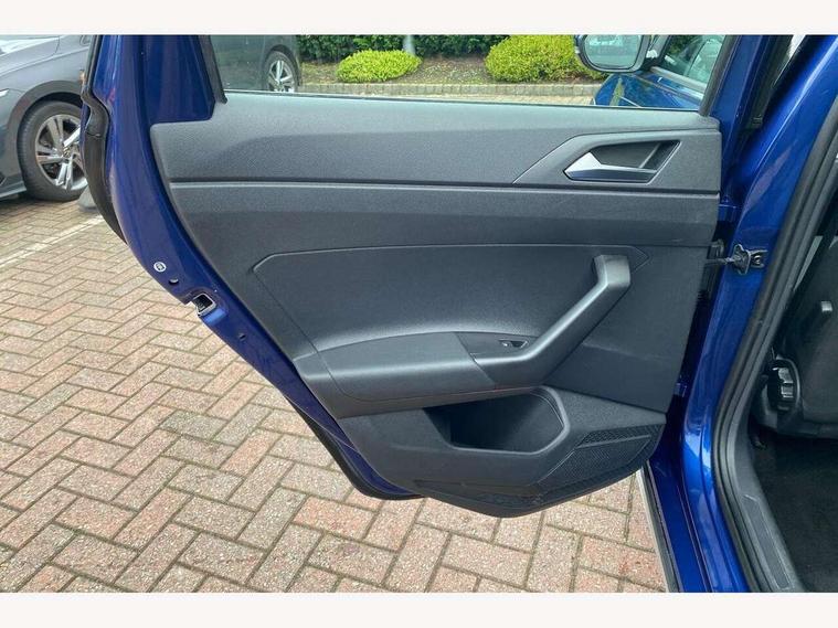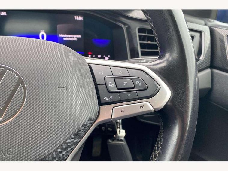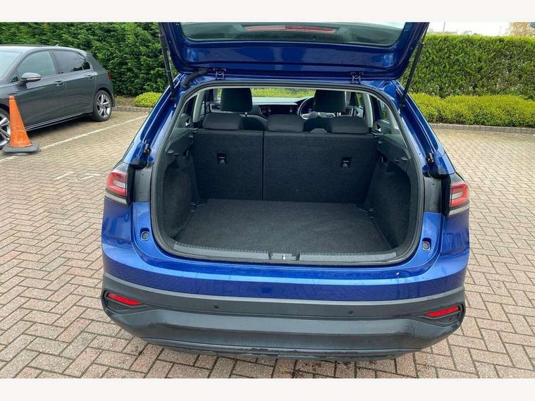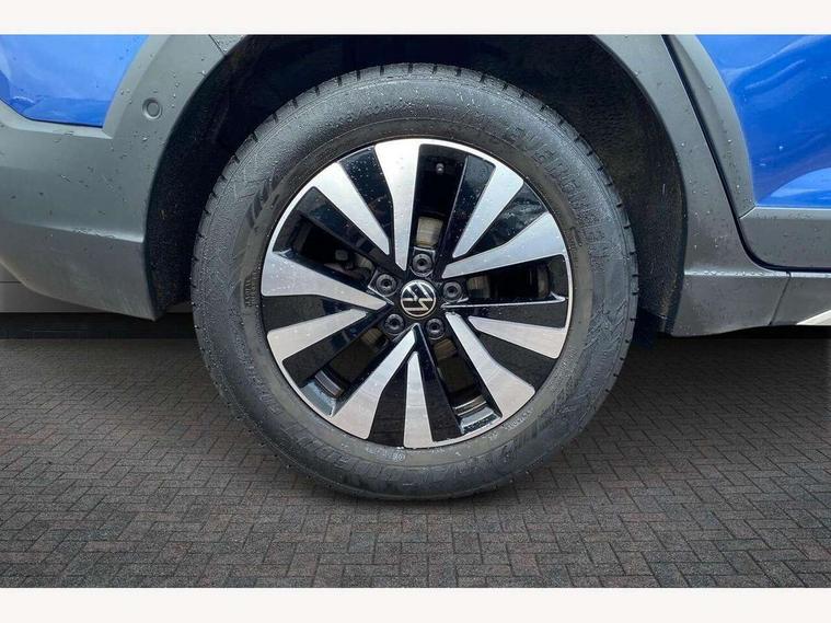 App-Connect including App-Connect Wireless, Driver alert system, e-Call (emergency call), Power Steering, Travel assist including emergency assist, Washer fluid level indicator, Wireless Charging including Bluetooth, Start-stop system with battery regeneration (recuperation - energy recovery during braking), Digital radio reception (DAB+), Diversity antenna for FM reception, WeConnect plus, Ambient lighting with logo projection, Aspherical driver's exterior mirror, Auto headlights, Body coloured bumpers, Body coloured exterior mirror housings and door handles, Electric windows, External USB type C socket and charging sockets, Front fog lamps with cornering function, Headlight range control, Heat insulating glass windscreen, LED headlamps, LED rear combination lamp, LED third brake light, Left convex exterior mirror, Power folding adjustable/heated exterior mirrors and front passenger exterior mirror lowering function, Rear fog light on one side, reversing light on both sides, Rear side wing doors, Rear wash/wipe with intermittent wipe setting, 'Slash/ Austin' Cloth upholstery, 12V socket in centre console, 2 front reading lights, 3 rear head restraints, 3 seat bench in 2nd row, Black carpets, Child seat anchor for child seat system i-Size, 2x top tether and child seat anchor in front on front passenger side, Door and side trim panels in titan black, Driver and front passenger seat height adjustment, Front centre armrest, Handbrake lever handle in leather, Height and reach adjustable steering wheel, Leather trimmed gear knob, Leather wrapped multifunction steering wheel, Luggage compartment floor, Luggage compartment light, Lumbar support for driver's and front passengers seat, Seat covers in titanium black, Single front passenger seat, Split folding backrest with centre armrest and unsplit rear seat bench, Storage compartment under front seats, Sun visors with illuminated vanity mirrors, Chrome Package - Taigo, Drivers assistance pack - Taigo, Light and Sight pack including High beam assist - Taigo, 2 x 3-point seatbelts/outer rear seats with ECE label, 3-point seat belts in front with pretensioner and height adjustment, 3-point seatbelt for centre rear seat, Driver and front passenger airbags with front passenger airbag de-activation, front side and curtain airbags, Driver and front passenger safety-optimised head restraints, Electronic stability control, Extended and predictive pedestrian/ cyclist protection, Front and rear disc brakes, Front curtain and side airbags with center airbag, Hill start assist, Manual rear child locks, Single tone horn, Tyre pressure loss indicator, Anti-theft alarm system with interior monitoring, backup horn, and towing protection, Anti-theft wheel bolts, Lava stone black gloss/matt decorative inserts in dash and front door panels, Low rolling resistance tyres,