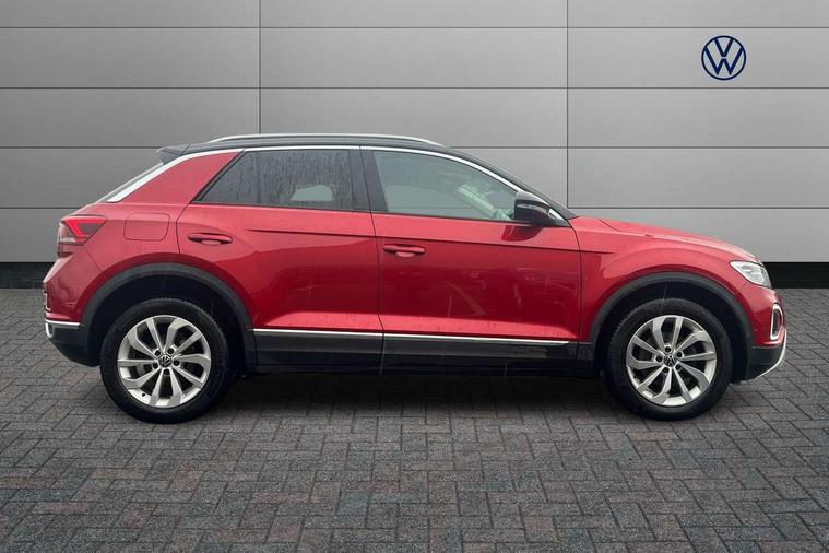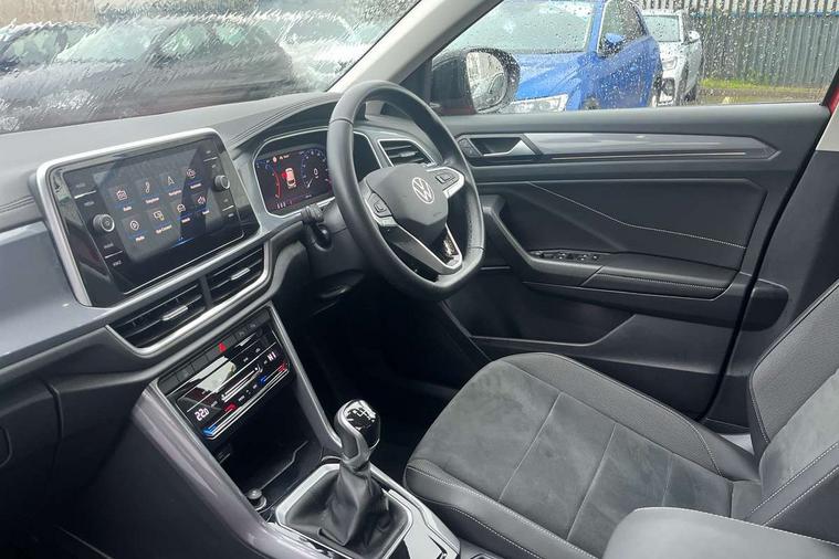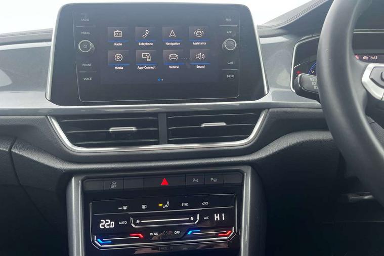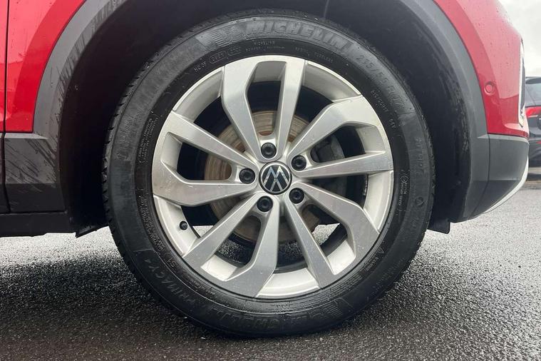 10.25" Digital cockpit pro, Bluetooth mobile phone interface, Driver alert system with fatigue detection, Driver tips and journey analysis, Dynamic road sign display, Emergency call service, Lane keeping system Lane Assist, Modified key software - reduce switch off time for key status change to Long no motion, Online services, Park assist including front and rear parking sensors, Power assisted speed sensitive steering, Service interval indicator, Tailgate/trunk lid release from outside, Think blue trainer driver tips and journey analysis, Warning sound and light for front seatbelts unfastened, Wireless app connect, Battery regeneration during braking, Front shock absorption, Rear shock absorption chassis with increased ride height, Start/stop function with battery regeneration, Diversity antenna for FM reception, Front and rear 6 speakers, Music playback - MP3, WMA and AAC files, Premium USB cable in choice of either Apple or Android smartphone compatibility, SD card slot, Simultaneous pairing of 2 compatible mobile devices, Title and cover art display, We Connect and We Connect Plus functionality, 3rd brake light, Auto dimming interior rear view mirror, Automatic hazard lights activation under emergency braking, Automatic headlight control with LED separate daytime running lights with coming/leaving home function, Body colour sports bumpers with silver metallic underbody fascia, Dynamic headlight range control with self adjusting whilst driving, Extended roof spoiler, Exterior mirrors aspherical on driver side, convex on front passenger side, External USB type C socket and charging sockets, Front windscreen wiper with intermittent wipe and 4 position delay, Heated rear window, LED Plus headlamps, LED rear combination lamps, LED rear number plate lights, LED tail lamp rear comination lamps, Light mode for poor weather, rain, fog or snow, Power windows with comfort operation and circuit breaker, Rain sensor, Rear exhaust tailpipe, Rear fog light on one side and reversing lights on both sides, Rear side wing doors, Rear wash/wipe with intermittent wipe setting, Remote electrically foldable door mirrors, puddle lights and reverse activated passenger's door mirror, 12V power socket in centre console, 3 rear head restraints, 3 seat bench in 2nd row, 4 load lashing points in luggage compartment, Air care climatronic air conditoning system with active combination filter and 2-zone temperature control, Chrome plated radiator grille inserts, air vent surrounds and light switch surrounds, Door and side trim panel with leatherette insert, Drawer under drivers seat, Front + rear carpet mats, Front centre armrest, Front comfort sports seats, Front cupholders x 2, Front footwell illumination, Instrument lighting, white adjustable panel illumination, Interior ambient lighting and surround lighting, Interior light delay, Isofix child seat preparation, Leather gearshift handle, LED interior light with switch off delay/dimmer and 2 front/rear LED reading lights, Load-through provision with cup holder when folded down ('Unsplit rear seat bench, split folding backrest, with centre armrest), Luggage compartment lighting, Non-folding front passenger seat backrest, Single front passenger seat, Storage compartment in left and right luggage area, Storage compartment in rear doors, Storage compartments in driver and front passenger doors, Sunvisors with illuminated vanity mirrors, Variable boot floor, height adjustable and removable, Driver assistance pack without proactive passenger protection - T-Roc, 3 point height adj front seatbelts + pretensioners, 3 point seatbelts in outer rear with ECE label, ABS, Child locks on rear doors, Driver and front passenger airbag with front passenger airbag deactivation, Driver and front passenger safety-optimised head restraints, Drivers seatbelt reminder, Electronic parking brake, Electronic Stability Control (ESC) inc EDL (Electronic Differential Lock) and ASR (Traction Control), Front and rear passengers curtain airbag system including front side airbags, Front assist with city emergency braking and pedestrian monitoring, Front disc brakes, Front seat side impact airbags, Predictive pedestrian protection, Rear disc brakes, Single tone horn, Tyre pressure loss indicator, Volkswagen roadside assistance, Alarm with interior protection, Anti-theft alarm system with interior monitoring, backup horn, and towing protection, Remote central locking with SAFELOCK, radio remote control with 2 remote control folding keys, Trims for alloy wheels,