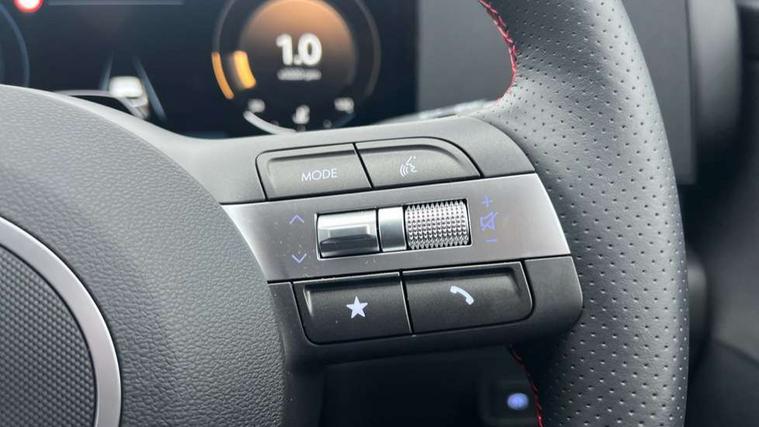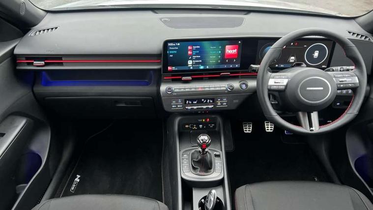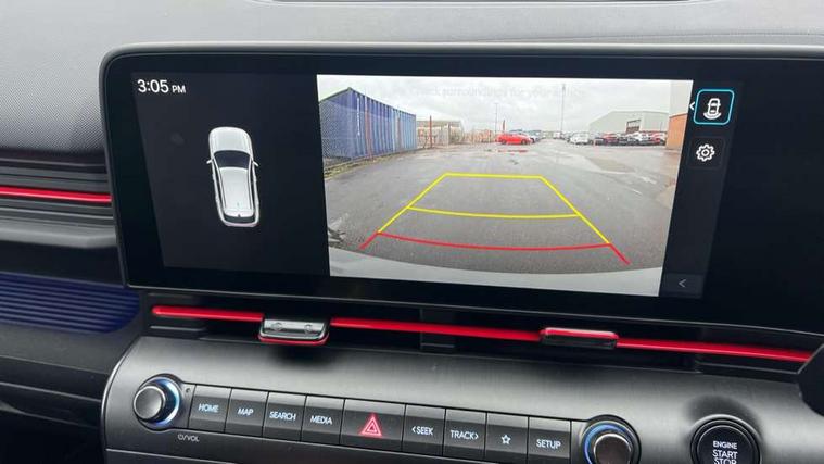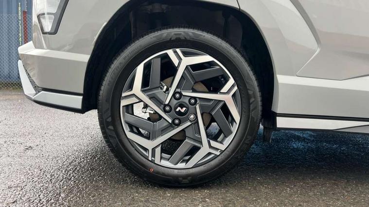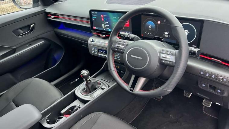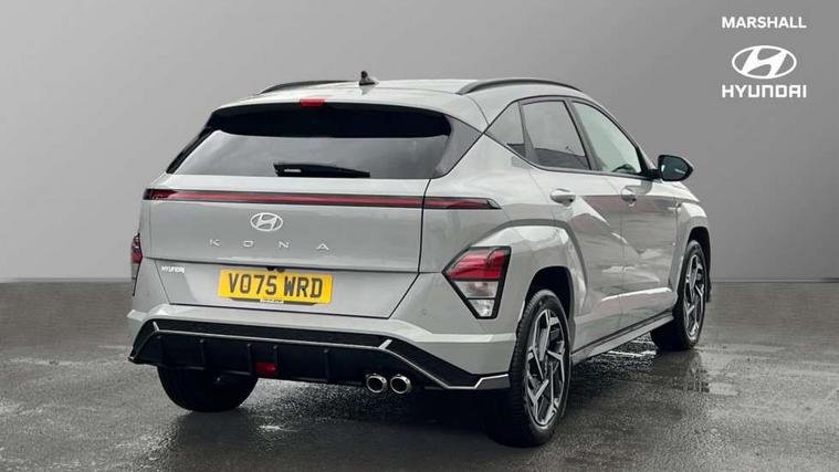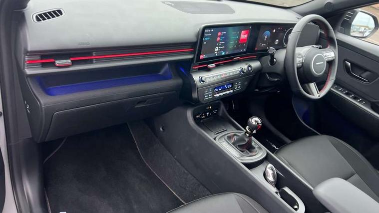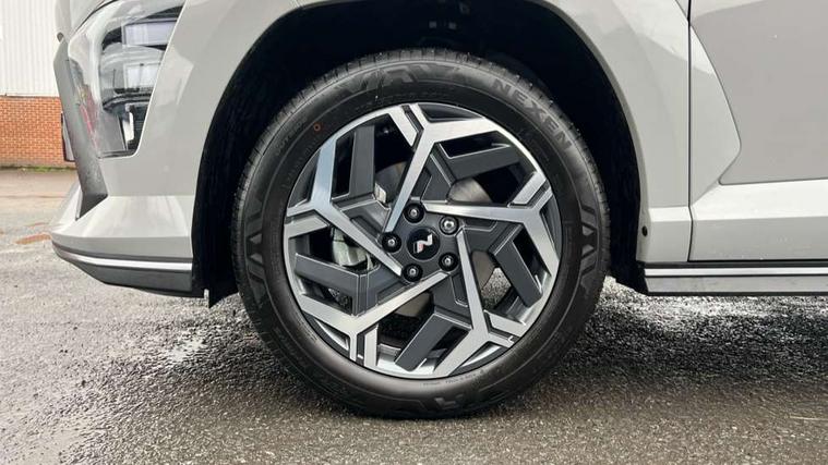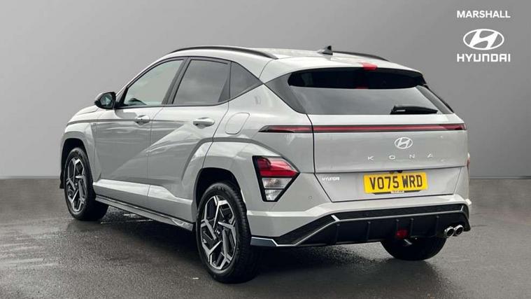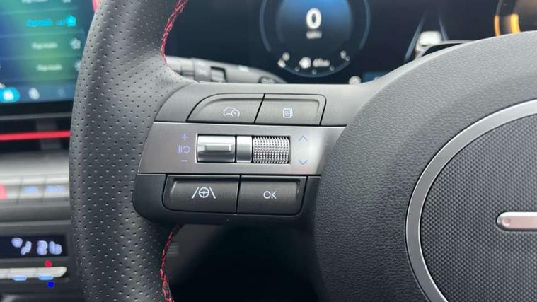 12.3" touchscreen centre console display satellite navigation with bluelink, live services and mapcare, Bluetooth connectivity with voice recognition, Cruise control, Driver status monitor (DSM), Driver supervision instrument cluster with 12.3" LCD display, eCall emergency call system, Feature on demand - Enabled, Forward collision avoidance assist (FCA 1.5) - Car, pededstrian, cycle and junction turning, Front parking sensor, Height adjustable power tailgate, Intelligent speed limit assist, Lane follow assist, Lane keep assist, Leading vehicle departure alert (LVDA), Parking system with rear camera and guidance system, PAS, Rear parking sensor, Roadside assistance, Wireless phone charging pad, Wireless Smartphone Integration includes Apple CarPlay and Android auto, 2 front USB C and 2 rear USB C charging points, DAB Digital radio, Speakers - Front, rear and tweeters, Steering wheel audio, phone and cruise controls, Auto dimming rear view mirror, Automatic headlights with dusk sensor, Automatic windscreen wipers with rain sensor, Body colour exterior door handles, Body coloured wheel arch inserts, Door mirror LED indicator lights, Electric front windows with anti-trap mechanism and one touch control, Electric rear windows, Electrically adjustable and heated door mirrors, Full LED MFR headlights, Gloss black door mirrors, LED daytime running lights, LED upper and lower rear lights, Power folding door mirrors, Privacy glass - Rear windows and tailgate, Rear roof spoiler with integrated LED brake light, Rear side wing doors, Rear wiper, Roof rails, Solar glass with front door glass and windscreen, Tinted glass in front and rear doors, Windscreen auto defog function, 12V power outlet in front console, 2 zone climate control, 3 seat bench in 2nd row, 40/20/40 split folding rear seat, Adjustable head restraints, Aluminium pedals, Ambient lighting, Driver and passenger front seat pockets, Driver's seat lumbar support, Driver/passenger manual seat height adjustment, Driver/passenger sunvisors and illuminated vanity mirrors, Floor mats, Heated front seats, Heated rear seats, Heated steering wheel, Height/reach adjustable steering column, Leather wrapped steering wheel and gear knob, LED centre interior light, LED front interior light, Luggage compartment LED lighting, Luggage shelf, Metal paint effect interior door handles, N Line cloth upholstery, Rear centre armrest with cupholders, Single front passenger seat, Vertical adjustment rear head restraints, N Line exterior design pack - Kona, Trailer wiring package - Kona, Airbag - front, front side, curtain and centre front airbag, Anti-lock brake system (ABS), Childproof rear door locks, Downhill brake control, Electric parking brake, Electronic stability control, Fixed 3 point for second row centre passenger seatbelt, Hill start assist control (HAC), Rear seat alert, Tyre pressure monitoring system, Alarm/immobiliser, Rear occupant alert, Remote central locking, Smart key with keyless entry and start/stop button, Five year annual vehicle health checks, Temporary mobility kit (TMK),