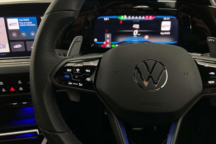 Adaptive cruise control (ACC) with speed limiter and front assist (reacting to vehicles pedestrians and cyclists), Car2X communication, Digital cockpit pro - 10.25" high resolution TFT dash display screen with customizable menus and information, Driver alert system, Dynamic road sign display, eCall - Emergency call service for SOS calls to emergency response, Lane assist, Lane change assistant, Mobile phone interface with wireless inductive charging function, Multifunction camera for distance control, PAS, Speedo, rev counter, electronic odometer, trip, service interval display, exterior temperature and fuel gauge, Start/Stop function, Travel assist with emergency side assist with electrically foldable door mirrors, USB-C ports in the front and rear centre console with increased charging performance, Warning buzzer and light for front seatbelts unfastened, Wireless app connect, 4Motion 4 wheel driver, Front differential lock, Petrol Particulate Filter, XDS electronic differential lock for improved traction and handling, Premium USB cable in choice of either Apple or Android smartphone compatibility, ''R' name plate, Ambient lighting, exterior illuminated styling elements at the sides, Auto dimming rear view mirror, Automatic headlamp activation with Coming home and Leaving home feature, Automatic headlights, Body colour bumpers, Body colour door handles, Body colour rear roof spoiler, Front and rear electric windows, Heat insulating glass windscreen, Heated rear windscreen, High level 3rd brake light, Highway light, Illuminated front grille, IQ.Light - LED Matrix headlights, dynamic headlight control with advanced high beam control matrix dipped main beam + LED DRL + 22 LED lights, LED front fog lights with 5 honeycomb design, LED License plate illumination, LED rear combination lamp inlcuding dynamic turn signal, Matt chrome effect door mirrors with integrated indicators, Performance rear spoiler, Rain sensor, Rear fog light on one side and reversing lights on both sides, Rear side wing doors, Rear tinted glass 65% light absorbing from B pillar backwards, Rear windscreen washer and wiper with interval delay, Remote electrically heated, adjustable and foldable door mirrors, including door mirror puddle lights and reverse activated kerb-view adjustment on pa, Welcome light, 12V socket in front centre console, 12V socket in luggage compartment, 3 rear head restraints, 3 seat bench in 2nd row, 3 zone climate with controls in the rear, Aluminium gear knob, Ambient lighting - Customisable 30 colour ambient lighting, Brushed stainless steel pedals, Chrome plated surround to electric mirror button, window switch and air vent surrounds, Drivers and front passengers sun visors with vanity mirrors, Front + rear carpet mats in recycled material, Front centre armrest with storage compartment, Front cupholders x 2, Front passenger seat, Front reading lights x 2 incorporating LED technology, Front seat lumbar support adjuster, Front sports seats, Glovebox, Height adjustable front seats, Height and reach adjustable steering wheel, Isofix child seat preparation for 2 rear child seats and front passenger seat, Leatherette door armrests and centre armrest, Luggage compartment lighting, R leather wrapped multi function sports heated steering wheel with extended paddle shift, Removable luggage compartment cover, Soul black instrument panel, Soul black roof lining, Split folding backrest with centre armrest and unsplit rear seat bench, Woven fabric storage compartments in front and rear doors, R styling pack - Golf, 3 point height adj front seatbelts + pretensioners, 3 rear three point seatbelts, ABS, Blue brake callipers in front with R logo, Child locks on rear doors, Driver and front passenger airbag with front passenger airbag deactivation, Drivers and front passengers safety optimised head restraints, Electronic parking brake with auto hold, ESC (Electronic Stability Control), Extended pedestrian protection measures, Front and rear passengers curtain airbag system including front side airbags, Front centre airbag, Front disc brakes, Front side airbags with curtain airbags, Rear disc brakes, Two tone horn, Tyre pressure monitoring system, Alarm with interior protection and deactivation via infotainment system, Electronic engine immobiliser, Keyless entry with start/stop button on centre console, Carbon grey decorative inserts in dash and front door trim panels, High gloss black centre console, Tyre mobility kit Includes 12V compressor and tyre sealant,