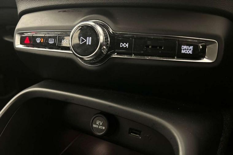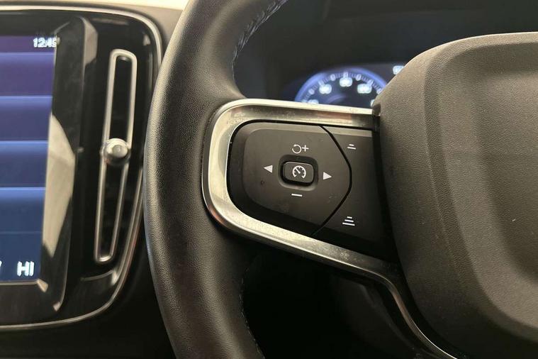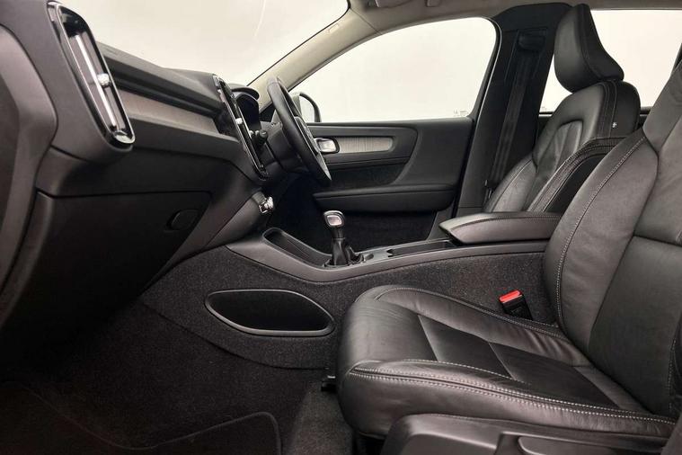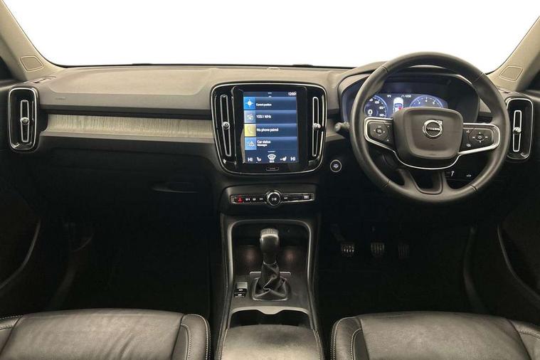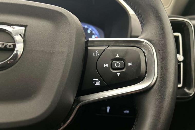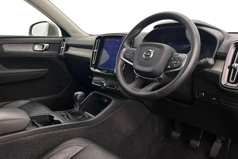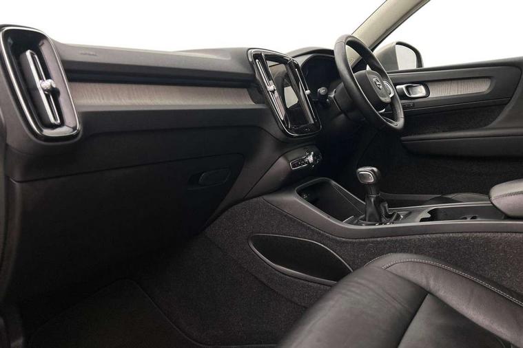 12.3" Active TFT crystal driver's instrument display, 9" centre console portrait touch screen, Adjustable steering wheel force, Bluetooth hands free telephone kit, Drive mode selector, E-call, Lane keep assist with driver alert control, Oncoming Lane Mitigation, Power operated tailgate, Sensus navigation with European mapping and traffic information, Speed limiter, Speed sensitive steering, Voice activated control for key functions, Volvo on call, Dynamic chassis, DAB Digital radio, Steering wheel mounted remote controls, Adaptive brake lights with high level LED brake lights, Auto dimming interior mirror, Automatic headlamp levelling, Chrome window surround, Colour coordinated auto folding and heated power door mirrors, Front aluminium tread plates, Front and rear electric windows, High gloss black front grille with chrome inserts, High gloss black sensus surround deco, High Gloss silver front and rear skid plate, Home safe and approach lighting, Integrated roof rails in silver, LED Headlights + Active high beam incorporating daytime running lights, Rain sensor with automatic windscreen wiper activation, Rear side wing doors, Rear wiper, Roof antenna, Roof spoiler, Visible VIN plate, 12V socket in front tunnel console and luggage compartment, 2 zone electronic climate control and rear air vent, 3 seat bench in 2nd row, 3 Spoke tailored steering wheel with chrome trim, 60/40 versatile split folding rear seat, A-pillar parking ticket holder, Bright metal luggage threshold, Centre console cupholders and storage, Floor mats, Front footwell illumination, Front headrests, Front reading light and theatre lighting, Glovebox bag hook, Height/reach adjustable steering column, Height/tilt adjustable driver's seat, Illuminated glovebox, Illuminated luggage compartment, Illuminated vanity mirrors, Isofix attachments on outer rear seats, Leather faced upholstery, Leather gearknob, Load protection net, Multi directional lumbar support, Power driver seat with memory + exterior mirrors memory, Rear armrest / integral cup holders / storage tray, Rear coat hook, Single front passenger seat, Underfloor cargo storage, Vanity mirror with ticket holder, Park assist pack - XC40, 3x3 point rear seatbelts, City safety includes pedestrian, cyclist and large animal detection and front collision warning with full auto brake, Drivers knee airbag, Dual stage driver/passenger airbags, Electronic parking brake with auto hold, First aid kit, Front and outer rear seatbelt reminder and pretensioners, Front seats SIPS airbags, Hill descent control, Hill start assist, Inflatable curtain, Passenger airbag cut-off device, Road sign information display, Run off Road Mitigation, Run off Road Protection, SIPS (Side Impact Protection System), Slippery road and hazard light alert, Stability and Traction Control with Spin control, Engine Drag Control and Corner Traction Control, Tyre pressure monitoring system, Vehicle deceleration control with Anti-lock Brake System, Electronic Brake Distribution and Emergency Brake Assist, Warning triangle, WHIPS whiplash protection system - front, Anti-theft alarm including immobiliser/volume sensor + level sensor, Care key with user defined top speed, Key integrated remote control central locking + fuel flap with deadlocking system and auto open/close power windows, Locking wheel nuts, Private locking for tailgate, Driftwood inlays,