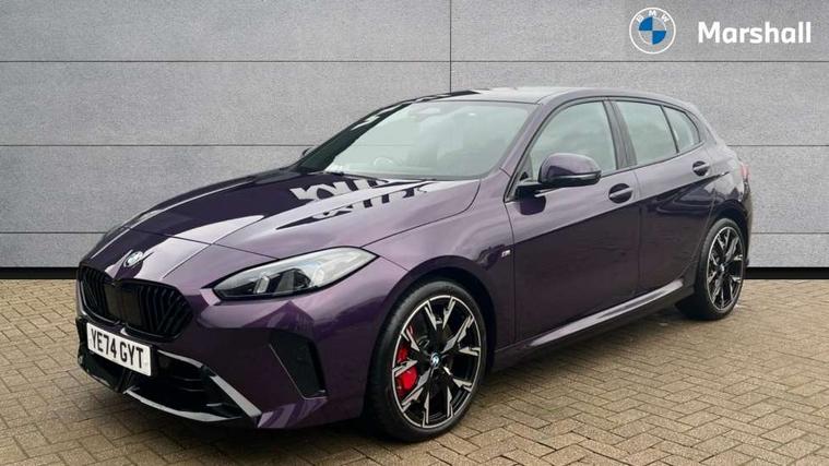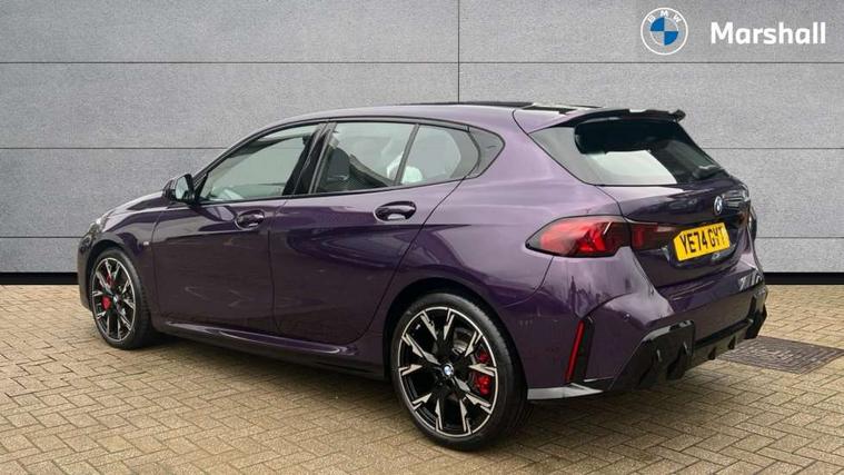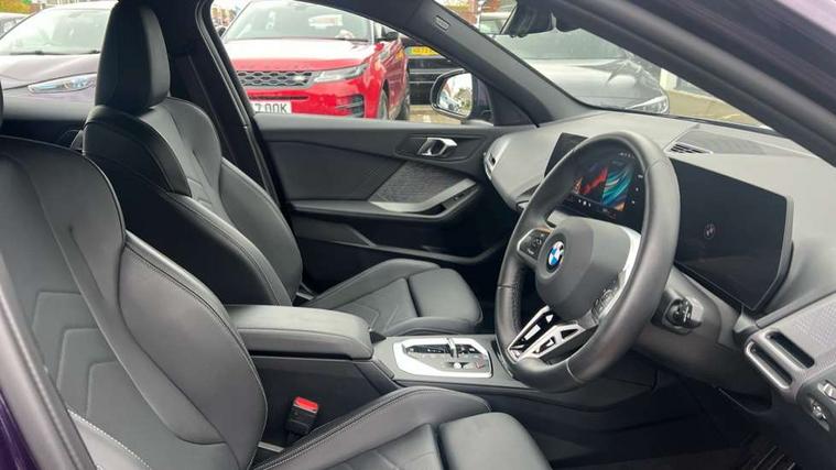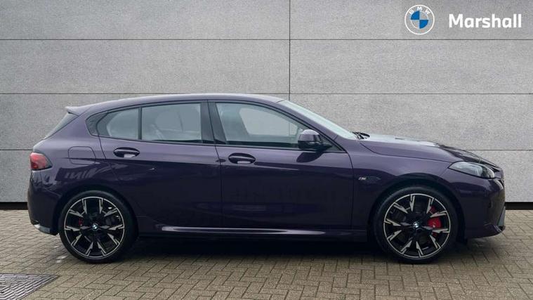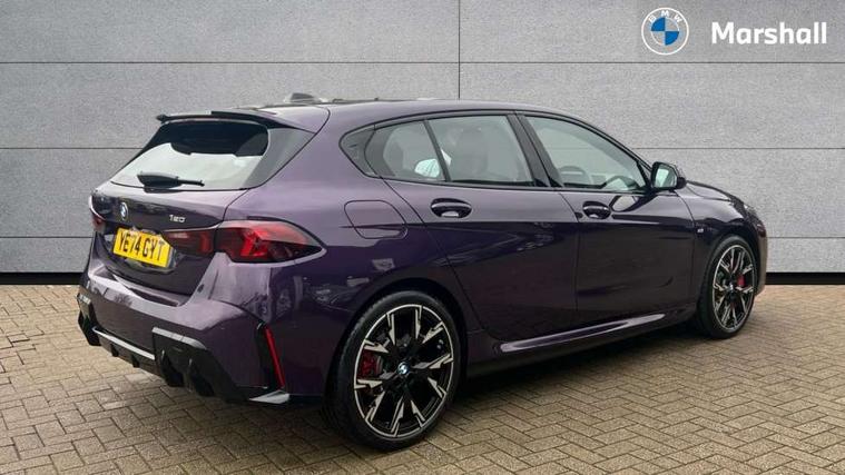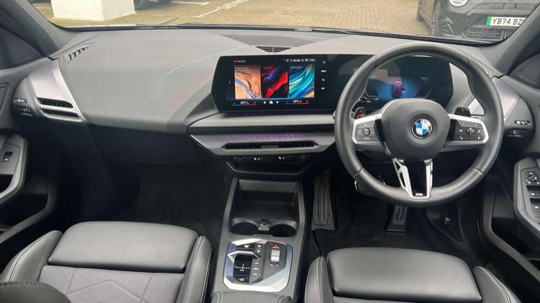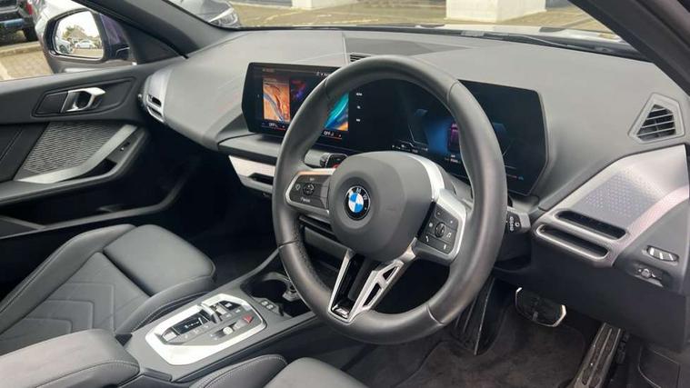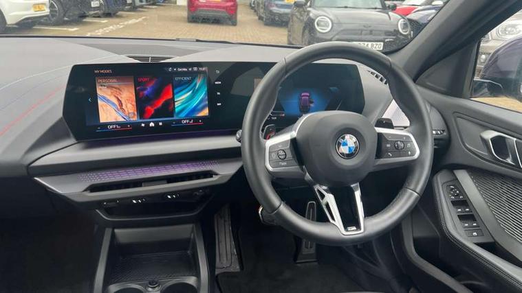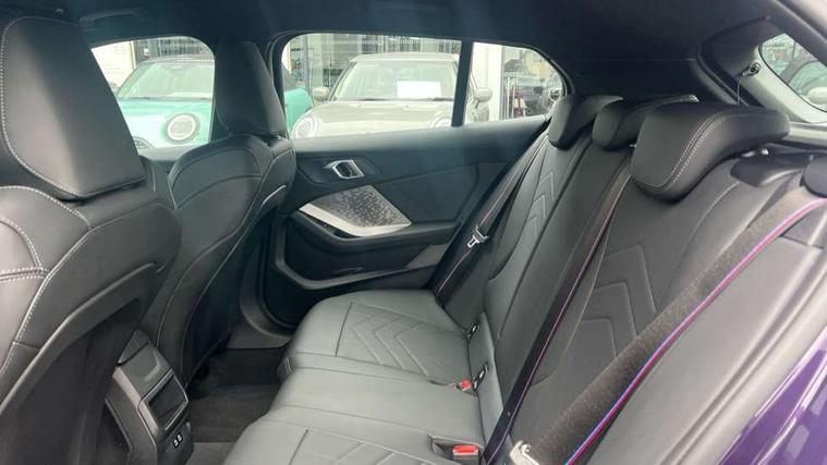 Active guard plus, Attentiveness assist, Bluetooth / WiFi interface for wireless connection of mobile terminal devices and audio streaming, BMW ConnectedDrive online services, BMW Live cockpit plus, BMW Teleservices, Check Control warning system for monitoring of lights and door/luggage compartment open warning, Cruise control with speed limiter, Eco pro mode, Electric power steering with Servotronic steering optimised at all speed ranges, Front and rear parking sensors, Front axle single joint with specific axle kinematics to minimise drive influences on steering + provide increased rigidity agile driving behaviour, Integrated owners handbook, Lane departure warning system, Oil sensor for level and grade, On board computer, Optimum shift indicator, Park assist including reversing assistant, lateral parking aid and reversing assist camera, Personal Profile, Pull away assistant, Rigidly mounted rear subframe - Multi link construction with separate spring / damper configuration and excellent driving characteristics, Speed limit Info including no-overtaking indicator, Speedometer, 49 litre fuel tank, Aluminium lightweight construction, Anti roll bar front and rear, Balancer shaft, Double VANOS twin scroll turbocharging system, Drive Performance Control, Electronic differential lock, High precision injection, M Adaptive suspension, Petrol Particulate Filter, Twin tube gas filled shock absorbers with degressive characteristic curve, VALVETRONIC engine management, DAB Digital radio, Auto dimming rear view mirror, Automatic headlight beam throw control, Automatic windscreen wipers and automatic headlight, Body colour door handles, Body colour mirror caps, Body colour roof trims, Chrome 'M' logo side designation, Chrome exhaust twin tailpipes round 90mm in left, Chrome kidney grille frame with Satin Aluminium struts, Direction indicator side lights in exterior mirrors, Electrically adjustable exterior mirror with mirror adjustment switch on drivers armrest and aspheric on driver side, convex on passenger side, Fading support, Folding side mirrors with auto dimming/folding wing mirrors with auto dimming, Follow me home headlights, Front and rear bumper system with replaceable deformation elements, Front and rear electric windows with open and close fingertip control, anti trap facility and comfort closing, Front door sill finishers in black plastic with M designation in metallic look, Green tinted heat protection glazing, High gloss shadowline window frame, Recess cover mirror frames and B/C pillar embelisher trim, High level third brake light, Integrated front windscreen with washer jets, LED daytime running lights, LED eyebrow turn indicators, LED front fog lights, LED Headlights, Lightweight engineering, Matt black air guide grilles, Matt black wheel arch trim, Nearside reverse light in rear light cluster, Preparation for high beam assistant, Rear fog lights, Rear side wing doors, Rear window wiper, Shark fin antenna, Trailer stabilisation logic, Visible VIN plate, Welcome lighting, 12V power socket in front centre console with blanking plug, 3 rear seat head restraints, 3 seat bench in 2nd row, 3 spoke sports leather steering wheel with black leather and stitching, pearl chrome decorative finish, specific M Badge, Anthracite headlining, Black boot net with lashing eyes, Cargo function on 2nd seat row, Child seat ISOFIX attachment for two outer rear seats and front passenger seat with anchorage points, Conditioned based service, Driver and front passenger backrest net on rear, Driver and front passenger seat heating, Driver side folding compartment in instrument panel, Folding rear clothes hook, Four grab handles integrated in roof lining, Front and rear door pockets with bottle holders, Front and rear side armrest integrated into door trim, Front armrest, Glove compartment, Height adjustable front head restraints, Luggage compartment for bag hooks on left and right, foldable luggage compartment liner and four lashing eyelets, Manual adjust steering wheel, Multi-function controls for steering wheel, Rear seat backrest with manual 60:40 split folding with 3 top tether clips integrated on rear of seat panels, Single front passenger seat, Storage compartment in centre console, Storage compartment in luggage compartment, Stowage of the parcel shelf in luggage compartment trim, Sun visors with vanity mirrors and insert tab, Two front centre console cupholders, Type C two USB ports in rear centre console, Velour floor mats, Connected pack professional - 1 Series, Interior lights pack - 1 Series, M Sport exterior styling aerodynamics pack - 1 Series, 2 tone horn, 3 point seatbelts on all seats, front pyrotechnic belt tensioners, stopper and belt force limiters, rear coded belt buckles, Airbags - Front driver/passenger, front and rear curtain head protection, front side, manual deactivation of front passenger airbag, Anti lock braking system (ABS) with brake assist, BMW emergency call, Brake drying, Braking readiness, Child proof locking system in rear door, Comfort modes, Cornering brake control, Crash sensor activating of airbags, Unlocking doors, hazard warning lights, interior light, safety battery terminal, Driver and front passenger seat belt security check, Dynamic stability control + (DSC+), Dynamic Traction Control - DTC, Electrically operated hand brake including automatic hold function, Front and rear disc brakes, Seatbelt warning, Side impact protection, Tyre pressure monitoring system, Warning triangle and first aid kit, Central locking switch for all doors, fuel filler cap and luggage compartment, Deadlocking function system to all doors, Drive away locking system on all doors and luggage compartment with de-activated in iDrive settings, Locking wheel bolts, Remote control with integrated key with High-gloss Black inlay and M designation and 1 button for open/ close lock, window, open luggage compartment, Start/stop button illuminated in centre console with keyless engine start and auto 