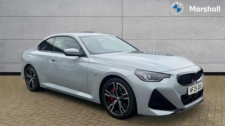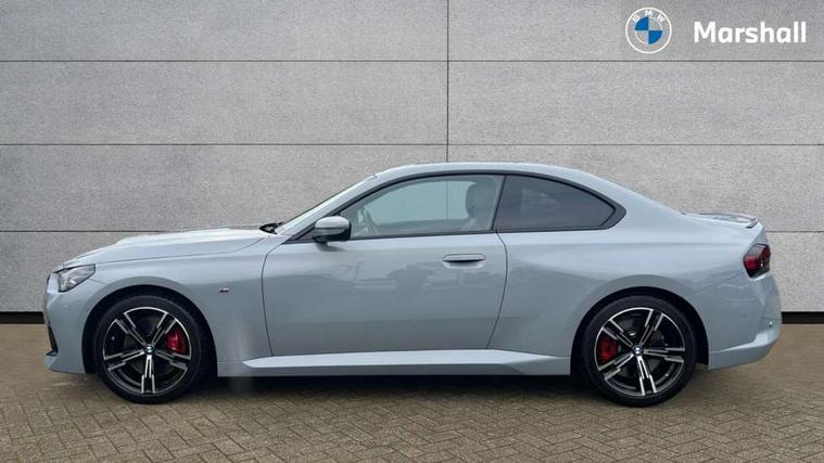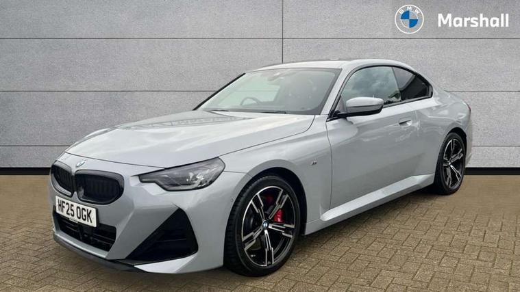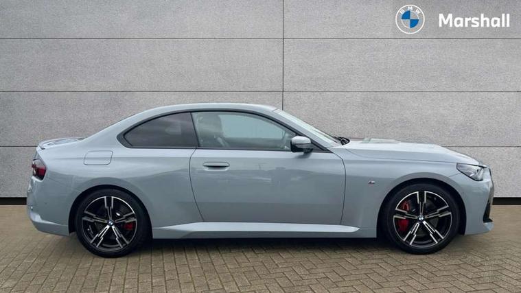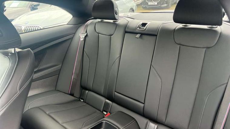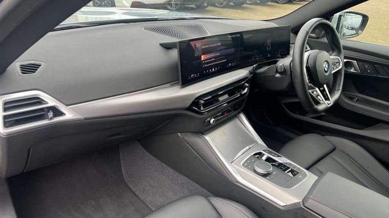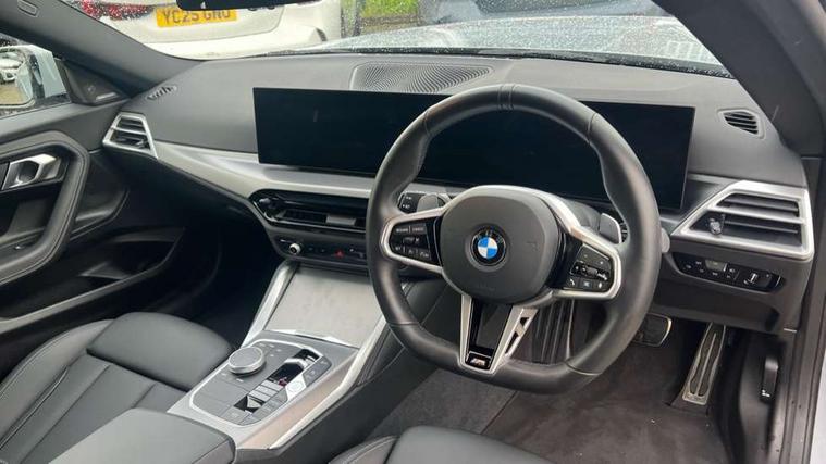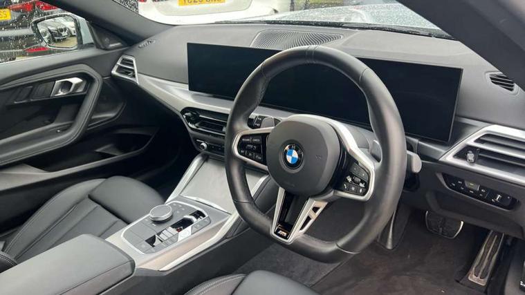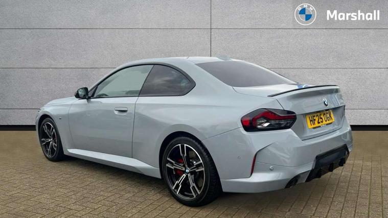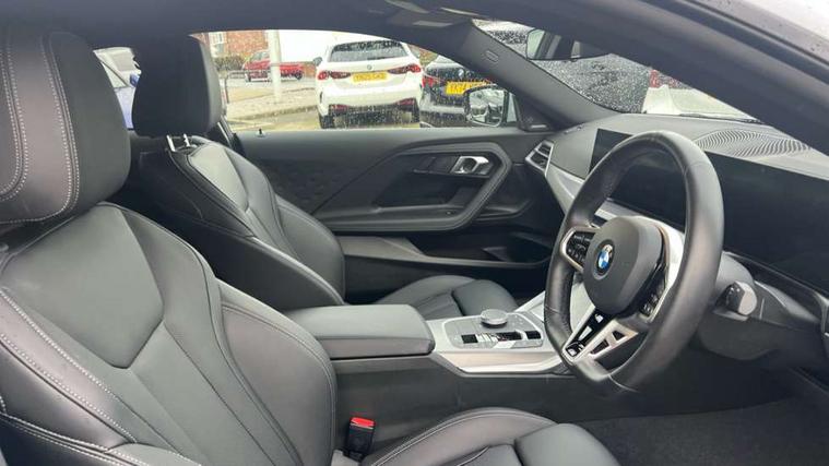 2 USB connections for charging and transferring data, Active guard plus, Attentiveness assist, Bluetooth with USB, BMW ConnectedDrive online services, BMW Intelligent Personal Assistant, BMW Live cockpit plus, BMW operating system 8 with variable, configurable widgets display information in real time, BMW Teleservices, Check Control warning system for monitoring of lights and door/luggage compartment open warning, Control Infotainment, Direct selection buttons, Drive off assistant, Eco pro mode, Electric power steering, eSim with 5G connectivity, Front and rear parking sensors, iDrive controller with turn and press function, Integrated owners handbook, Intelligent functions, Oil sensor for level and grade, Optimum shift indicator, Personal Profile, Smartphone integration, Touch operation on control display, Variable sport steering, Widescreen multi-media display, WiFi interface for wireless connection of mobile terminal devices, Aluminium lightweight construction, Balancer shaft, BMW TwinPower Turbo four-cylinder petrol engine, Double VANOS, Drive performance control with ECO PRO comfort + sport mode, Electronic differential lock, High precision injection, M sport suspension, Petrol Particulate Filter, Steptronic transmission with gearshift paddles, Twin scroll turbocharger with Valvetronic, DAB tuner, Acoustic windscreen wipers for reduced driving noise, Automatic windscreen wipers and automatic headlight, Body colour door handles flush with door surface, Body colour door mirrors, Body colour front and rear bumpers, Daytime running lights, Electric windows - front and rear, with open/close fingertip control and trap release, Exhaust tailpipes x2 - 90mm in left and right, Fading support, Front and rear bumper system with replaceable deformation elements, Front door sill finishers in black plastic with BMW designation, Front windscreen wipers with integrated washer jets, Green tinted heat protection glazing, High beam assistant, High gloss black sill, bumper trim sides and diffuser insert, High level third brake light, Indicators integrated int mirror housing, Interior rear-view mirror with automatic anti-dazzle function, LED registration plate light, LED technology rear tail lights, brake lights and turn indicators, Lightweight engineering, M high gloss shadowline, One piece kidney grille with hight gloss chrome surround, Rear boot, Rear fog lights, Reversing light in rear light cluster, Shark fin antenna, Single part LED rear lights with smoked glass components, Trailer stabilisation logic, Visible VIN plate, 12V power socket in front centre console with blanking plug, 2 cupholders in front centre console, 2 zone automatic air conditioning, Ambient lighting, Compartment in front of cupholder, Conditioned based service, English handbook, Folding rear seat head rests, Front and rear side armrests integrated into door trim, Front armrest, Front door pockets, Front head restraints, Heated front seats, Illuminated glove compartment with separate small compartment, M headliner Anthracite, M sport leather steering wheel, Manually adjustment steering wheel column, Rear seat backrest with manual 40:20:40 split folding, Rear seat centre foldable armrest with integrated cup holder, Single front passenger seat, Storage compartment between rear seats, Storage tray and compartment with cover in centre console, Sun visors with vanity mirrors and insert tab, Through loading system with 40/20/40 split folding 2 rear seat in 2nd row, Velour floor mats, Additional storage compartment pack without USB - 2 Series Coupe, Connected pack professional - 2 Series Coupe, 2 tone horn, Anti lock braking system (ABS) with cornering brake control, Automatic Stability Control (ASC), BMW emergency call, Brake drying, Child seat ISOFIX attachment for the two outer rear seats, Crash sensor activating of airbags, Unlocking doors, hazard warning lights, interior light, safety battery terminal, Deactivation of fuel pump in the event of a crash, Driver and front passenger airbags, Driver and front passenger side airbags, integrated in the door side seat backrest bolsters for all seat variants, Dynamic brake control, Dynamic stability control + (DSC+), Dynamic Traction Control - DTC, Electrically operated hand brake including automatic hold function and automatic release when driving off, Front and rear disc brakes, Front centre airbag between driver and front passenger seats, Front passenger airbag deactivation, Head airbags for all 4 outer seats, PC iBrake (Post crash approach control warning with light braking function), Seat belt security check for driver and front passenger, Seatbelt warning, Side impact protection, Three point seat belts on 4 seats including front belt stopper, pyrotechnic belt tensioners and belt force limiters, Tyre pressure monitoring system, Warning triangle and first aid kit, Alarm system (Thatcham 1) with remote control and electronic engine immobiliser, Central locking switch for all doors, fuel filler cap and luggage compartment, Deadlocking function system to all doors, Drive away locking system on all doors and luggage compartment, Locking wheel bolts, Start/Stop button (illuminated) in centre console with keyless engine start and Auto Start-Stop deactivation button, Two remote control key with integrated key - one button for open and close doors/fuel flap/tailgate and separate button for unlock luggage compartment, Electrically powered 12V compressor, Reduced rolling resistance tyres, Tyre repair kit,