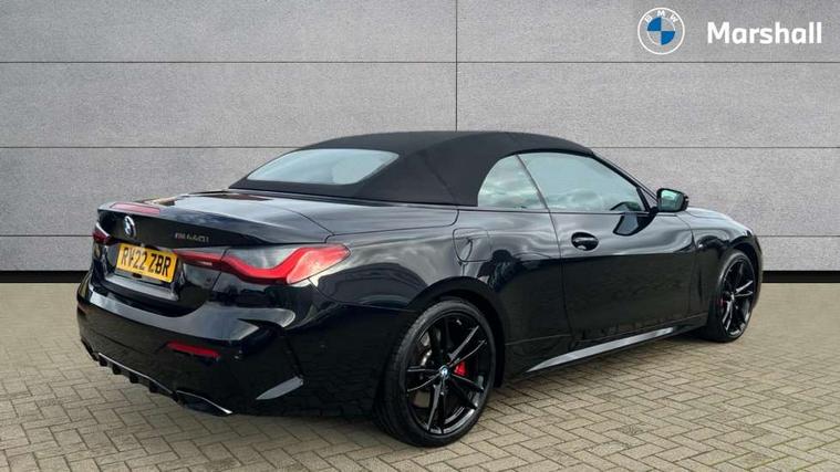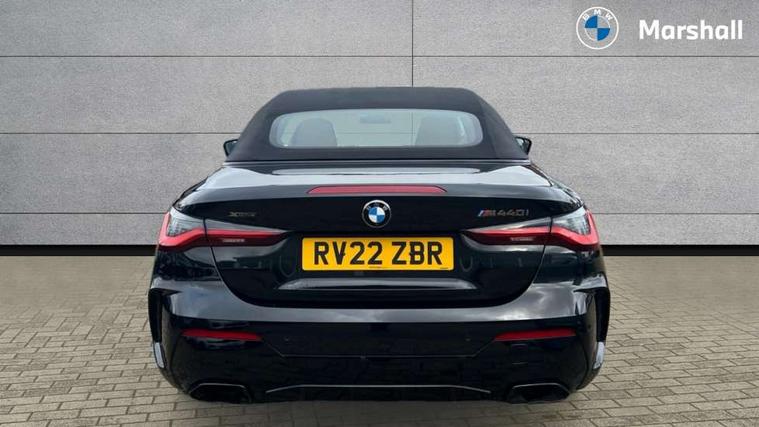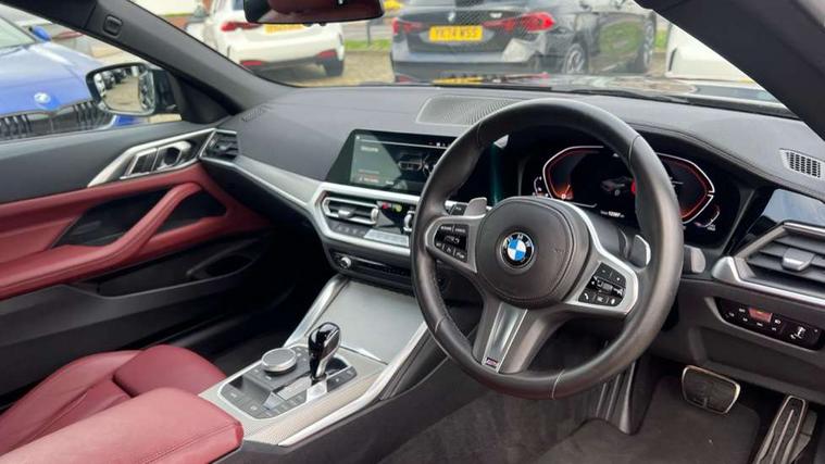 Active guard plus, Attentiveness assist, Auto start-stop, BMW ConnectedDrive online services, BMW iDrive controller on centre console, BMW Live Cockpit Professional Nav with 12.3" instrument display + 10.25" display, Intelligent Voice Assist, BMW OS 7, HDD, 2USB, 4G LTE connect, BMW service history, BMW Teleservices, Brake pad wear indicator in front and rear, Check Control warning system for monitoring of lights and door/luggage compartment open warning, Condition based service, Electric power steering with Servotronic steering optimised at all speed ranges, Gearshift time display in manual mode, Instrument cluster with speedometer with mph readout, tachometer, fuel gauge and oil temperature gauge, Integrated owners handbook, Oil sensor for level and grade, warning by check control system, On board computer - average speed, fuel consumption, outside temp display with acoustic warning, clock/date, service interval, odometer/trip meter, Optimum shift indicator, Variable sport steering, 48V Mild hybrid technology, 8 speed automatic steptronic transmission with gearshift paddles, Adaptive M suspension, Balanced 50/50 weight distribution, Driving experience modes - Comfort, ECO PRO, Sport and Sport+ mode, Low centre of gravity, M Sport differential, Petrol Particulate Filter, Stroke dependent dampers, xDrive system permanent all-wheel drive variable torque distribution, DAB tuner, Electronic service booklet, Acoustic glazing, Automatic headlight beam throw control with load dependent regulating reaction, dynamic compensation of braking dive and acceleration squat, Automatic windscreen wipers and automatic headlight, Automatically dimming electrochromatic rear view mirror, BMW emblem on engine compartment lid and tailgate, Body colour fuel filler flap, Body colour roof fin, Brushed aluminium inserts in the front door sill finishers with BMW designation, Dynamic brake lights, Electric windows - front and rear, with open/close fingertip control, anti trap facility and comfort closing function all round, Exterior mirrors - electrically folding with anti-dazzle, Fading support, Front and rear bumper system, Front apron plastic in body colour, Green tinted heat protection glazing, Illuminated bow type door handles in body colour drivers side with door lock, Interior rear view electrochromatic mirror with automatic anti dazzle function, LED daytime running lights, Licence plate panel integrated into front bumper and tailgate, Lightweight engineering, M designation on front side panels, left and right, One piece front bumper cover including towing eye cover in body colour, Preparation for high beam assistant, Rear boot, Side frame decorative moulding black matt, Third brake light, Twin exhaust tailpipes x2, Two part LED tailights in L-shape with components in smoked glass, brake light, LED turn indicator and rear fog light, Visible VIN plate, Welcome lights in interior and door handle area, Widened track and increased camber values for max transverse dynamics, agility and steering precision, Window recess cover black high gloss, Windscreen wipers with integrated heated washing jets, xDrive designation on left tailgate, 12V power socket in front centre console, 2 2nd row folding seats, 2 front cupholder in centre console with clamping elements and matt black inlay, 2 Rear seat headrests, 2nd row centre armrest with built-in cupholders, 3 spoke M sport leather multifunction steering wheel, 3 zone automatic air conditioning, 4 pieces lashing eyelets in luggage compartment, Ambient lighting with welcome carpet light, Armrest integrated in front and rear door trim + front centre console armrest, Electric seat adjustment with memory, Four grab handles integrated in roof lining, Front and rear door exit lighting (left / right), Front and rear door pockets, Front and rear footwell lights, Front and rear reading lights, Front headrests, Heated driver and front passenger seats, Height adjustable mechanically and infinitely variable steering column, Illuminated armrest storage compartment, Illuminated glove compartment with separate small compartment, Luggage compartment light, Make-up mirror lights, Single front passenger seat, Storage compartment in rear centre console, Sunvisors with vanity mirrors and ticket pocket, Toolkit located in luggage compartment, USB type - C cable charging function in the rear centre console, Velour front floor mats, Connected professional package - 4 Series, M sport exterior styling pack - 4 Series M440i, 2 x 3-point rear seatbelts, Battery safety cut-off, BMW emergency call, Brake energy regeneration, Braking pre-tensioning, Child proof rear door locking, Child seat ISOFIX attachment for the two outer rear seats, Coasting in idle in ECO PRO mode, Cornering brake control (CBC), Crash sensor activating of airbags, Unlocking doors, hazard warning lights, interior light, safety battery terminal, Driver and front passenger side airbags, integrated in the door side seat backrest bolsters for all seat variants, Driver/Front Passenger airbags, Dry braking, Dynamic brake control, Dynamic stability control + (DSC+) - Anti-lock Braking System (ABS) with brake assist and cornering brake control + Automatic Stability Control (ASC), Dynamic Traction Control - DTC, Electric parking brake including automatic hold function and automatic release of the parking brake when driving off, Electronic differential lock control (EDLC), Front and rear ventilated brake disc, Front passenger manual airbag deactivation, Head airbags for all 4 outer seats, Hill start assistant, M Sport seatbelts, Seat belt security check for driver and front passenger, Seat belt with belt stopper, pyrotechnic belt tensioners and belt force limiters, Side impact protection, Tyre pressure monitoring with three level warning strategy, Warning triangle and first aid kit, Alarm system (Thatcham 1) with remote control and electronic engine immobiliser, Central locking switch for all doors, fuel filler cap and luggage compartment, 