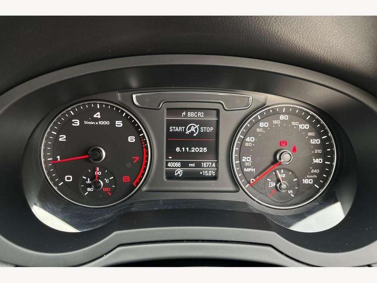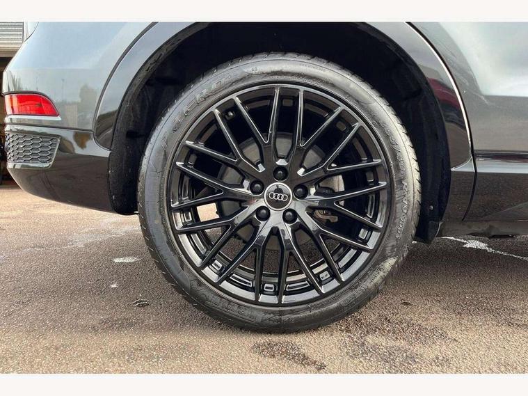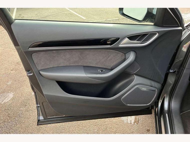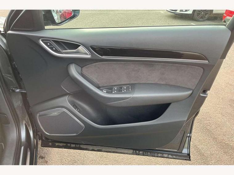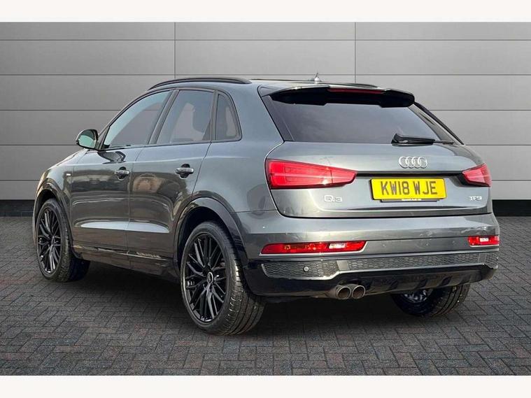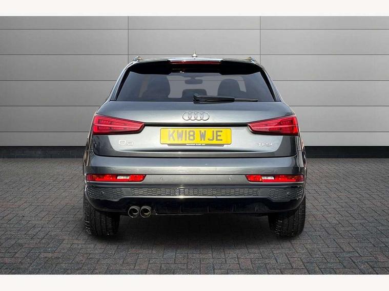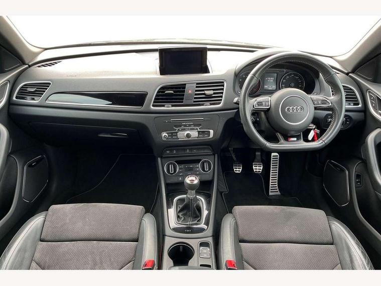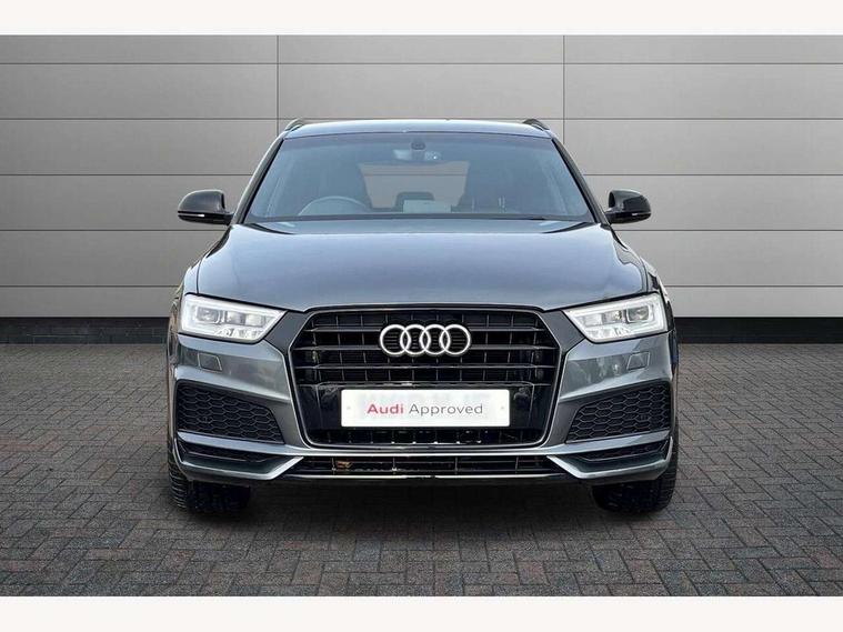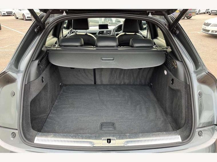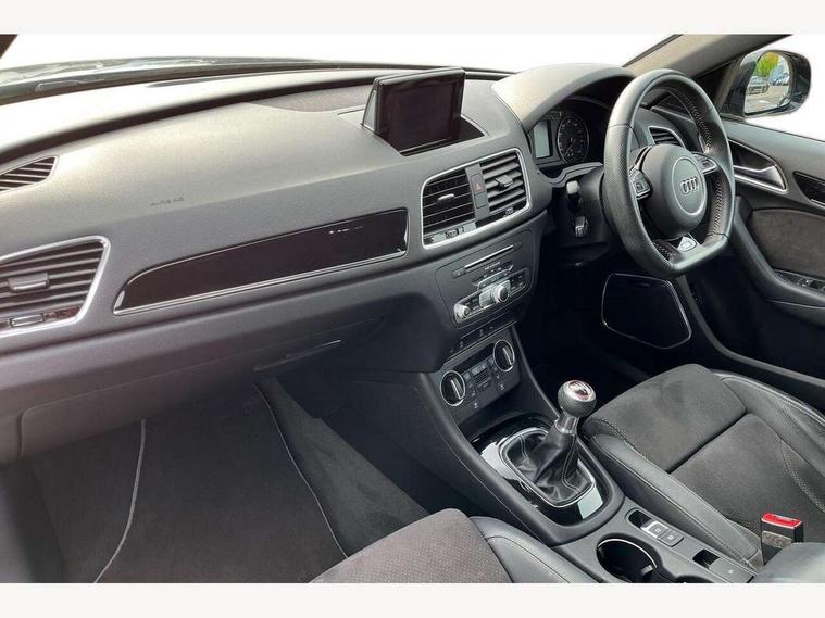 6.5" colour display screen, Audi drive select, Cruise control, Electro-mechanical PAS, Low washer fluid indicator, MMI - Multi Media Interface control system, On board computer, Remote electric boot opening/closing, Service interval indicator, Voice control system, Sports suspension, Audi music interface, BOSE sound system, DAB digital radio module, Acoustic windscreen, Aluminium window surround, Auto dimming rear view mirror, Black exhaust tailpipes, Black high gloss door mirrors, Black roof rails, Coming home function, Door mirror integrated indicators, Front and rear electric windows, Front fog lights, Front lip spoiler, Heated windscreen washer jets, High Gloss Black Contrast Bumpers, High Gloss Black rear spoiler, LED daytime running lights, LED headlights with headlight washers, LED rear lights, Light and rain sensor for auto activation of lights and windscreen wipers, Loading sill protector in stainless steel, Privacy glass, Rear diffuser with platinum insert, Rear wiper, S Line body styling, Sunband for windscreen, 12V socket in rear centre console, 3 spoke flat bottom multi-function perforated leather steering wheel with contrast stitching and aluminium gearshift paddles, Aluminium door sill trims, Aluminium gear knob, Black cloth headlining, Door sill trim strips, Dual zone climate control, Electric front lumbar adjustment, Front and rear headrests, Front and rear velour floor mats, Front centre armrest with storage compartment and angle adjustment, Front sports seats, Height/reach adjust steering wheel, ISOFIX on front passenger and rear outer seats, Jack and tool kit, Retractable luggage cover, Reversible boot floor, Split fold rear seat, Stainless steel pedals, Storage compartment and 12V socket, Under floor storage in luggage area, Audi Exclusive black styling pack - Q3, LED interior light pack - Q3, 3x3 point rear seatbelts, ABS+Electronic Brake force Distribution, Curtain airbags, Driver and passenger airbags, Driver and passenger side airbags, EDL + ASR, Electrically operated child locks on rear doors, Electromechanical parking brake, ESP, First aid kit, Front passenger airbag deactivation, Head airbags, Seatbelt warning light, Tyre pressure monitoring system, Warning triangle, Locking wheel bolts, Remote central locking, Thatcham category 1 alarm + immobiliser, Piano black finish inlay,