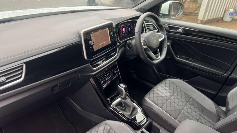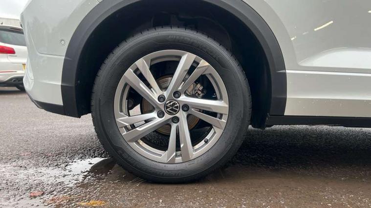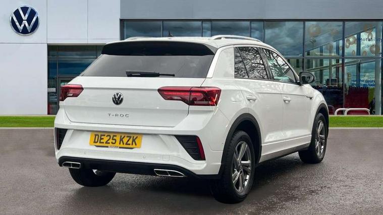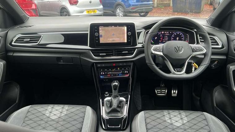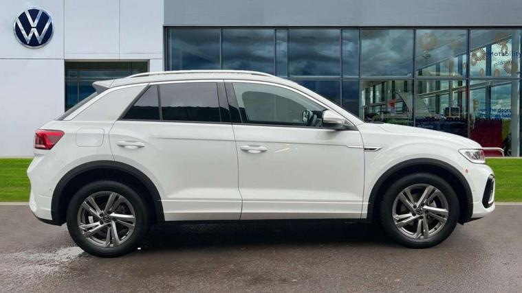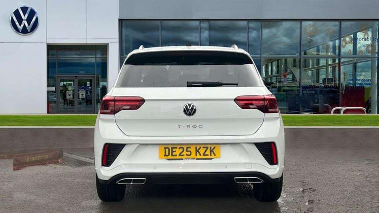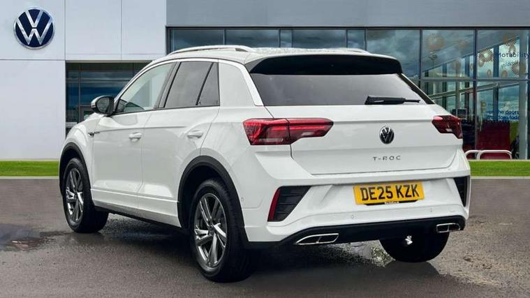 10.25" Digital cockpit pro, Advanced driver attention and drowsiness monitor, Emergency call service, Lane keeping system Lane Assist, Mobile phone interface, Modified key software - reduce switch off time for key status change to Long no motion, Online services, Park assist including front and rear parking sensors, Service interval indicator, Tailgate/trunk lid release from outside, Think blue trainer driver tips and journey analysis, Warning sound and light for front seatbelts unfastened, Wireless app connect, Battery regeneration during braking, Start/stop function with battery regeneration, DAB Digital radio, Diversity antenna for FM reception, Front and rear 6 speakers, Music playback - MP3, WMA and AAC files, Premium USB cable in choice of either Apple or Android smartphone compatibility, SD card slot, Simultaneous pairing of 2 compatible mobile devices, Title and cover art display, We Connect and We Connect Plus functionality, Auto dimming interior rear view mirror, Automatic hazard lights activation under emergency braking, Automatic headlight control with LED separate daytime running lights with coming/leaving home function, Body coloured exterior mirror housings and door handles, Electrically adjustable and heated door mirrors, Extended roof spoiler, Exterior mirrors aspherical on driver side, convex on front passenger side, External USB type C socket and charging sockets, Front windscreen wiper with intermittent wipe and 4 position delay, Heated rear window, LED 3rd brake light, LED rear combination lamps, LED rear number plate lights, Power windows with comfort operation and circuit breaker, Privacy glass for rear side windows and rear window, R-Line design body coloured bumpers, Rain sensor, Rear exhaust tailpipe, Rear fog light on one side and reversing lights on both sides, Rear side wing doors, Rear wash/wipe with intermittent wipe setting, Remote electrically foldable door mirrors, puddle lights and reverse activated passenger's door mirror, 12V power socket in centre console, 3 rear head restraints, 3 seat bench in 2nd row, 4 load lashing points in luggage compartment, Air care climatronic air conditoning system with active combination filter and 2-zone temperature control, Black roof lining, Chrome plated decorative trims, Chrome plated radiator grille inserts, air vent surrounds and light switch surrounds, Door and side trim panel with leatherette insert, Front + rear carpet mats, Front centre armrest, Front cupholders x 2, Front footwell illumination, Front reading light, Front scuff plates with R Line logo, Front seat back storage pockets, Glove compartment door with light, Instrument lighting, white adjustable panel illumination, Interior ambient lighting and surround lighting, Interior light delay, Isofix child seat preparation, Leather gearshift handle, Load-through provision with cup holder when folded down ('Unsplit rear seat bench, split folding backrest, with centre armrest), Luggage compartment lighting, Single front passenger seat, Stainless steel pedals, Storage compartment in left and right luggage area, Storage compartment in rear doors, Storage compartments in driver and front passenger doors, Sunvisors with illuminated vanity mirrors, Variable boot floor, height adjustable and removable, Driver assistance pack without proactive passenger protection - T-Roc, 3 point height adj front seatbelts + pretensioners, 3 point seatbelts in outer rear with ECE label, ABS, Child locks on rear doors, City emergency braking and pedestrian monitoring, Driver and front passenger airbag with front passenger airbag deactivation, Driver and front passenger safety-optimised head restraints, Drivers seatbelt reminder, Electronic parking brake, Electronic Stability Control (ESC) inc EDL (Electronic Differential Lock) and ASR (Traction Control), Front and rear passengers curtain airbag system including front side airbags, Hill start assist, Predictive pedestrian protection, Rear disc brakes, Two tone horn, Tyre pressure loss indicator, Volkswagen roadside assistance, Piano black decorative inserts in dashboard and front door trim panels, Trims for alloy wheels,