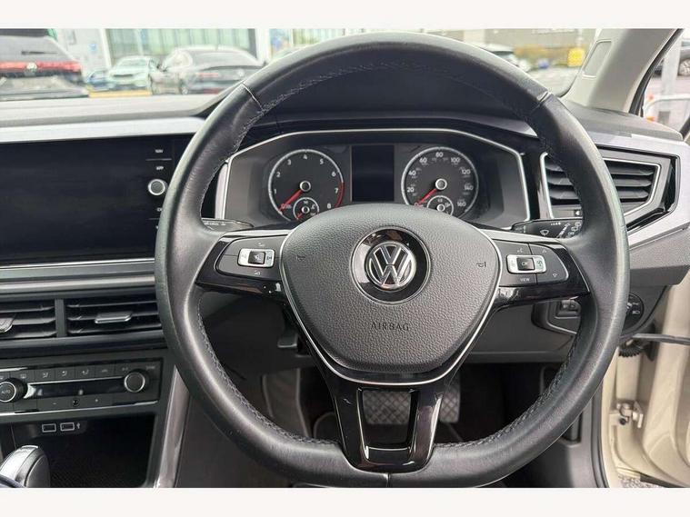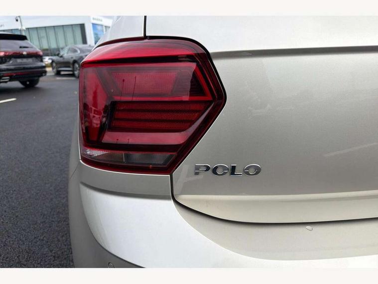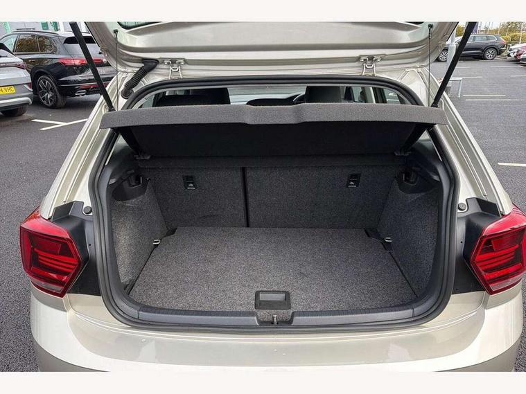 App-Connect, Bluetooth Telephone preparation, Discover navigation + European map data, Driver alert system, Multifunction colour display, PAS - speed related, Service interval indicator, Start/stop system, Trip computer, Warning buzzer and light for front seatbelts unfastened, Battery regeneration during braking, 6 speakers, Composition media system with radio, glovebox mounted CD, colour touch screen, SD card, aux-in, USB, multimedia interface, DAB Digital radio, Automatic dimming interior rear view mirror with rain sensor, Automatic headlamp activation, Black grille with chrome surround, Black radiator grille with chrome insert, Body colour bumpers, Body colour door handles, Body colour rear spoiler, Body coloured side sills, Chrome insert to lower bumper, Chrome trimmed front air intake surrounds, Electric front windows, Electric operated/heated door mirrors, Front fog lights including static cornering, Front wash/wipe with interval delay, Fully galvanised body, Heated rear window with auto timer, High level 3rd brake light, LED daytime running lights, LED rear number plate lights, Manual coming/automatic leaving home lighting function, Rear electric windows, Rear windscreen washer and wiper with interval delay, 12V power socket in centre console, 2 bag hooks in luggage compartment, 2 cupholders, 3 rear head restraints, 3 spoke steering wheel, 60/40 split folding rear seat, Ambient lighting, Chrome-plated electric window button surround, Climate control - 2 zone electronic air conditioning with automatic air recirculation and allergy filter, Driver/front passenger seat height adjustment + underseat drawers, Driver/passenger sunvisors with illuminated vanity mirrors, Dust/pollen filter, Front seat backrest storage nets, Front/rear reading lights, Glovebox, Handbrake grip button in chrome effect, Height/reach adjustable steering column, Instrument lighting, white adjustable panel illumination, Interior light with delay, Isofix Preparation 2 Rear child seats, Jack and tool kit, LED footwell lights, Luggage compartment cover, removable, Luggage compartment lighting, Matt chrome gear lever gaiter surround, Multifunction leather steering wheel with leather gear knob/handbrake grip, Storage compartment in front doors, Storage compartment in rear doors, Storage compartment under front seats, Variable boot floor, Variable Luggage compartment, Light and sight pack - Polo, 3 point height adj front seatbelts + pretensioners, 3x3 point rear seatbelts, ABS, Automatic post collision braking, Driver/front passenger airbag, Driver/Passenger whiplash optimised head restraints, ESP with EDL + ASR, Front and rear passengers curtain airbag system including front side airbags, Front passenger airbag deactivation, Front/rear disc brakes, HBA (Hydraulic Brake Assist), Hill hold control, Two tone horn, Tyre pressure monitoring system, Alarm with remote central locking and interior protection, Electronic engine immobiliser, Air vents in Matt chrome, Chrome plated electric mirror adjustment light switch surround, Matt chrome interior trim, Space saver spare wheel,