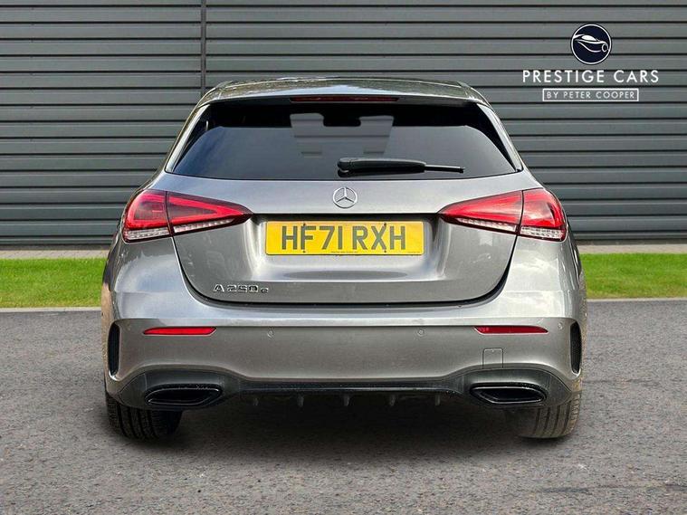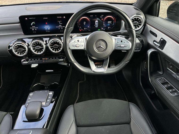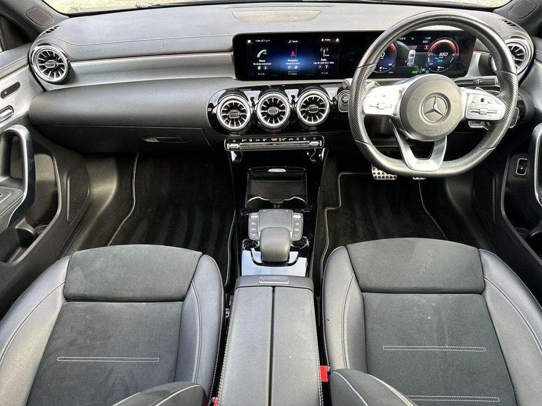 10.25" Digital instrument cluster display screen, 10.25" media display, 180 degree rear view camera with parking guidelines, Acoustic ambient protection, Active parking assist with visual and audible warning of detected obstacles, Attention assist, Brake pad wear indicator warning light, Car wash mode, Direct steering, Dual bluetooth interfaces, DYNAMIC SELECT with a choice of driving modes (ECO, Comfort, Sport and Individual), ECO start/stop function, Fluid level warning indicator for fuel, oil, coolant and washer fluid, Hard-disk navigation, Hey Mercedes Voice activation, Lamp failure indicator, Lane keeping system, Mercedes me connect including emergency call system, accident recovery, breakdown and maintenance management, Mercedes me remote services, Outside temperature gauge, Owners manual in English, Pre-installation for private car sharing, Preinstallation for Mercedes Benz link, Remote and charging services plus, Service indicator (ASSYST), Smartphone integration with Apple CarPlay and Android auto, Traffic sign assist, Trip computer, Ultrasonic sensors positioned in the front and rear bumpers, 7.4 kW monophase on board charger, Comfort suspension, Mode 2 charging cable with 3pin and 5m upto 2.3kW, Mode 3 charging cable 11 kW, Rear axle multi-link, 10 speakers, 2 USB ports (type C) in rear stowage compartment and one in front of center console, DAB Digital radio, MBUX multimedia system with DAB digital radio and touchpad including satellite navigation, Mercedes-Benz sound system - 100W, 4 Electric Front and Rear windows, Adaptive brake lights, AMG bodystyling - Front apron with splitter in chrome, rear apron with chrome trim and chrome visible trim elements in tailpipe, Black weather strip, Body colour bumpers, Body colour door handles, Body colour side skirt, Body coloured door mirrors, Edition badging on the front wings, Electric adjustable and heated door mirrors with integrated LED side indicators, Exclusive diamond radiator grille, Exhaust system - Twin visible tailpipes in polished stainless steel, Headlamp assist automatic headlamp activation, Heated glass rear windscreen + timer control, High gloss black beltline, LED High level third brake light, LED tail lamp, Multibeam LED with adaptive highbeam assist plus, Panoramic sliding sunroof, Privacy glass, Radio aerial, Rain sensing windscreen wipers with two sensitivity settings, Rear fog lights, Rear wiper, Window line trim strip in high gloss black, 3 Spoke flat bottom leather multi function steering wheel with perforated leather in grip area, 40:20:40 split folding rear seats, Artico man-made leather/Microfibre Dinamica upholstery with contrast stitching in light grey, Auto Mercedes-Benz child seat recognition sensor, Black air vents with surround in silver chrome, Black roof lining, Brushed stainless steel sports pedals with rubber studs, Charging socket, Controller on centre console with chrome surround, Floor mats with black top stitching and embroidered edition logo and piping in light grey, Front centre armrest with storage compartment, Front seat backs luggage nets, Front seat cushion length adjustment, Galvanished gear shift paddles on steering wheel, Heated front seats, Height/reach adjustable steering column, Illuminated front door sills with changeable cover, Interior lighting - 64 colour Ambient lighting, Interior mirror with reading lamps in black and frameless, Pre-entry climate control, Rear armrest with 2 cupholders, Rear head restraints, Seat occupancy sensor for front passenger seat, Sports seats with integrated headrests, Stowage compartment in centre console with retractable cover, Sunvisors with illuminated vanity mirrors, Touchpad on center console, Twin front cupholders, Two zone thermotronic luxury automatic climate control, Light and sight pack - A Class, Mirror package - A Class, Night pack - A Class Saloon/Hatchback, Seat comfort pack - A Class, 3 rear 3 point seatbelts, ABS with Brake Assist, Active bonnet, Adaptive brake assist with hold function and hill start assist, Black seatbelts, Childproof locks manually operated for rear doors and electrically operated for rear power windows, Crash responsive emergency lighting, Driver and passenger head and side airbags, Drivers knee airbag, Dual stage driver/passenger airbags, Electronic parking brake, ESP curve dynamic assist, ESP with ASR, Front and rear seatbelt reminder, Front brake callipers with Mercedes Benz lettering, ISOFIX and top tether child seat fixing points in two outer rear seats, Perforated front brake discs, Radar based regeneration, Tyre pressure monitoring system, Warning triangle and first aid kit, Window airbags, Alarm system/interior protection/immobiliser, Keyless entry lock/unlock, Keyless Go, Remote central locking and crash sensor with emergency opening function, Urban guard vehicle protection system with immobiliser and interior protection, Matrix look light longitudinal grain aluminium trim element, 18" AMG 5 twin spoke light alloy wheels aerodynamically optimised painted in black with highsheen finish, Summer tyres, Tirefit sealant kit,