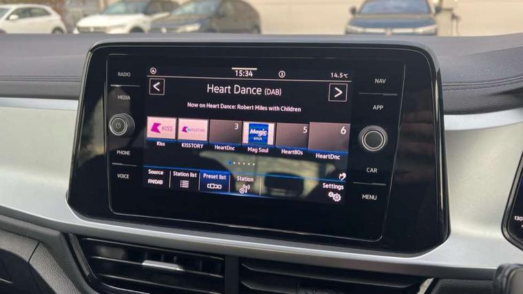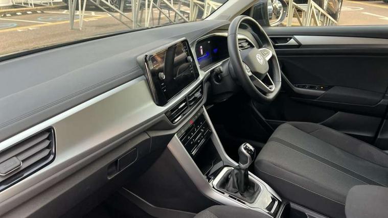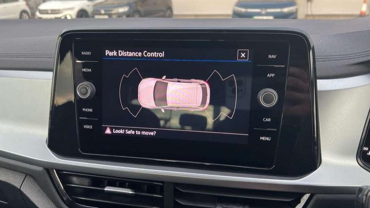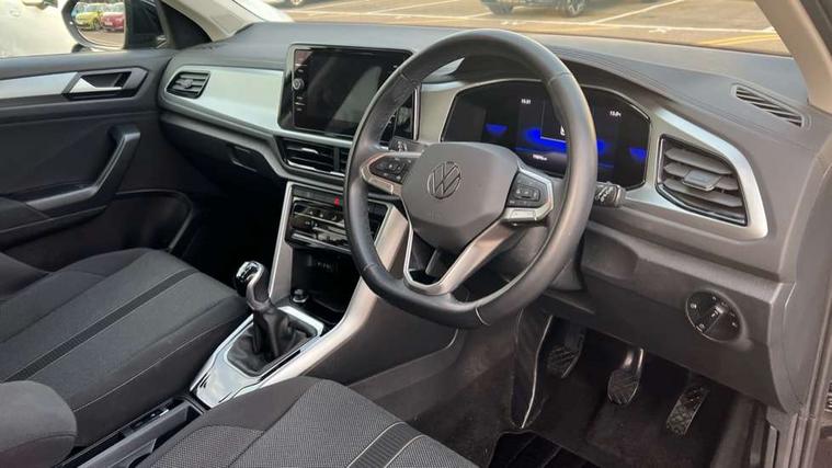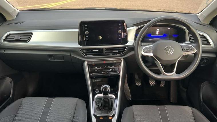 Bluetooth mobile phone interface, Driver alert system with fatigue detection, Driver tips and journey analysis, Emergency call service, Lane keeping system Lane Assist, Modified key software - reduce switch off time for key status change to Long no motion, Online services, Park assist including front and rear parking sensors, Power assisted speed sensitive steering, Service interval indicator, Tailgate/trunk lid release from outside, Think blue trainer driver tips and journey analysis, Warning sound and light for front seatbelts unfastened, Wireless app connect, Battery regeneration during braking, Front shock absorption, Rear shock absorption chassis with increased ride height, Start/stop function with battery regeneration, DAB Digital radio, Diversity antenna for FM reception, Front and rear 6 speakers, Music playback - MP3, WMA and AAC files, Premium USB cable in choice of either Apple or Android smartphone compatibility, SD card slot, Simultaneous pairing of 2 compatible mobile devices, Title and cover art display, We Connect and We Connect Plus functionality, 3rd brake light, Auto dimming interior rear view mirror, Automatic hazard lights activation under emergency braking, Automatic headlight control with LED separate daytime running lights with coming/leaving home function, Black roof rails, Body coloured bumpers and radiator grille with chrome trim and front fog lamps with chrome bezel, Body coloured exterior mirror housings and door handles, Extended roof spoiler, Exterior mirrors aspherical on driver side, convex on front passenger side, External USB type C socket and charging sockets, Front windscreen wiper with intermittent wipe and 4 position delay, Heated rear window, LED Headlights, LED rear combination lamps, LED rear number plate lights, LED tail lamp rear comination lamps, Power windows with comfort operation and circuit breaker, Rain sensor, Rear exhaust tailpipe, Rear fog light on one side and reversing lights on both sides, Rear side wing doors, Rear wash/wipe with intermittent wipe setting, Remote electrically foldable door mirrors, puddle lights and reverse activated passenger's door mirror, 12V power socket in centre console, 3 rear head restraints, 3 seat bench in 2nd row, 4 load lashing points in luggage compartment, Air care climatronic air conditoning system with active combination filter and 2-zone temperature control, Ambient lighting with mirror logo projection, Cloth upholstery, Door and side trim panel in cloth, Drawer under drivers seat, Driver/front passenger seat height adjustment, Front centre armrest, Front comfort sports seats, Front cupholders x 2, Front reading light, Instrument lighting, white adjustable panel illumination, Interior light delay, Isofix child seat preparation, Leather gearshift handle, Load-through provision with cup holder when folded down ('Unsplit rear seat bench, split folding backrest, with centre armrest), Luggage compartment lighting, Lumbar support for driver's and front passengers seat, Non-folding front passenger seat backrest, Single front passenger seat, Storage compartment in left and right luggage area, Storage compartment in rear doors, Storage compartments in driver and front passenger doors, Sunvisors with illuminated vanity mirrors, Variable boot floor, height adjustable and removable, Driver assistance pack without proactive passenger protection - T-Roc, 3 point height adj front seatbelts + pretensioners, 3 point seatbelts in outer rear with ECE label, ABS, Child locks on rear doors, Driver and front passenger airbag with front passenger airbag deactivation, Driver and front passenger safety-optimised head restraints, Drivers seatbelt reminder, Electronic parking brake, Electronic Stability Control (ESC) inc EDL (Electronic Differential Lock) and ASR (Traction Control), Front and rear passengers curtain airbag system including front side airbags, Front assist with city emergency braking and pedestrian monitoring, Front disc brakes, Front seat side impact airbags, Hill start assist, Predictive pedestrian protection, Rear disc brakes, Single tone horn, Tyre pressure loss indicator, Volkswagen roadside assistance, Alarm with interior protection, Anti-theft alarm system with interior monitoring, backup horn, and towing protection, Remote central locking with SAFELOCK, radio remote control with 2 remote control folding keys, Pewter matt decorative inserts for intrument panel, centre console and door panels at the front, Trims for alloy wheels,