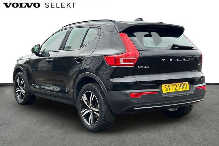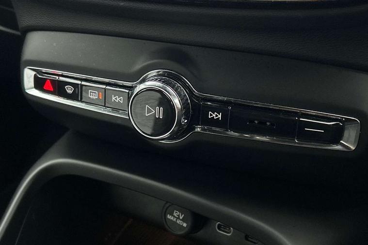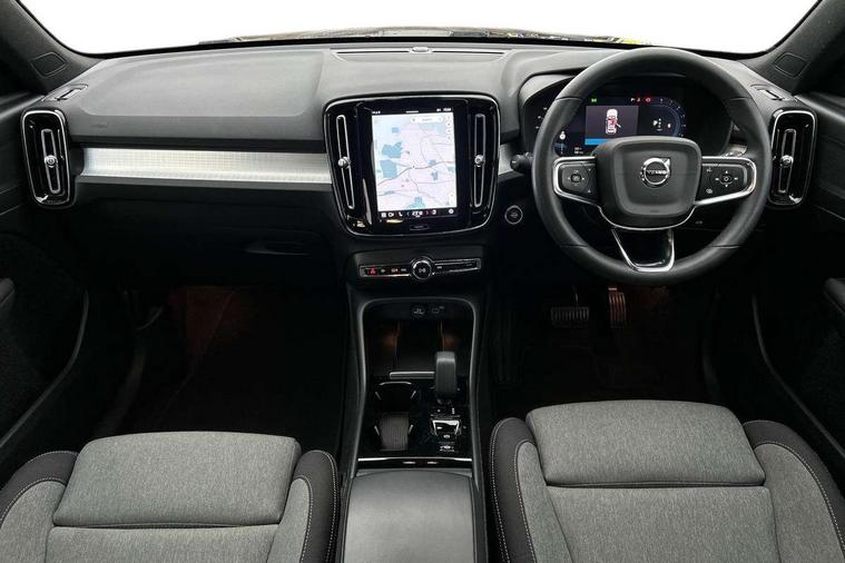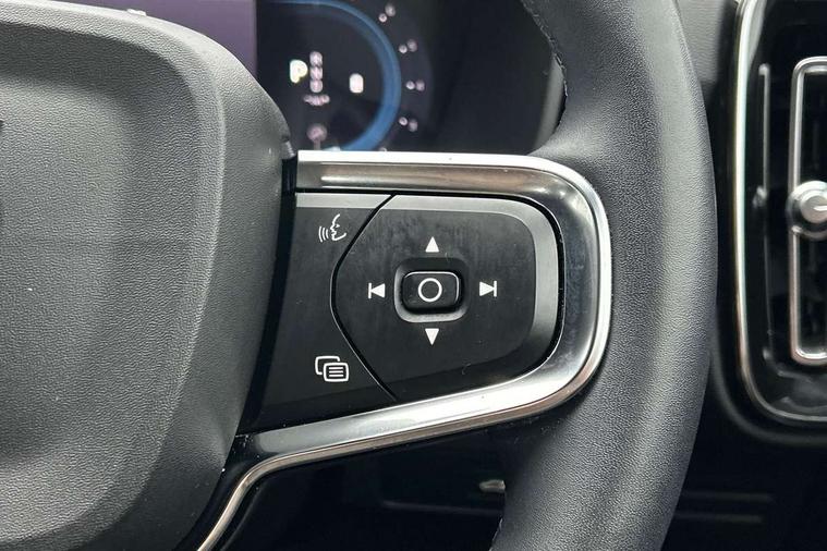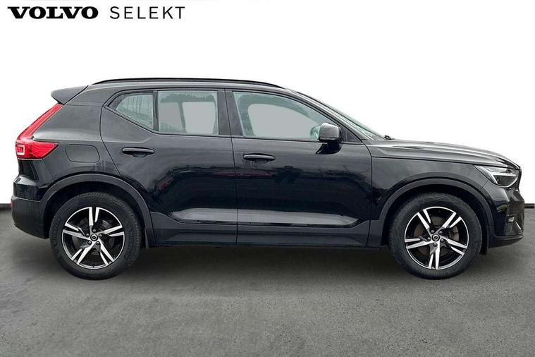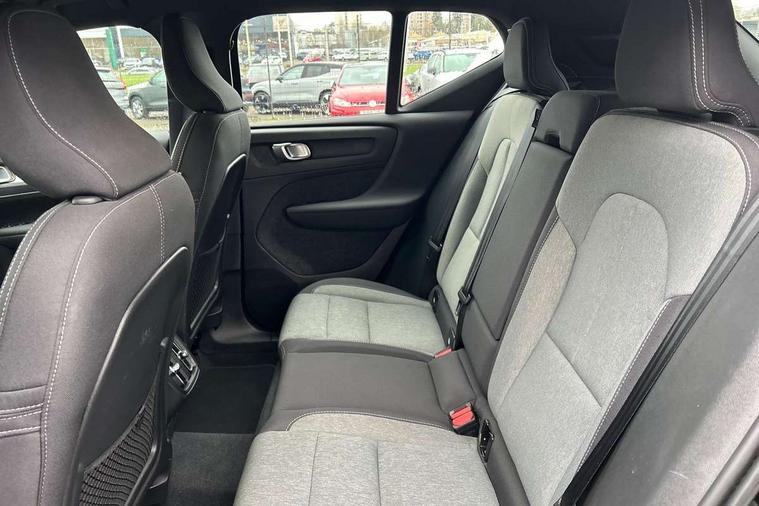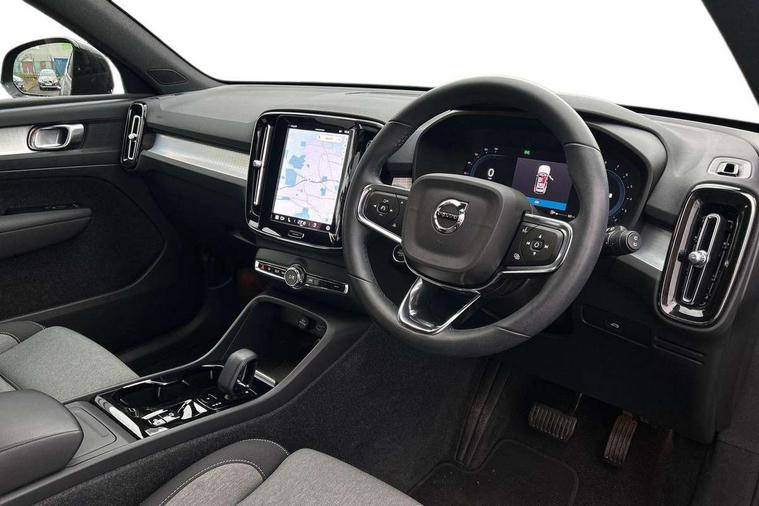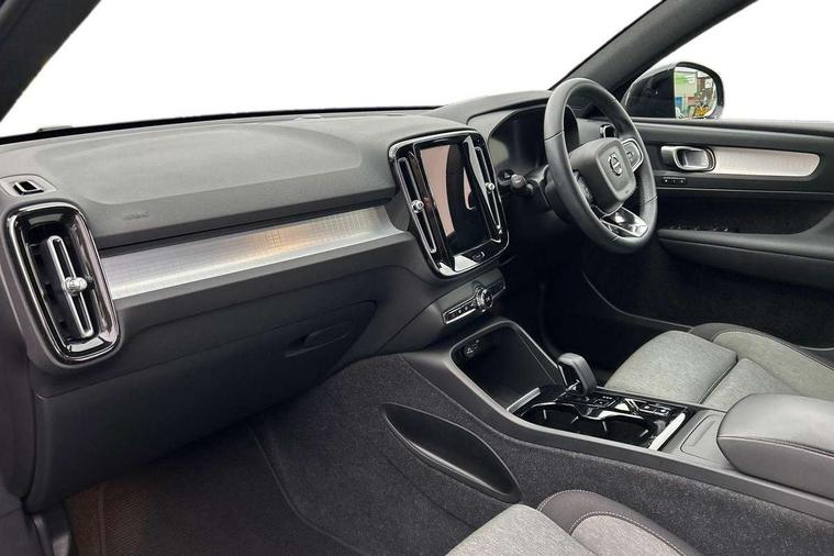 12.3" Progressive Driver Display, 9" centre console portrait touch screen, Adjustable steering wheel force, Bluetooth hands free telephone kit, Cruise control, Driver awareness - blind spot information system with steer assist, cross traffic alert with autobrake, rear collision warning and migitation, E-call, Front park assist, Google automatic services - Nav with google maps, apple carplay/android auto, voice recognition with google assistant, Hands free power tailgate, Lane keep assist with driver alert control, Oncoming Lane Mitigation, Rear park assist, Rear park assist camera, Speed limiter, Speed sensitive steering, Wireless/Inductive Mobile Phone Charging, Dynamic chassis, DAB Digital radio, High performance sound, 8 speakers/250W, front USB and 2 rear type C USB, Steering wheel mounted remote controls, Adaptive brake lights with high level LED brake lights, Auto dimming feature for exterior door mirrors, Auto dimming interior mirror, Automatic headlamp levelling, Automatic LED Headlights + Active high beam incorporating daytime running lights, Front aluminium tread plates, Front and rear electric windows, High gloss black front and rear skid plate, High gloss black mesh front grille with high gloss black surround, High gloss black window trim, Home safe and approach lighting, Integrated roof rails in high gloss black, LED front fog lights, Puddle lights, Rain sensor with automatic windscreen wiper activation, Rear side wing doors, Rear wiper, Roof antenna, Roof spoiler, Visible VIN plate, 12V socket in front tunnel console and luggage compartment, 2-Zone electronic climate control with CleanZone air quality system and pollen filter, 3 seat bench in 2nd row, 3 Spoke tailored steering wheel with chrome trim, 60/40 versatile split folding rear seat, A-pillar parking ticket holder, Ambient front door and instrumental panel lighting, Centre console cupholders and storage, Flexible load floor and grocery bag holder, Floor mats, Front door pocket and front cupholder illumination, Front footwell illumination, Front headrests, Front reading light and theatre lighting, Front seat cushion extensions, Front tunnel pocket, Glovebox bag hook, Heated front seats, Height adjustable passenger seat, Height/reach adjustable steering column, High gloss centre tunnel deco, Illuminated glovebox, Illuminated luggage compartment, Illuminated tailgate, Illuminated vanity mirrors, Integrated waste bin, Isofix attachments on outer rear seats, Load protection net, Multi directional lumbar support, Power driver seat with memory + exterior mirrors memory, Rear armrest / integral cup holders / storage tray, Rear headrests, Rear reading and courtesy lights, Single front passenger seat, Underfloor cargo storage, Climate pack without heated front seats - XC40, 3x3 point rear seatbelts, City safety with steering support with Pedestrian + cyclist + front collision warning with full auto brake and rear auto brake, Drivers knee airbag, Dual stage driver/passenger airbags, Electronic parking brake with auto hold, First aid kit, Front and outer rear seatbelt reminder and pretensioners, Front seats SIPS airbags, Hill descent control, Hill start assist, Inflatable curtain, Passenger airbag cut-off device, Power child locks on rear doors, Road sign information display, Run off Road Mitigation, Run off Road Protection, SIPS (Side Impact Protection System), Slippery road and hazard light alert, Stability and Traction Control with Spin control, Engine Drag Control and Corner Traction Control, Tyre pressure monitoring system, Vehicle deceleration control with Anti-lock Brake System, Electronic Brake Distribution and Emergency Brake Assist, Warning triangle, WHIPS whiplash protection system - front, Anti-theft alarm including immobiliser/volume sensor + level sensor, Key integrated remote control central locking + fuel flap with deadlocking system and auto open/close power windows, Keyless drive includes keyless entry and keyless start, Locking wheel nuts,