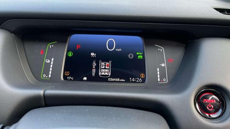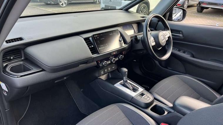 Adaptive cruise control, Adjustable speed limiter, Agile handling assist, Bluetooth hands free telephone connection, eCall emergency call system, Econ mode, Electric power steering wheel with variable gear ratio steering, Emergency stop signalling system, Forward collision warning, Front and rear parking sensors, Honda CONNECT with GARMIN Navigation + 9" touchscreen, AM/FM/DAB/Apple Carplay and android auto, Idle stop, Intelligent speed limiter, Lane departure warning system, Lane keep assist system, Low speed following, Multi-information display, Rear view camera, Road departure mitigation, Tailgate, Traffic jam assist, Traffic sign recognition, Wireless apple carplay, Vehicle stability assist, 'Shark fin' mobile antenna, 180w Power audio system with 4 speakers, 2 USB-C connectors rear, 2x USB Front socket (1 data & 1 charge), Remote audio controls on steering wheel, Aspheric door mirrors, Auto wipers, Automatic headlights with on/off timer, Coming/leaving home function, Black door mirrors, Black headlight extension, Body colour door handles, Body coloured front grille, eHEV emblem, Electric adjustable door mirrors, Electrically folding door mirrors, Exclusive styling includes front and rear bumper, front fog garnish, silver fender, side sill garnish, Front and rear electric windows, Heated door mirrors, High beam assist, LED 3rd brake light, LED daytime running lights, LED front fog lights, LED Headlights, LED rear lights, Manual headlight levelling, Privacy glass, Rear side wing doors, Rear wiper, Roof rails, Single exhaust tailpipe, 3 seat bench in 2nd row, 60/40 split rear bench seat, Cargo net hooks, Climate control air conditioning, Driver and front passenger seat armrests, Driver and passenger front seat pockets, Driver's seat height adjustment, Fabric/Water repellent upholstery, Front accessory power socket, Front head restraints, Front map lights, Front/rear courtesy lights, Heated front seats, Heated steering wheel, Isofix points, Leather gearshift knob, Leather steering wheel, Magic seat flexibility system, Plating interior door handles, Rear head restraints, Single front passenger seat, Sunvisors with vanity mirrors, Tilt/telescopic adjustable steering wheel, Tonneau cover, Trunk light, Vanity mirror illumination, 3x3 point rear seatbelts, Anti-lock braking system (ABS), Brake assist function, Brake hold function, Child locks on rear doors, Collision mitigation braking system, Deflation warning system, Driver knee airbag, Driver SRS airbag (single stage inflation), Driver/Front Passenger airbags, Electronic parking brake with auto hold, Front and rear seat belt with emergency locking retractor, Front and rear side curtain airbag, Front centre airbag, Front side airbags, Hill start assist, Passenger SRS airbag cut-off device, Rear side airbags, Whiplash lessening front headrests, Honda super locks, Immobiliser, Mirrors and windows key fob operation, Remote central locking with 2 remote folding keys, Security alarm, Smart entry + Smart start, Soft pad leather interior panels, 16" 3D chrome H centre cap alloy wheels, Tyre repair kit,