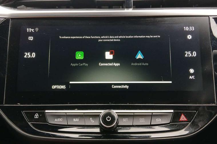 7" TFT instrument cluster, Adaptive cruise control with speed limiter, Apple car play/Android Auto, Auto tele unit 3S vehicle communication system, Bluetooth mobile phone portal, Central facia display with digital clock, outside air temperature and audio information, Driver drowsiness alert system, Engine oil life indicator, Front and rear parking sensors, Front camera system, Infotainment remote controls right side of steering wheel, telephone buttons on left side, Instrumentation - Speedometer, rev counter, low fuel gauge warning light + water temperature gauge warning light, shift up/down indicate light, Lane departure warning with lane assist, Lane positioning assist, Lights on audible warning, Multi function trip computer - Trip odometer, vehicle range, average speed and fuel economy, instantaneous fuel economy and driving time, Multimedia Navi pro 10" colour touchscreen, Sat nav, European coverage, 2D/3D street level mapping, points-of-interest search and map updates via USB, Panoramic rear view camera, RDS with traffic programme, Service indicator, Speed sensitive power steering, Speed sign recognition, Start/stop system, Traffic sign recognition with intelligent speed adaptation, Vauxhall connect box, Wireless charger, Electronic returnless fuel system, Petrol Particulate Filter, Under body shield for aero, AM/FM stereo radio, Bluetooth A2DP audio streaming, DAB Digital radio, Rear USB port, Six speakers, Steering wheel audio, phone and cruise controls, USB with iPod control, Automatic headlamp levelling, Automatic headlight control system, Body colour door handles, Body colour door mirrors, Body colour front and rear bumpers, Bonnet/headlight/wiper structure, Centre rear brake lights, Chrome effect lower side window mouldings, Chrome logo bar, Dark tinted rear side windows + tailgate window, Electrically adjustable and heated door mirrors, Electrically folding door mirrors, Electrically operated front and rear windows, Electrochromic automatic anti-dazzle rear view mirror, Glazed tailgate and heated rear window with wash/wipe facility, Hazard warning lights, Headlamps for left side traffic, High beam assist, High gloss black finish B pillar, Integrated rear roof spoiler level 3 sport, IntelliLux Matrix LED Headlights and taillights, LED daytime running lights, LED front fog lamps, Rain sensitive windscreen wipers, Rear fog lamp, Rear reversing lights, Roof antenna short rod, Solar heat absorbing windscreen and windows, Sports tailgate spoiler, Upper and lower bumper design, Windscreen and side window demist vents, 12V power sockets, 2 layer paint IP insert signature wings colour galvano innovation, 2 way adjustment front driver and co-driver passive headrest, 3 spoke flat bottom leather steering wheel with satin chrome effect bezel, 4 speed fan with illuminated controls, 6 way manual co-driver fore/aft, up/down with reclining seatback, 6 way power driver side seat with massage and lumbar support, 60/40 split folding rear seat, Alcantara leather upholstery, Alloy sports pedals, Black headliner, Cabin particulate filter - removes dust, airborne particles and pollen, Driver/passenger sunvisors with vanity mirrors + covers, Electronic climate control (ECC), Four adjustable facia vents, Front centre armrest with storage, Front cupholder, Front map reading lights, Front seatback storage pockets, Heated front seats, Height adjustable head restraints, Illuminated glovebox with lid, Illuminated load compartment trunk, Interior courtesy light, Internal chrome door handles, Jet black door panels on door trim, Jet black side bolsters and surrounds, LED ambient lighting, Legroom rear heater, Luggage compartment lighting, Polyurethane gear knob/lever, Rake and telescope adjustable steering column, Right hand drive (RHD), Single dome lamp with dual front reading lamps, Two litre open door pockets, 3 rear 3 point seatbelts, Anti-lock braking system (ABS), Auto city emergency braking, Cornering brake control, Deactivation switch for front passenger's airbag, Drag torque control, EBD - Electronic brakeforce distribution, Electric handbrake, Electrical child lock system in rear door latch, Electronic Stability Programme (ESP), Emergency brake assist, Forward collision alert, Front seatbelt unfastened audible warning and warning light, Hill hold and start system, Inertia reel lap and diagonal seatbelts for all seats, ISOFIX child seat mountings incorporating top tether anchor points located on second row rear seats, Seatbelt pretensioners, Single tone horn, Six airbags - Driver's dual stage airbag/front passenger's dual stage airbag/front seat side impact airbags/full size curtain airbags, Straight line stability control, Traction control, Tyre deflation detection system, Tyre pressure monitoring system, 2 keys one folding with integral remote, Engine deadlock and immobiliser, Keyless entry and start, Locking wheel nuts, Remote control security alarm system, Remote locking fuel filler flap, Steering column lock, Jet black facia with galvano chrome inserts, 17" diamond cut gloss black 5-twinspoke alloy wheels, Tyre repair kit,