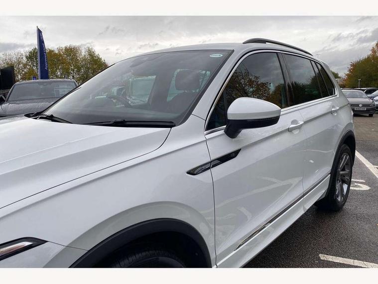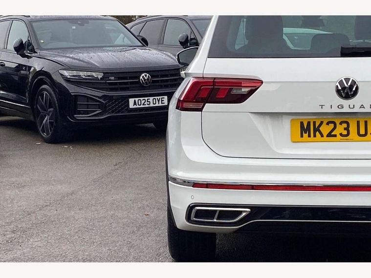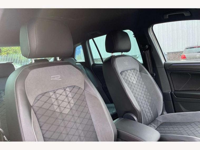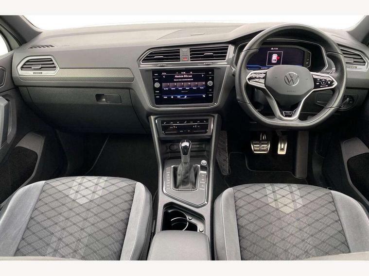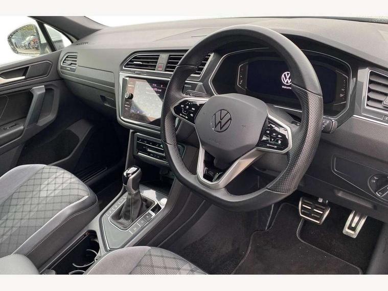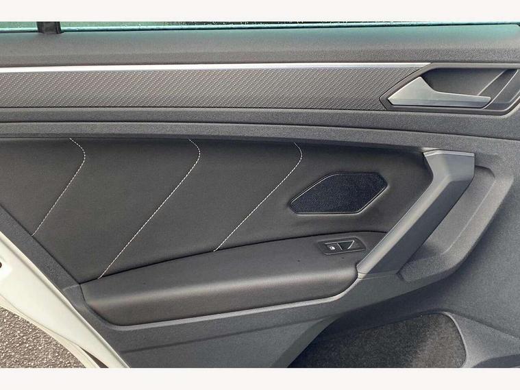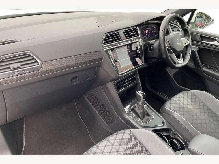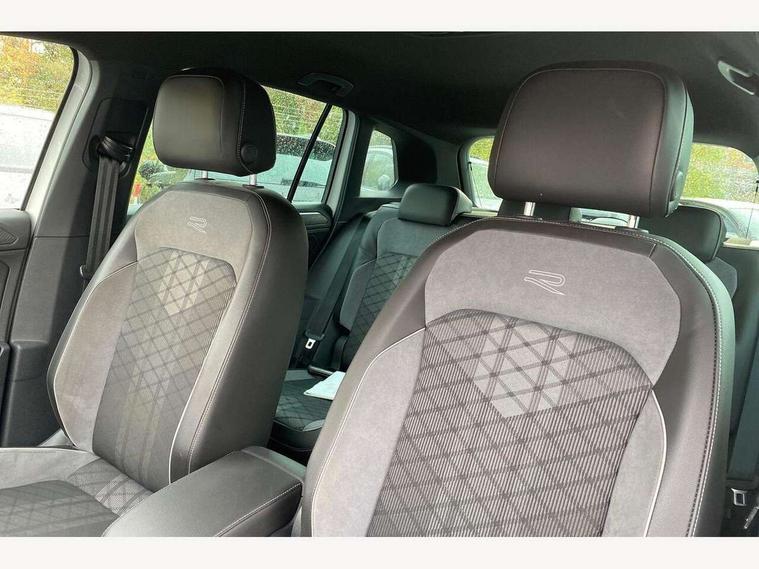 Adaptive cruise control ACC stop and go including speed limiter, App-Connect incl. App-Connect Wireless for Apple CarPlay and Android Auto, Bluetooth phone integration system, Comfort drive travel assist, Digital cockpit pro, Driver alert system, Driver profile selection, Dynamic road sign display, eCall emergency call system, Electromechanical speed sensitive power steering, Emergency assist, Front and rear parking distance sensors, Instrument cluster mph speedometer Great Britain, Lane keeping system Lane Assist, Lights on warning, Multifunction front facing camera, Outside temperature display, Premium multifunction display with multi colour display, Preparation for subsequent activation Navigation feature Discover Media includes Streaming and Internet, Remote control boot opening, Rev counter, Service interval indicator, Speed limit display, Start/stop system with regenerative braking, Tailgate/trunk lid unlocking from outside, Trip computer, Warning sound and light for doors and tailgate open, Battery regeneration during braking, Sports suspension, 8 Speakers, Digital radio reception DAB+, Diversity antenna for FM reception, Radio, Auto dimming interior rear view mirror, Automatic headlight control system, Body colored bumpers in R-Line style, Body colored exterior mirror housings, Body colour door handles, Chrome moldings on the side windows, Coming/leaving home lighting function, Dynamic headlight range control, Front and rear electric windows, Heated rear window, High level 3rd brake light, Laminated safety glass windshield, heat and sound insulating, LED headlamps with LED separate daytime running light and dynamic cornering light, LED rear combination lamps, LED rear number plate lights, License plate carrier in front and rear, Poor weather light and cornering light, Power adjustable, folding and heated door mirrors with surround lighting, front passenger exterior mirror lowering function, Privacy glass for rear side windows and rear window, R Line body kit, R Line side sills, Rain sensor, Rear exhaust tailpipe, Rear fog lamp, Rear side wing doors, Rear spoiler in R style, Rear windscreen washer and wiper with interval delay, Side and rear windows in heat insulating glass, Trailer Stability Programme, Unique R Line badging, Windscreen wipers/ intermittent wipe + 4 position delay, 12V outlet in center console rear and in luggage compartment, 12V outlet in front and tray, 2 LED front reading lights, 2 LED rear reading lights, 3 bench rear seats in 2nd row, 3 rear headrests, Air Care Climatronic 3 zone automatic climate control with enhanced air filter and controls in the rear, Art Velours greyson sports cloth upholstery, Backrest release for left front seat, Black headlining, Brushed stainless steel pedals and footrest, Carpet mats in front and rear with decorative stitching in Gray, Climate control unit rear with touch function, Door and side trim panel in foam film, insert in leatherette, Driver + front passenger lumbar support, Front footwell illumination, Front scuff plates in aluminum with R-Line logo, Front seats head restraints (x-adjustment), Height adjustable front seats, Height/reach adjust steering wheel, Isofix Preparation 2 Rear child seats, Leather gear knob, Rear bench seat asymetrically split folding, longitudinally movable and folding with load-through hatch and center armrest, Remote unlocking for rear seat backrest, Single front passenger seat, Sun visors with illuminated vanity mirrors, Top front comfort seats, Winter pack - Tiguan, 3 point seat belt for centre rear seats, 3 point seat belts with seat belt pretensioners for the outer rear seats, Curtain airbags for front and rear passengers, Driver/Front Passenger airbags, Drivers knee airbag, Electronic parking brake with auto hold, Electronic Stability Control with driver steering recommendation, ABS, ASR, EDL, EDTC and trailer stabilization, Front assist with autonomous emergency braking (for Adaptive Cruise Control ACC up to 130 mph), Front disc brakes, Front passenger airbag deactivation, Front side airbags, Height adjustable front 3 point seatbelts + pretensioners, Manual child proof rear door locks, Pedestrian monitoring system, Proactive passenger protection system in combination with front assist, Rear disc brakes, Two tone horn, Tyre pressure loss indicator, Warning sound and light for front seat belts if unfastened, Warning triangle, Anti theft alarm system with interior monitoring, backup horn and towing protection, Anti theft wheel bolts, Electronic engine immobiliser, Keyless locking and starting system keyless access with safelock, Chrome elements on the mirror switch power window switches and door pulls, Decorative inserts Carbon Gray for dashboard and front door trim panels, Interior door handle in matte chrome, 19" Valencia alloy wheels with AirStop tyres, Tool kit, Tyre mobility kit Includes 12V compressor and tyre sealant,