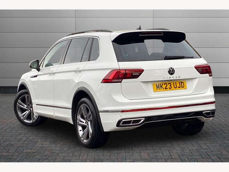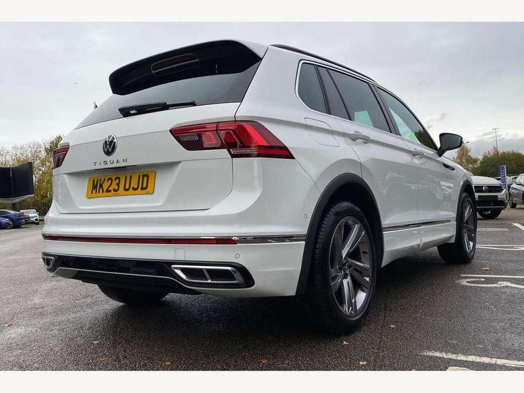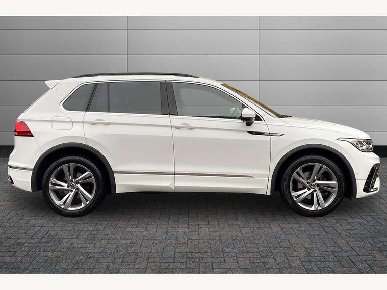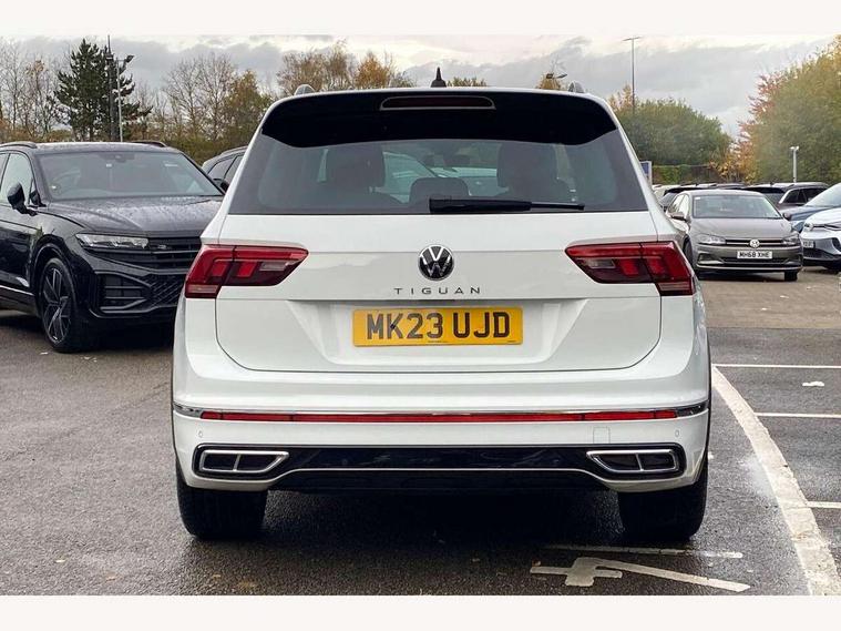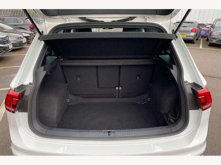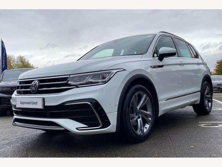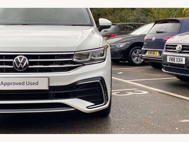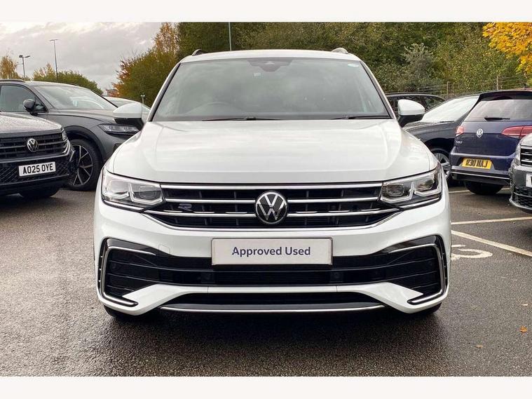 Adaptive cruise control ACC stop and go including speed limiter, App-Connect incl. App-Connect Wireless for Apple CarPlay and Android Auto, Bluetooth phone integration system, Comfort drive travel assist, Digital cockpit pro, Driver alert system, Driver profile selection, Dynamic road sign display, eCall emergency call system, Electromechanical speed sensitive power steering, Emergency assist, Front and rear parking distance sensors, Instrument cluster mph speedometer Great Britain, Lane keeping system Lane Assist, Lights on warning, Multifunction front facing camera, Outside temperature display, Premium multifunction display with multi colour display, Preparation for subsequent activation Navigation feature Discover Media includes Streaming and Internet, Remote control boot opening, Rev counter, Service interval indicator, Speed limit display, Start/stop system with regenerative braking, Tailgate/trunk lid unlocking from outside, Trip computer, Warning sound and light for doors and tailgate open, Battery regeneration during braking, Sports suspension, 8 Speakers, Digital radio reception DAB+, Diversity antenna for FM reception, Radio, Auto dimming interior rear view mirror, Automatic headlight control system, Body colored bumpers in R-Line style, Body colored exterior mirror housings, Body colour door handles, Chrome moldings on the side windows, Coming/leaving home lighting function, Dynamic headlight range control, Front and rear electric windows, Heated rear window, High level 3rd brake light, Laminated safety glass windshield, heat and sound insulating, LED headlamps with LED separate daytime running light and dynamic cornering light, LED rear combination lamps, LED rear number plate lights, License plate carrier in front and rear, Poor weather light and cornering light, Power adjustable, folding and heated door mirrors with surround lighting, front passenger exterior mirror lowering function, Privacy glass for rear side windows and rear window, R Line body kit, R Line side sills, Rain sensor, Rear exhaust tailpipe, Rear fog lamp, Rear side wing doors, Rear spoiler in R style, Rear windscreen washer and wiper with interval delay, Side and rear windows in heat insulating glass, Trailer Stability Programme, Unique R Line badging, Windscreen wipers/ intermittent wipe + 4 position delay, 12V outlet in center console rear and in luggage compartment, 12V outlet in front and tray, 2 LED front reading lights, 2 LED rear reading lights, 3 bench rear seats in 2nd row, 3 rear headrests, Air Care Climatronic 3 zone automatic climate control with enhanced air filter and controls in the rear, Art Velours greyson sports cloth upholstery, Backrest release for left front seat, Black headlining, Brushed stainless steel pedals and footrest, Carpet mats in front and rear with decorative stitching in Gray, Climate control unit rear with touch function, Door and side trim panel in foam film, insert in leatherette, Driver + front passenger lumbar support, Front footwell illumination, Front scuff plates in aluminum with R-Line logo, Front seats head restraints (x-adjustment), Height adjustable front seats, Height/reach adjust steering wheel, Isofix Preparation 2 Rear child seats, Leather gear knob, Rear bench seat asymetrically split folding, longitudinally movable and folding with load-through hatch and center armrest, Remote unlocking for rear seat backrest, Single front passenger seat, Sun visors with illuminated vanity mirrors, Top front comfort seats, Winter pack - Tiguan, 3 point seat belt for centre rear seats, 3 point seat belts with seat belt pretensioners for the outer rear seats, Curtain airbags for front and rear passengers, Driver/Front Passenger airbags, Drivers knee airbag, Electronic parking brake with auto hold, Electronic Stability Control with driver steering recommendation, ABS, ASR, EDL, EDTC and trailer stabilization, Front assist with autonomous emergency braking (for Adaptive Cruise Control ACC up to 130 mph), Front disc brakes, Front passenger airbag deactivation, Front side airbags, Height adjustable front 3 point seatbelts + pretensioners, Manual child proof rear door locks, Pedestrian monitoring system, Proactive passenger protection system in combination with front assist, Rear disc brakes, Two tone horn, Tyre pressure loss indicator, Warning sound and light for front seat belts if unfastened, Warning triangle, Anti theft alarm system with interior monitoring, backup horn and towing protection, Anti theft wheel bolts, Electronic engine immobiliser, Keyless locking and starting system keyless access with safelock, Chrome elements on the mirror switch power window switches and door pulls, Decorative inserts Carbon Gray for dashboard and front door trim panels, Interior door handle in matte chrome, 19" Valencia alloy wheels with AirStop tyres, Tool kit, Tyre mobility kit Includes 12V compressor and tyre sealant,