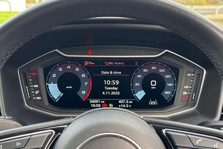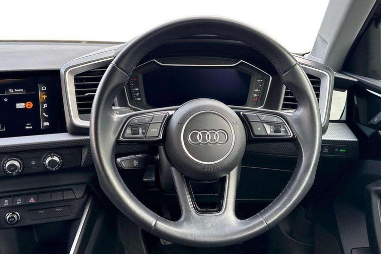 10.25" Digital instrument cluster display classis style instrument dials + speed, odometer, time, outside temperature, telephone menu + fuel level warning, Audi connect safety emergency and service including E-call, Audi drive select - power steering assistance + engine, Audi smartphone interface with connect compatible smartphone via USB directly MMI display + Nav, music, third party apps controlled via MMI controller, Automatic start/stop system, Bluetooth interface, Cruise control, Driver's information system, Electromechanical power steering, Emergency services call system, Lane departure warning system, Service interval indicator, Speed limiter, Voice control system, Washer fluid level indicator, Dynamic suspension, 1 x SDXC card reader, 2 x USB type C connection points, DAB Digital radio, MMI radio plus with 8.8" colour MMI display screen and MMI touch, Auto dimming rear view mirror, Body coloured bumpers, Body coloured door mirrors, Electric front and rear windows, Electrically adjustable, heated, folding door mirrors with integrated LED side indicator, Front side air inlets in grained matt black and C frame in titanium black, Heat insulating glass windscreen and side windows, Heated rear windscreen, High level LED brake light, LED headlights with LED rear lights + dynamic rear indicators + headlight adjustment and high beam, turning light + LED daytime running lights, Radiator grille and rear diffuser in matt titanium black, Radiator protective grille frame in matt aluminium silver, Rain and light sensors, Rear fog lights, Rear side wing doors, Rear wing door, Rear wiper, Side front spoiler lips in grained matt black, 12V socket in centre console with two cup holders, 3 rear seats with headrests, 3 seat bench in 2nd row, 40:60 Split folding rear seat or folded fully, Door sill trims with aluminium inlay, Driver and passenger seat with manual height adjust with forward and backwards adjustment, Front head restraints, Front passenger seat, Front/rear floor mats, Height and reach adjustable steering wheel, ISOFIX child seat mounting for front passenger and outer rear seats including top tether attachment point of outer rear seats, Leather gear knob with aluminium trim, Leatherette handbrake grip, Luggage compartment light with front and rear reading lights, Manually adjustable lumbar support in front seats, Novum cloth upholstery with front sport seats, Titanium grey cloth headlining, Luggage compartment pack - A1, 3x3 point rear seatbelts, Audi pre-sense front with pedestrain and cyclist recognition, Brake assist function, Driver and front passenger airbag with front side and head airbags, Electronic Stability Control including ABS, EBD, ASR and EDL, Front passenger airbag deactivation switch, Hill hold assist, Manual rear child locks, Seatbelt height adjustment for front seats, Seatbelt monitoring, Tyre pressure warning light, Warning triangle and first aid kit, Anti theft alarm, Anti theft wheel bolts and loose wheel warning, Immobiliser, Remote central locking with 2 foldaway keys, Aluminium trim for control switches, air vents and digital instrument cluster, Silver grey accent areas including air vents, door handle recesses and centre console in diamond paint finish, Slate grey inlays polygon structure in fine paint finish,