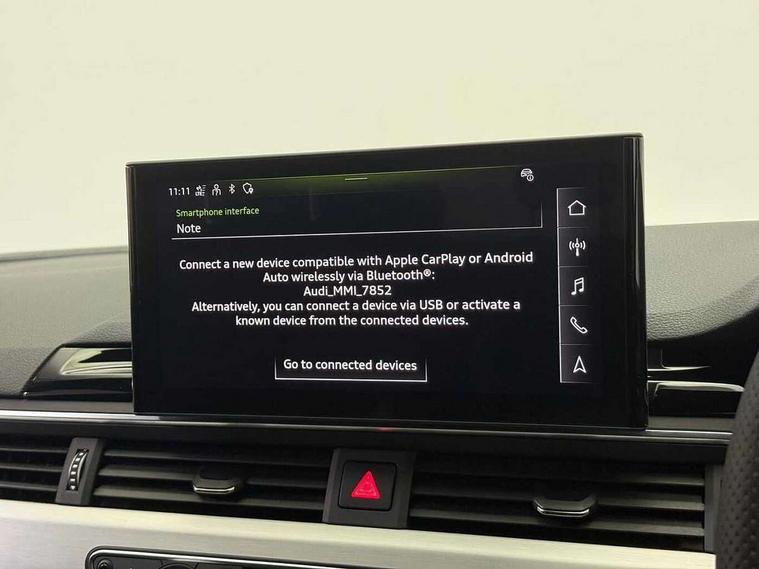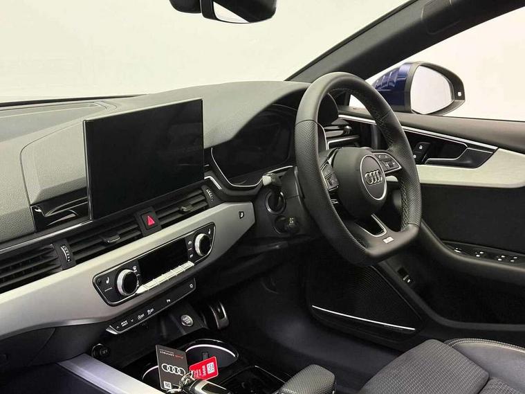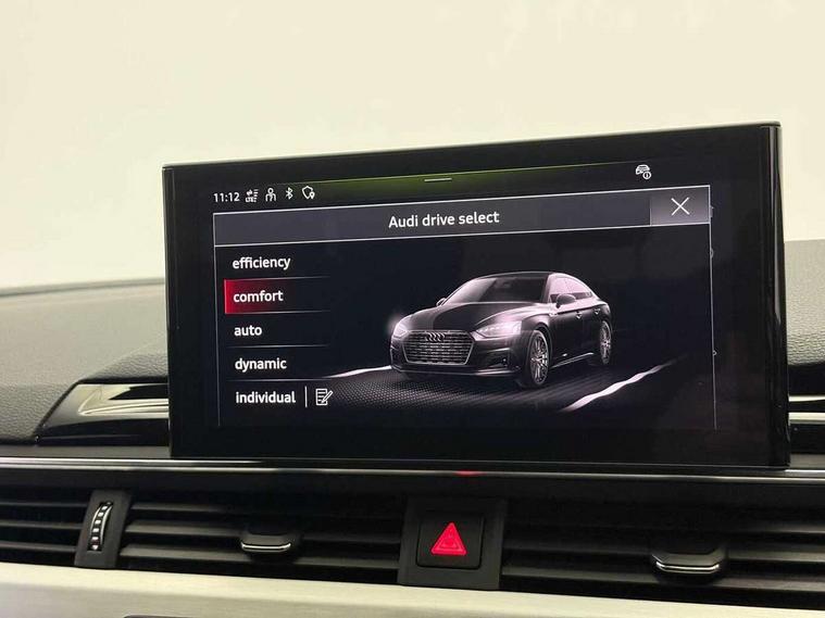 Audi connect safety and service (e-call), Audi connect with Amazon Alexa Integration, Audi drive select (Auto, Comfort, Dynamic, Efficiency and Individual), Audi parking system plus with front and rear sensors, Audi smartphone interface, Audi virtual cockpit - 12.3" full colour digital instrument cluster, vehicle/engine speed, Radio/media information+Driver assistance systems, Automatic start-stop system with coasting functionality and efficiency programme, Bluetooth interface, Electro-mechanical power steering, Email, calendar and text messages displayed via MMI, MMI nav+ with MMI touch - 10.1" high resolution MMI display, touch sensitive, 3D map, route/country info, dynamic route guide, personal route assist, Power operated tailgate, Rear view camera, Service interval indicator, Voice control system, Sports suspension lowered by 23mm, 8 passive loudspeakers, CD player, DAB digital radio reception, Two additional USB ports for rear passenger in rear centre console, Two SDXC card slots, Audi matrix LED headlights with LED rear lights + dynamic front and rear indicators, Auto dimming door mirrors, Auto dimming rear view mirror, Body colour bumpers, Body colour door handles, Body colour front spoiler lip, Body colour side sill trim, Body coloured door mirrors, Electric adjustable heated door mirrors, Electric folding door mirrors, Electric front windows, Front fog lights, Honeycomb structure radiator grille in grained matt black, Kerb-view function for passenger side, LED daytime running lights, LED side indicator lights integrated into door mirrors, LED third brake light, Matt aluminium silver tailpipe trim, Privacy glass, Rain and light sensors, Rear side wing doors, S line badges on front wings, S line front and rear bumpers with side skirts, S Line rear diffuser in matt anthracite black with trim strip in matt aluminium silver, Side air inlets in grained matt black with matt aluminium silver inlay, Variable front intermittent wipers, Windscreen with acoustic glazing, 3 seat bench in 2nd row, 3 spoke high multifunction leather sport steering wheel with paddle shfit and S badging perforated leather grips, 4 way electric lumbar support for driver and front passenger, 40/20/40 split folding 3 seater rear bench seat, Adjustable steering column, Black cloth headlining, Black perforated leather gearknob, Contrast stitching on seats, steering wheel and gear lever gaiter, Deluxe 3 zone electronic climate control, Front centre armrest, Front head restraints, Front/rear floor mats, Heated front seats, Illuminated door sill trim with S logo, ISOFIX child seat mounting and top tether, Luggage compartment mat, Manual seat adjustment, Rear centre armrest, Rear headrests, Single front passenger seat, Stainless steel pedals, Sunvisors with vanity mirrors, LED interior light pack - A5/RS5, 3x3 point rear seatbelts, 6 airbags - Driver, front passenger, curtain and side airbags, Electromechanical parking brake, Electronic Stabilisation Control (ESC) including ABS, ASR and EDL, Front passenger airbag deactivation, Height adjustable front seatbelts, Hill hold assist, Manual child lock in rear doors, Multi collision brake assist, Pop-up bonnet for pedestrian protection, Pre sense city, Seatbelt monitoring, Tyre pressure warning, Variable restraint system, Warning triangle and first aid kit, Anti theft alarm system, Anti theft wheel bolts, Immobiliser, Keyless Go, Remote central locking, Matt brushed aluminium inlays, Tool kit, Tyre repair kit,
