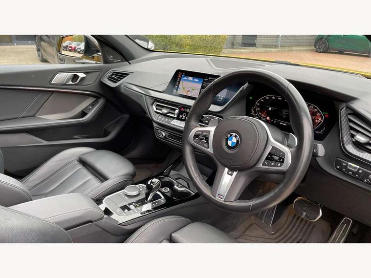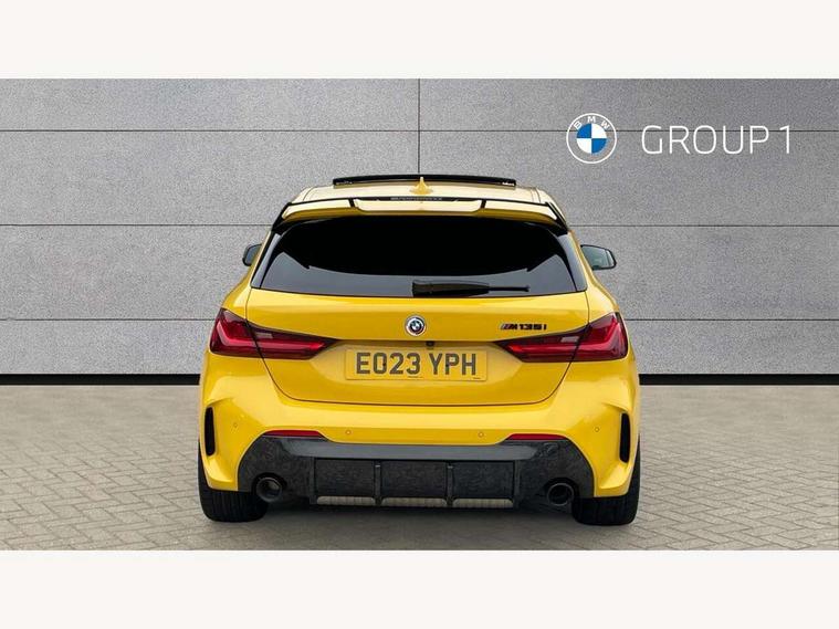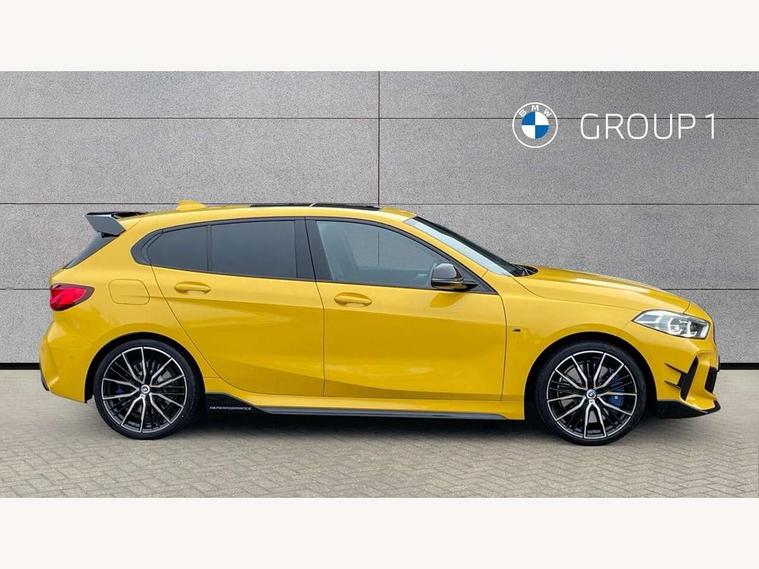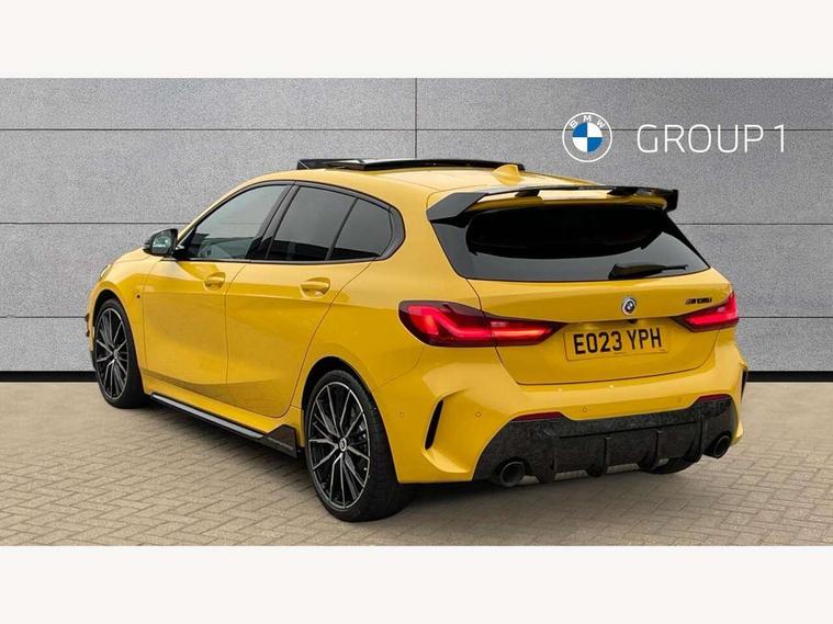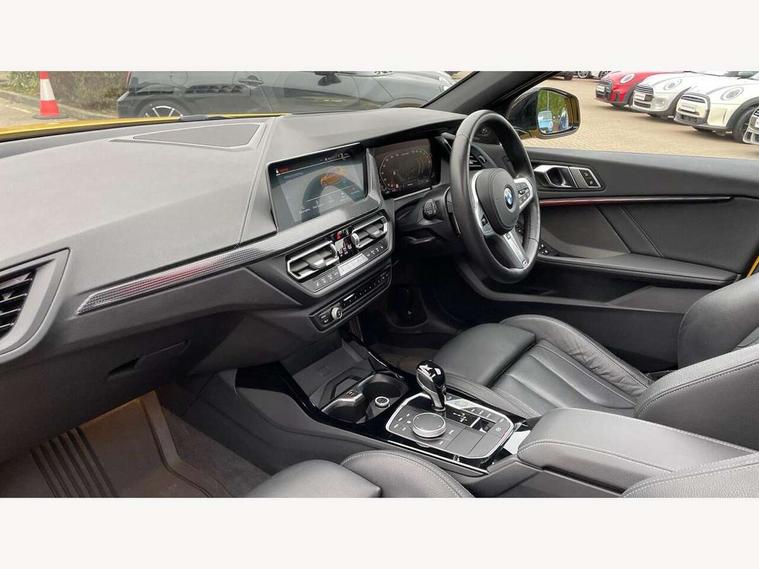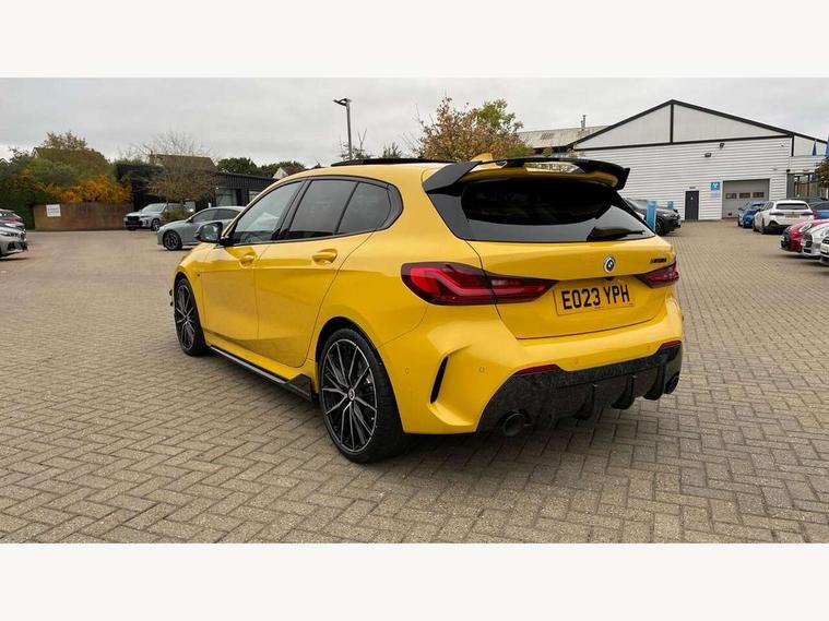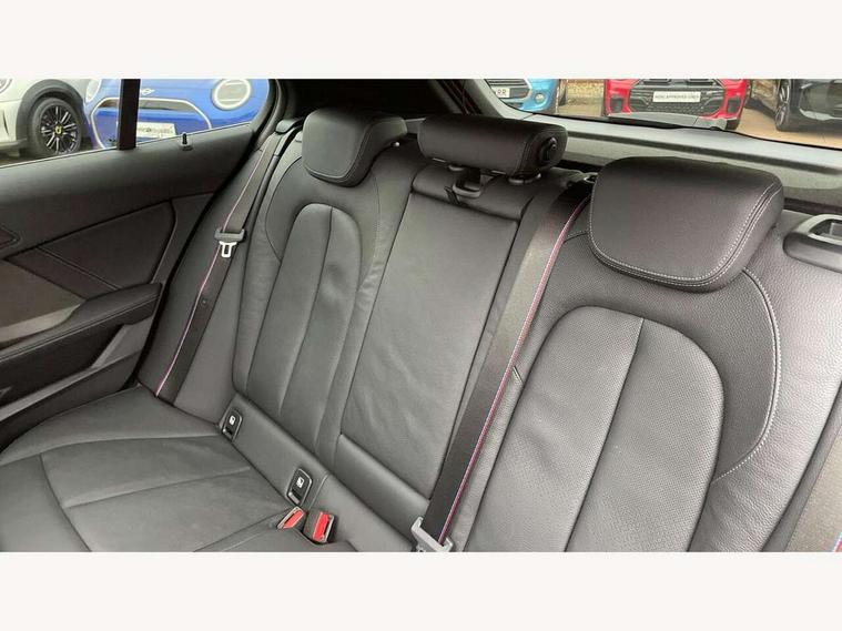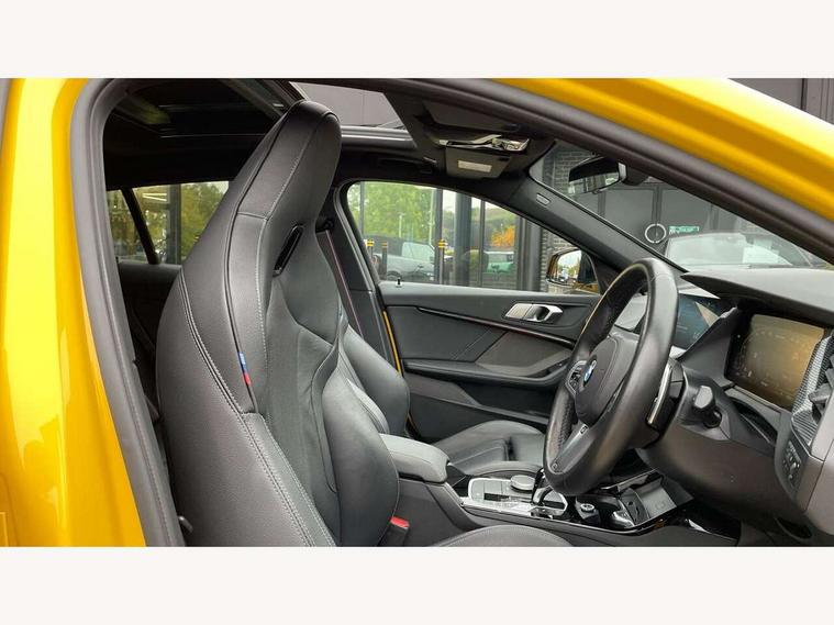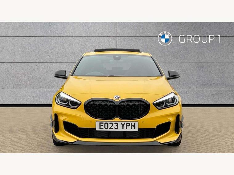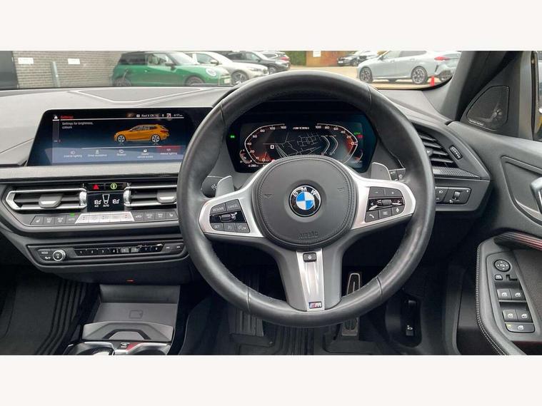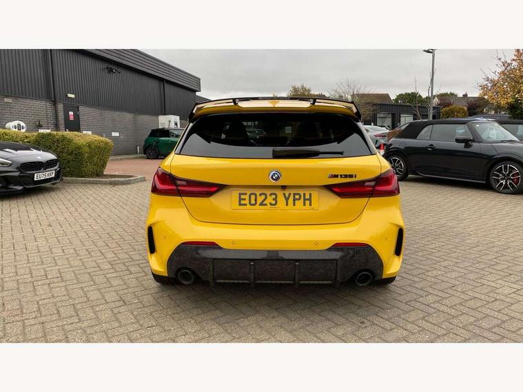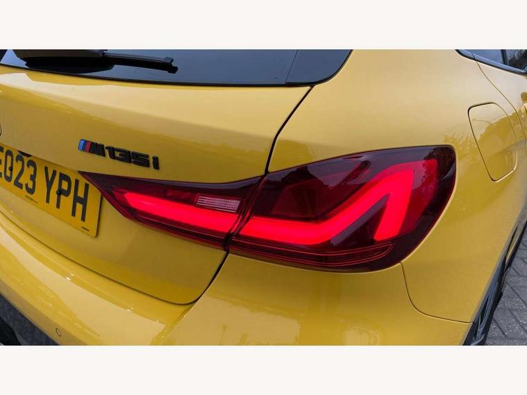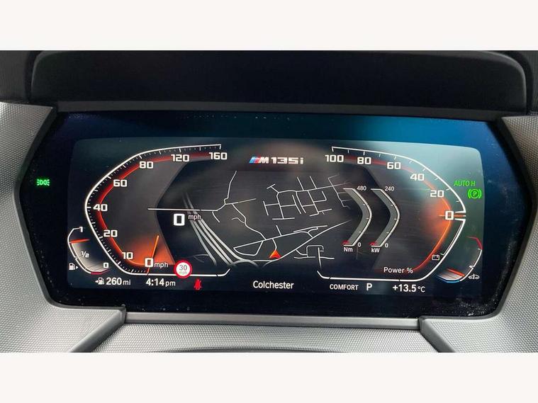 Active guard plus, Attentiveness assist, BMW ConnectedDrive online services, BMW Teleservices, Check Control warning system for monitoring of lights and door/luggage compartment open warning, Cruise control with speed limiter, Eco pro mode, Electric power steering, Electro hydraulically controlled multi-plate clutch transfers drive to rear axle and with power take-off device located on the front differential., Energy efficient operating strategy, Front axle single joint with specific axle kinematics to minimise drive influences on steering + provide increased rigidity agile driving behaviour, Gearshift time display in manual mode, Integrated owners handbook, Lane departure warning system, M Sports steering with M135i xDrive specific settings, Oil sensor for level and grade, On board computer, Optimum shift indicator, Personal Profile, Pull away assistant, Rigidly mounted rear subframe - Multi link construction with separate spring / damper configuration and excellent driving characteristics, Speed limit Info including no-overtaking indicator, Sporty fast gear shifting in sport mode, Aluminium lightweight construction, Anti roll bar front and rear, Balancer shaft, Double VANOS, Drive Performance Control, Eight speed sport automatic transmission with gearshift paddle switches, Electronic differential lock, Electronic selector lever, Engine cover with M performance designation, High precision injection, Larger fuel tank capacity (50 litres), Launch control, M135i specific heavily de-throttled engine intake air guide, M135i specific high-performance cooling package, M135i specific larger turbocharger with integrated divert-air valve, Petrol Particulate Filter, Twin tube gas filled shock absorbers with degressive characteristic curve, VALVETRONIC engine management, Variable, stepless and infinitely adjustable distribution of drive torque between the front and rear axles, xDrive intelligent all wheel drive with M135i specific reinforced components, DAB Digital radio, Auto dimming rear view mirror, Automatic headlight beam throw control, Automatic windscreen wipers and automatic headlight, Body colour door handles, Body colour roof trims, Cerium grey exterior mirror caps, Direction indicator side lights in exterior mirrors, Electrically adjustable exterior mirror with mirror adjustment switch on drivers armrest and aspheric on driver side, convex on passenger side, Exhaust tailpipe, Cerium Grey with bevelled finish - twin, round 100mm, left and right split, Fading support, Folding side mirrors with auto dimming/folding wing mirrors with auto dimming, Follow me home headlights, Front and rear bumper system with replaceable deformation elements, Front and rear electric windows with open and close fingertip control, anti trap facility and comfort closing, Front door sill finishers with M135i designation, Green tinted heat protection glazing, High gloss shadowline window frame, Recess cover mirror frames and B/C pillar embelisher trim, High level third brake light, Integrated front windscreen with washer jets, Kidney grille frame in Cerium Grey with Mesh design, LED daytime running lights, LED eyebrow turn indicators, LED front fog lights, Lightweight engineering, M logo designation side in cerium grey, M Performance exhaust system with valve control and minimised exhaust back pressure, M Performance specific setup, M Sport spoiler, Matt black air guide grilles, Matt black wheel arch trim, Model designation on electric bootlid includes xDrive designation for M135i xDrive, Nearside reverse light in rear light cluster, Preparation for high beam assistant, Rear fog lights, Rear side wing doors, Rear window wiper, Reinforced crank drive, new pistons and adapted con rods, Shark fin antenna, Trailer stabilisation logic, Visible VIN plate, Welcome lighting, 12V power socket in front centre console with blanking plug, 3 rear seat head restraints, 3 seat bench in 2nd row, 3 spoke sports leather steering wheel with black leather and stitching, pearl chrome decorative finish, specific M Badge, Anthracite headlining, Black boot net with lashing eyes, Cargo function on 2nd seat row, Child seat ISOFIX attachment for two outer rear seats and front passenger seat with anchorage points, Conditioned based service, Driver and front passenger backrest net on rear, Driver and front passenger seat heating, Driver side folding compartment in instrument panel, Folding rear clothes hook, Four grab handles integrated in roof lining, Front and rear door pockets with bottle holders, Front and rear side armrest integrated into door trim, Front armrest, Front M sports seats, Glove compartment, Height adjustable front head restraints, Luggage compartment for bag hooks on left and right, foldable luggage compartment liner and four lashing eyelets, Manual adjust steering wheel, Multi-function controls for steering wheel, Single front passenger seat, Storage compartment in centre console, Storage compartment in luggage compartment, Stowage of the parcel shelf in luggage compartment trim, Sun visors with vanity mirrors and insert tab, Two front centre console cupholders, Two zone automatic air conditioning, Type C two USB ports in rear centre console, Velour floor mats, Additional interior lighting pack - 1 Series M135i, BMW live cockpit professional pack- 1 Series, Connected pack professional - 1 Series, Interior lights pack - 1 Series, M Sport exterior styling aerodynamics pack - 1 Series 135i, 2 tone horn, 3 point seatbelts on all seats, front pyrotechnic belt tensioners, stopper and belt force limiters, rear coded belt buckles, Airbags - Front driver/passenger, front and rear curtain head protection, front side, manual deactivation of front passenger airbag, Anti lock braking system (ABS) with brake assist, BMW emergency call, Brake drying, Braking readiness, Child proof locking system in rear door, City braking function, Comfort modes, Cornering brake control, Crash sensor activating of airbags, Unlocking doors, hazard warning 