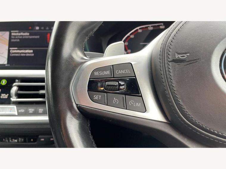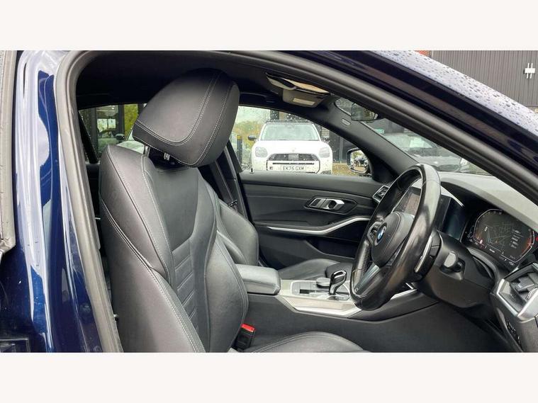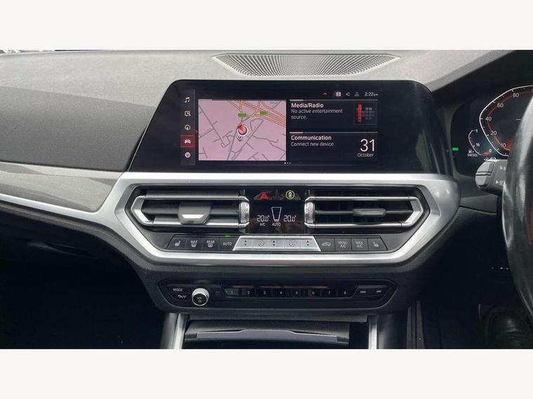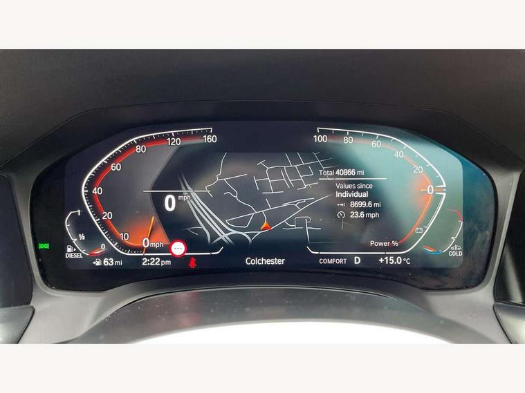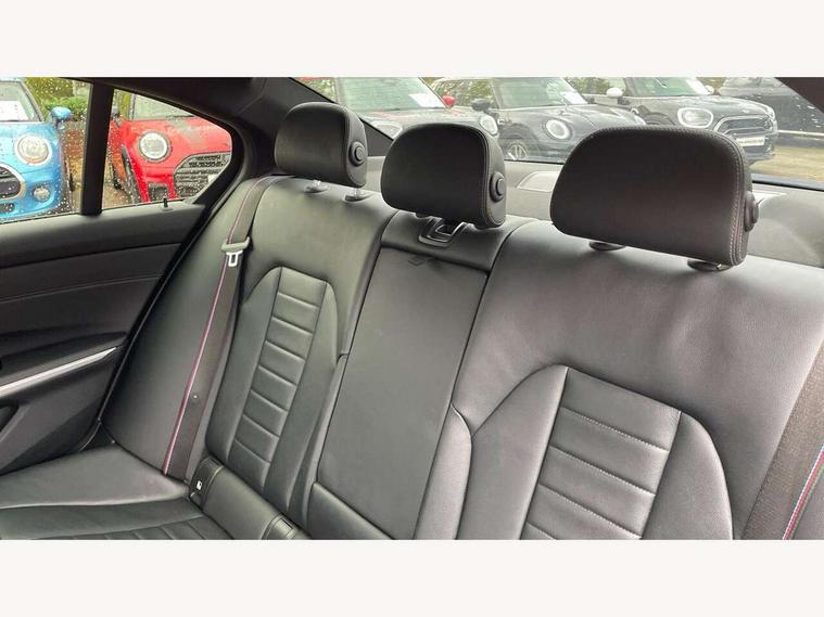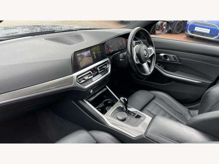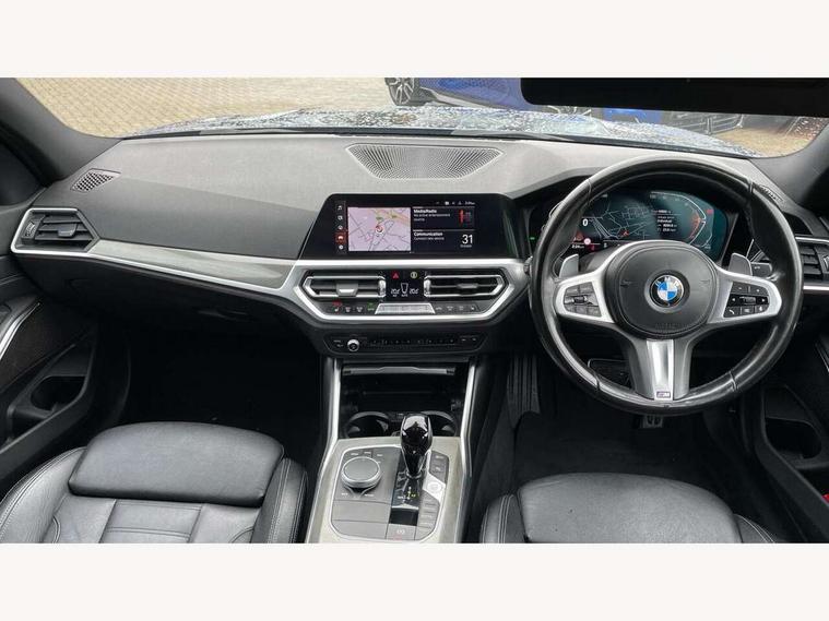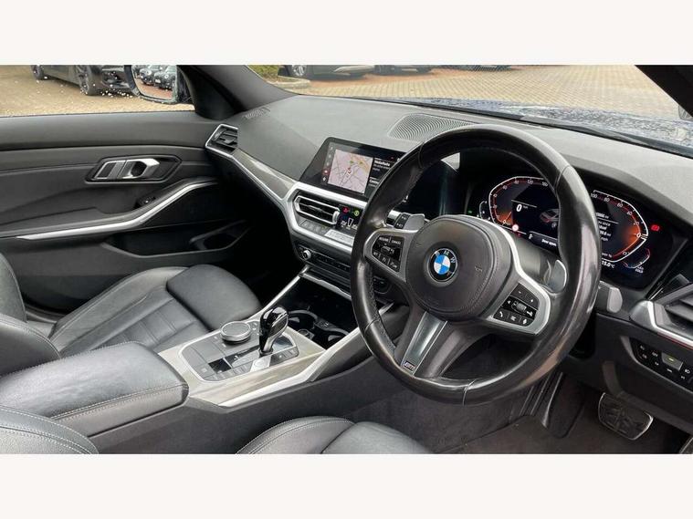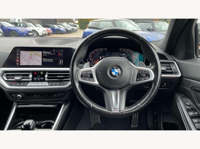 Active guard plus, Attentiveness assist, Bluetooth hands free facility with USB audio interface with audio streaming, BMW iDrive controller on centre console, BMW Live Cockpit Professional Nav with 12.3" instrument display + 10.25" display, Intelligent Voice Assist, BMW OS 7, HDD, 2USB, 4G LTE connect, BMW service history, BMW Teleservices, Brake pad wear indicator in front and rear, Check Control warning system for monitoring of lights and door/luggage compartment open warning, Condition based service, Cruise control with brake function + speed limiter, Electric power steering with Servotronic steering optimised at all speed ranges, Instrument cluster with speedometer with mph readout, tachometer, fuel gauge and oil temperature gauge, Integrated owners handbook, Oil sensor for level and grade, warning by check control system, On board computer - average speed+fuel consumption, service interval, clock/date, odometer/trip meter, outside temperature display and ice warning, Optimum shift indicator, Personal Profile - automatic lock when driving away selectable, Variable sport steering, 48V Mild hybrid technology, Adaptive M suspension, Balanced 50/50 weight distribution, Battery cut-out switch, Diesel particulate filter, Drive performance control - ECO PRO, comfort and sport modes, Incorrect fuelling protection, Larger capacity fuel tank, M Sport differential, Stroke dependent dampers, DAB tuner, Electronic service booklet, Acoustic glazing, Active airstream chrome frame kidney grille with 8 high gloss black vertical slats, Automatic headlight beam throw control with load dependent regulating reaction, dynamic compensation of braking dive and acceleration squat, Black mirror caps, Black roof mouldings, BMW Individual high gloss shadow line with extended contents, BMW individual lights shadow line, BMW Unique paint, Body colour door handles, Body colour front and rear bumpers, Body colour fuel filler flap, Dynamic brake lights, Electric windows - front and rear, with open/close fingertip control, anti-trap facility and comfort closing, Exhaust tailpipe - split left and right, Exterior mirrors - electrically folding with anti-dazzle, Fading support, Front and rear bumper system with replaceable deformation elements, Front black door sill finishers with BMW designation, Green tinted heat protection glazing, High gloss shadow line exterior trim, Interior rear view electrochromatic mirror with automatic anti dazzle function, LED daytime running lights, LED front fog lights, LED third brake light, Lightweight engineering, M designation on front side panels, left and right, M Sport spoiler, Matt black exterior B pillar, Model designation on right side of tailgate, Rain sensor with automatic headlight activation, Rear boot, Rear side wing doors, Shark fin antenna, Sun protection glass, Two part LED tailights in L-shape with components in smoked glass, brake light, LED turn indicator and rear fog light, Visible VIN plate, Welcome lights in interior and door handle area, Windscreen wipers with integrated washing jets, 12V power socket in front storage compartment, 2 front cupholder in centre console with clamping elements and matt black inlay, 3 rear seats with non folding headrests with 3 point seat belts, 3 seat bench in 2nd row, 3 zone automatic air conditioning, 4 pieces lashing eyelets in luggage compartment, 40:20:40 split folding rear seat with loading system, Ambient lighting with welcome carpet light, Anthracite headlining, Armrest integrated in front and rear door trim + front centre console armrest, Backrest width adjustment, Centred top Luggage compartment lights, Four grab handles integrated in roof lining, Front and rear door exit lighting (left / right), Front and rear door pockets, Front and rear reading lights, Front and rear velour floor mats, Front head restraints, Front sport seats, Heated front seats, Height adjustable mechanically and infinitely variable steering column, Illuminated armrest storage compartment, Illuminated glove compartment with separate small compartment, Interior lighting - front centre over interior mirror with soft light, rear centre and front and rear footwell lighting, M sport leather steering wheel, Make-up mirror lights, Rear centre armrest with 2 cupholders, Rear centre console with storage compartment and ventilation grille, Single front passenger seat, Sunvisors with vanity mirrors and ticket pocket, Toolkit located in luggage compartment, Connected pack professional - 3 Series Saloon/Touring, M sport exterior styling pack - 3 Series Saloon/Touring, Parking assistant pack - 3 Series, 2 tone horn, BMW emergency call, Brake energy regeneration, Braking pre-tensioning, Child proof locking system in rear door, Child seat ISOFIX attachment rear outer seats, Coasting in idle in ECO PRO mode, Crash sensor activating of airbags, Unlocking doors, hazard warning lights, interior light, safety battery terminal, Driver and front passenger side airbags, integrated in the door side seat backrest bolsters for all seat variants, Driver/Front Passenger airbags, Dry braking, Dynamic brake control, Dynamic stability control + (DSC+) - Anti-lock Braking System (ABS) with brake assist and cornering brake control + Automatic Stability Control (ASC), Dynamic Traction Control - DTC, Electric parking brake including automatic hold function and automatic release of the parking brake when driving off, Front passenger manual airbag deactivation, Head airbags for all 4 outer seats, Hill start assist, M sport seatbelt, Seat belt security check for driver and front passenger, Side impact protection, Three 3 point seat belts on all seats including front belt stopper, pyrotechnic belt tensioners and belt force limiters, Tyre pressure monitoring with three level warning strategy, Ventilated front and rear disc brakes, Warning triangle and first aid kit, Alarm system (Thatcham 1) with remote control and electronic engine immobiliser, Central locking switch for all doors, fuel filler c