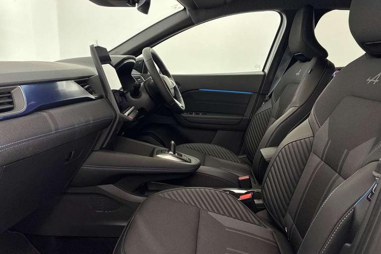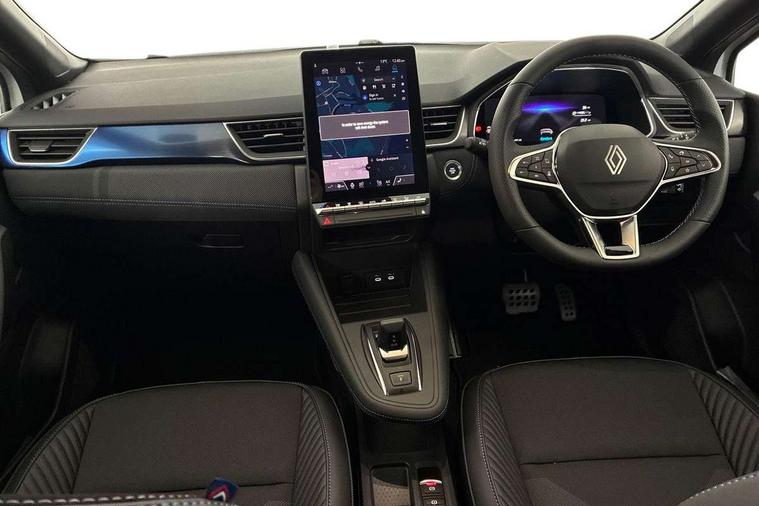 10.25" digital driver display, 10.4" OpenR link touchscreen with with built in Google Automotive Services and navigation, 2 front USB-C ports, 2 rear USB-C ports, Active driver assist including intelligent contextual adaptive cruise control + lane centering, Blind spot recognition and rear detection, Driver attention alert system, Driver drowsiness alert system, e-Call automatic emergency assist, Emergency lane keep assist including solid line, oncoming traffic and road edge detection, Engine start button, Front and rear parking distance sensors, Intelligent speed assistance include traffic sign recognition with speed alert, Lane departure warning system, Multisense with 4 driving modes and upto 48 ambient lighting colours, Navigation system with built in google maps, Outside temperature display, Performance mode selector - multisense 4 driving modes (sport, comfort, perso and eco), Power assisted steering, QR code fireman access for technical information, Rear cross traffic alert with rear active emergency braking system, Rear view camera, Safe stopping distance warning, Service interval indicator, Side parking sensors, Trip computer, Voice control for navigation system with built in google assistant, Wifi smartphone integration compatible with Apple CarPlay and Android Auto, Wireless phone charger, Speed limiter 111mph, 6 speakers inc 2 boomer + 2 tweeter + 2 bicone, DAB radio with Bluetooth, 2 reversing lights, Auto dimming rear view mirror with light and rain sensor - frameless, Automatic front wipers with rain sensors, Automatic headlights, Automatic high/low beam, Body colour door handles, Body coloured bumpers, Body coloured door mirrors, Chrome around front air deflectors, on front wing deco element and window lining, Dark tinted glass in rear windows and tailgate, Diamond black contrasting roof, Drivers one touch window with anti-pinch feature, Electrically folding door mirrors, Flush and longitudinal roof bars, Front and rear electric windows, Full LED front and signature rear lights, Gloss black window frame, Heated door mirrors, Heated rear windscreen, LED daytime running lights, LED high level brake lights, LED rear fog lights, LED turn indicators on door mirrors, Matt grey F1 blade, Radiator grille with 3D graphic black upper part with body tone graphics, Rear side wing doors, Rear wiper, Shark fin antenna, 12v power outlet - front, 2 front roof LED lights and central rear roof light with 3 reading LED lights, 3 bench rear seats in 2nd row, Aluminium sports pedals, Automatic air conditioning with one touch demist function and air quality regulator, Driver and front passenger seat with electric height adjustment, Esprit alpine interior styling, Flying console with central storage, sliding armrest and 2 rear air vents, Front head restraints, Glovebox, Heated front seats, Heated steering wheel, Heating system with pollen filter, Height/reach adjust steering wheel, ISOFIX child seat fixing points on rear outermost seats, Jacquard Madama fabric upholstery, Modular boot floor, Multifunctional steering wheel, Rear head restraints, Rear seats - 1/3:2/3 foldable sliding bench, Single front passenger seat, Sunvisor with mirror and light, Synthetic leather steering wheel, 3 rear seatbelts, ABS+EBA, Active emergency braking system - Urban, pedestrian/cyclist with junction function, Blue trim seatbelts on front seats and outermost rear, Collision avoidance braking, Distance warning alert, Driver and front passenger airbags, Driver and front passenger and 3 rear passengers seatbelt reminder, Driver height adjustable seat belt, Electric parking brake with auto hold function, Electronic stability control, Front dash warning indicator in case of heavy braking, Front driver and passenger side airbag deactivation, Hill start assist, My safety shield - ability to personalise ADAS features at press of a button, Occupant safe exit, Outer rear safety seat belts, Passenger airbag deactivation system, Rear door and window child locking function for rear door, Side airbags, Tyre pressure warning light, Vehicle sound for pedestrians, Alarm, Hands free keycard with Keyless access and start, Immobiliser, Locking fuel cap, Locking wheel nuts, RAID (Renault Anti-Intruder Device) automatic door locking, Remote central locking, Superlocking, Black soft touch dashboard, Brushed blue decorative upper strip, Lower textile strip on dashboard with red, white and blue flag, 19" esprit Alpine Elixir alloy wheels,