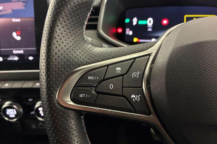 10" customisable digital driver display, Active cruise control with stop and go + speed limiter, Apple car play/Android Auto, Blind spot warning, Driver attention warning, Easy link 9.3" touchscreen with built in navigation + Wifi smartphone integration plus, Eco mode driving function, Emergency call system, Front park assist, Front parking sensors, Lane departure prevention, Lane departure warning system, Lane keep assist, Multisense 3 driving modes including ambient lighting, Over speed prevention, PAS, Rear cross traffic alert, Rear park assist, Rear parking sensors, Rear view camera, Saftey shield [button for personalisation configuration of key ADAS features], Start/stop system, Traffic sign recognition, Wireless phone charger, 2 USB ports, Arkamys speakers - x6 inc. 2 boomer, 2 tweeter and 2 bicone, Bluetooth, 1x jack, 1x aux socket, DAB/FM Radio, Automatic headlights, Automatic high / low beam, Automatic windscreen wipers, Black auto folding wing mirrors with defrosting and temperature gauge and LED indicator, Body colour bumpers, Body colour door handles, Electric rear windows, Electrically adjustable door mirrors, Electrochromatic frameless rear view mirror with light and rain sensor, Exhaust pipe, Exterior rear hidden door handles, Front and rear LED roof light x 2, Front fog lights, Full LED front and rear headlamps integrating daytime running lights at the front and rear, Heated rear windscreen, LED rear signature lighting, LED third brake light, Matte shadow grey F1 blade, One touch electric front windows, Rear brake light, Rear side wing doors, Rear wiper, Shadow grey insert on lower side doors, Shadow grey side window surrounds, Shadow grey upper grille, Shark fin antenna, Tinted rear windows, 3 rear height adjustable headrests, 3 seat bench in 2nd row, 60/40 split and fixed base rear seat bench, Aluminium pedals, Automatic air conditioning, Black armrests in door panel, Centre console armrest, Fabric seat with synthetic leather detailing upholstery, Floating console with storage, Heated front seats, Heated steering wheel, Height adjustable front headrests, Isofix system on outer rear seats, Mechanical height adjustable front seats, Power supply jack, Single front passenger seat, Sun visor without light, Top grain synthetic leather steering wheel with blue stitching, 3 point seatbelts on all rear seats, ABS, Automatic emergency braking system with emergency brake assist, Child locks on rear doors, Curtain airbags, Distance warning alert, Driver and passenger airbags, Electronic brake force distribution, Electronic parking brake with auto hold, ESC (Electronic Stability Control), Front passenger airbag deactivation, Front side airbags, Height adjustable passenger seatbelt, Hill start assist, Seatbelt reminder, Tyre pressure monitor, 2x Black keys, Hands free key card with push button, start and stop function, RAID (Renault Anti-Intruder Device) automatic door locking, Superlocking, Dark interior roof trim, 17" Esprit alpine diamond cut alloy wheels,