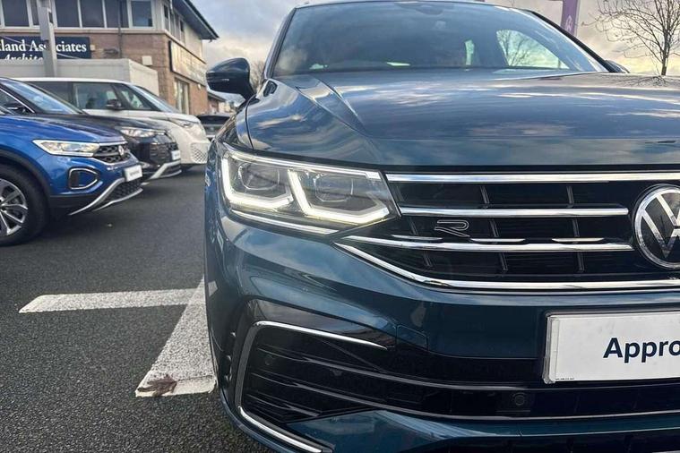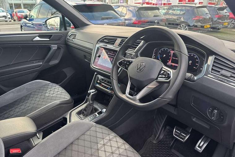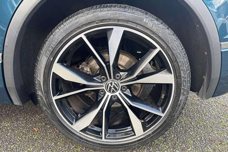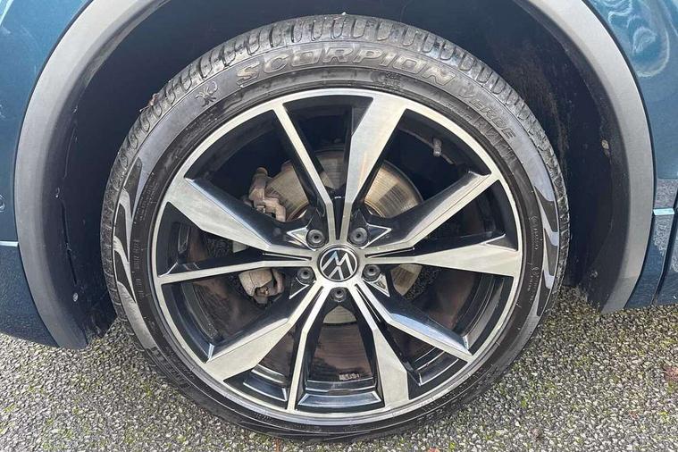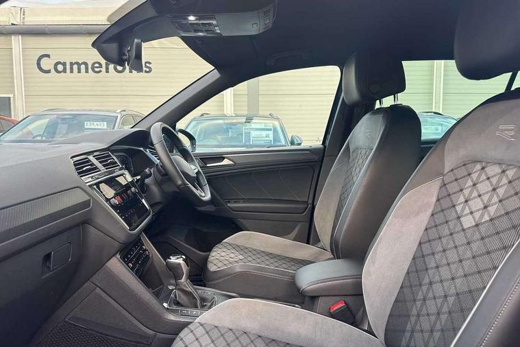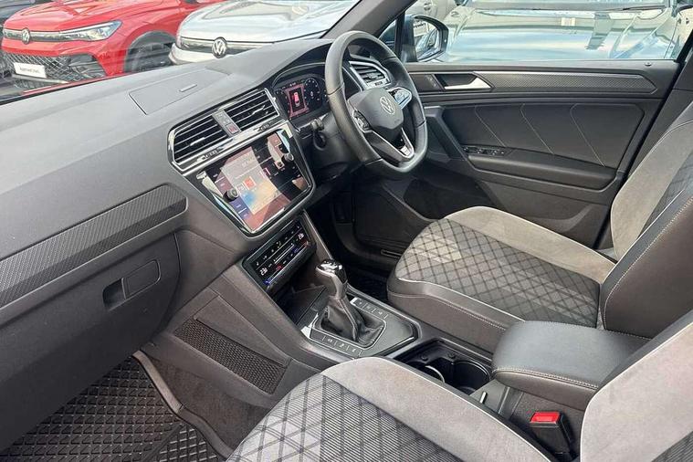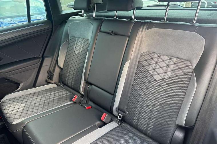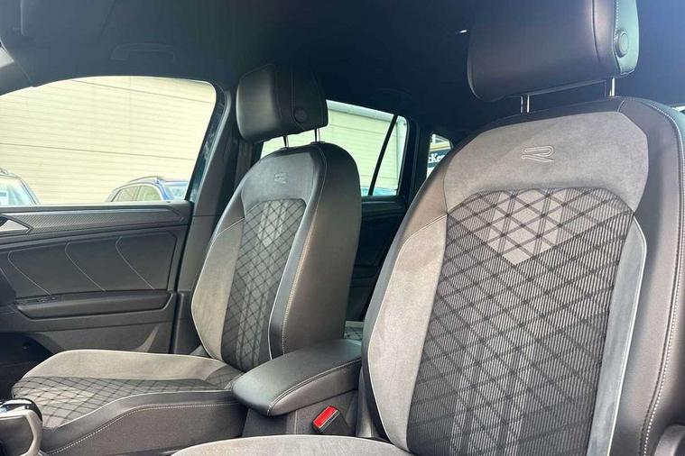 Ambience pack - Tiguan R Line, Driver assistance pack plus - Tiguan, 20" Misano black with diamond turned surface alloy wheels with Airstop tyres, Anti theft alarm system with interior monitoring, backup horn and towing protection, Anti theft wheel bolts, Electronic engine immobiliser, 2 USB-C ports in the front, 1 USB-C charging socket on the center console in the rear, Diversity antenna for FM reception, Radio, SD card slot, Simultaneous pairing of 2 compatible mobile devices, SMS functionality - read, compose and send SMS messages using touch-screen display, Title and cover art display, 3 point seat belt for centre rear seats, 3 point seat belts with seat belt pretensioners for the outer rear seats, Active bonnet, Curtain airbags for front and rear passengers, Driver/Front Passenger airbags, Drivers knee airbag, Electronic parking brake with auto hold, Electronic Stability Control with driver steering recommendation, ABS, ASR, EDL, EDTC and trailer stabilization, Front assist with autonomous emergency braking (for Adaptive Cruise Control ACC up to 130 mph), Front disc brakes, Front passenger airbag deactivation, Front side airbags, Height adjustable front 3 point seatbelts + pretensioners, Hill hold control, Pedestrian monitoring system, Proactive passenger protection system in combination with front assist, Rear disc brakes, Rigid safety cell with front and rear crumple zones, Two tone horn, Warning sound and light for front seat belts if unfastened, Auto dimming interior rear view mirror, Automatic headlight control system, Black roof rails, Body colour door handles, Body coloured bumpers in R Line style, Chrome moldings on the side windows, Coming/leaving home lighting function, Dynamic headlight range control, Front and rear electric windows, Heated rear window, High level 3rd brake light, Laminated safety glass windshield, heat and sound insulating, LED rear number plate lights, License plate carrier in front and rear, Poor weather light and cornering light, Privacy glass for rear side windows and rear window, R Line body kit, R Line side sills, Rain sensor windscreen wipers, Rear exhaust tailpipe, Rear fog lamp, Rear spoiler in R style, Rear windscreen washer and wiper with interval delay, Side and rear windows in heat insulating glass, Trailer Stability Programme, Unique R Line badging, Windscreen wipers/ intermittent wipe + 4 position delay, 12V outlet in center console rear and in luggage compartment, 2 cup holders in front, 2 LED front reading lights, 2 LED rear reading lights, 3 rear headrests, 4 load lashing points, 40:20:40 split folding rear seats, Air Care Climatronic 3 zone automatic climate control with enhanced air filter and controls in the rear, Backrest release for left front seat, Black headlining, Brushed stainless steel pedals and footrest, Carpet mats in front and rear with decorative stitching in Gray, Climate control unit rear with touch function, Door and side trim panel in foam film, insert in leatherette, Front footwell illumination, Front seats head restraints (x-adjustment), Height adjustable front seats, Height/reach adjust steering wheel, Instrument lighting white adjustable panel illumination, Interior light with delay, Isofix Preparation 2 Rear child seats, Leather gear knob, Lockable cooled glovebox, Luggage compartment lighting, Rear bench seat asymetrically split folding, longitudinally movable and folding with load-through hatch and center armrest, Remote unlocking for rear seat backrest, Removable luggage cover, Safety optimised front head restraints, Sliding/reclining rear seats, Standard rear seat release, Storage compartment in driver's door, Storage compartment in passenger's door, Storage compartment in rear doors, Storage compartments in luggage area left and right, Storage tray on dashboard, Sun visors with illuminated vanity mirrors, Tool kit, Top front comfort seats, Variable boot floor, height adjustable and removable, Adaptive cruise control ACC stop and go including speed limiter, App-Connect incl. App-Connect Wireless for Apple CarPlay and Android Auto, Bluetooth phone integration system, Digital Cockpit Pro - Active info display, Distance control assist, Driver alert system, Driver profile selection, Dynamic road sign display, eCall emergency call system, Electromechanical speed sensitive power steering, Lane keeping system Lane Assist, Lights on warning, Multifunction front facing camera, Outside temperature display, Premium multifunction display with multi colour display, Revision / skills operating concept travel assistant, Service interval indicator, Start/stop system with regenerative braking, Warning sound and light for doors and tailgate open, Battery regeneration during braking, XDS electronic differential lock for improved traction and handling,