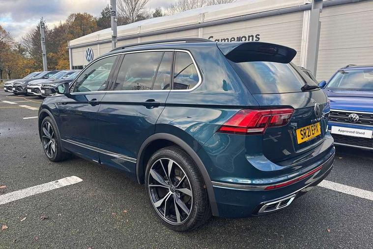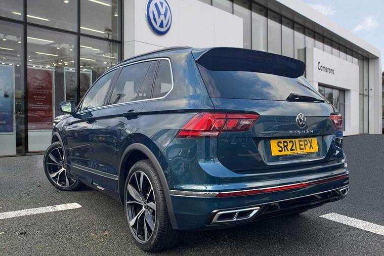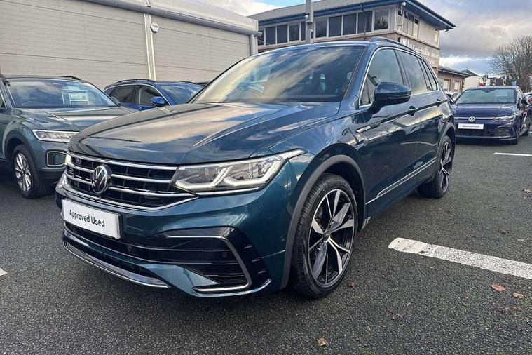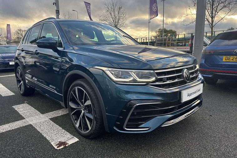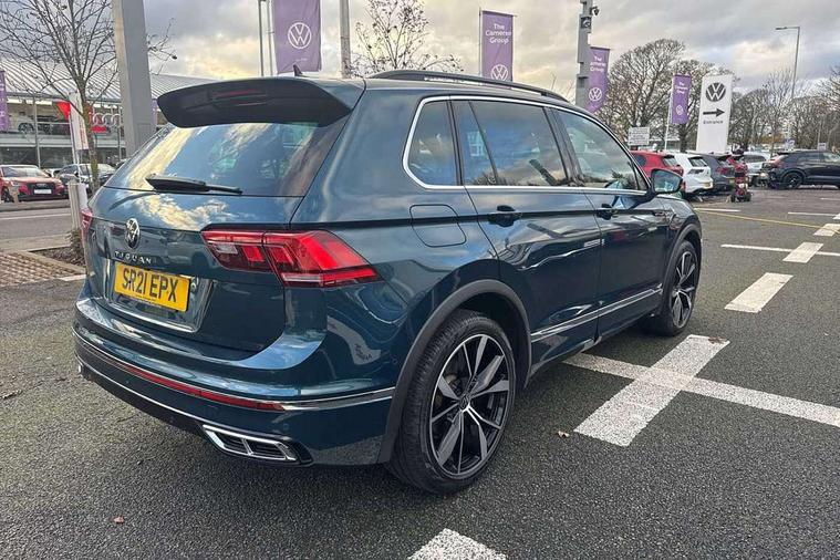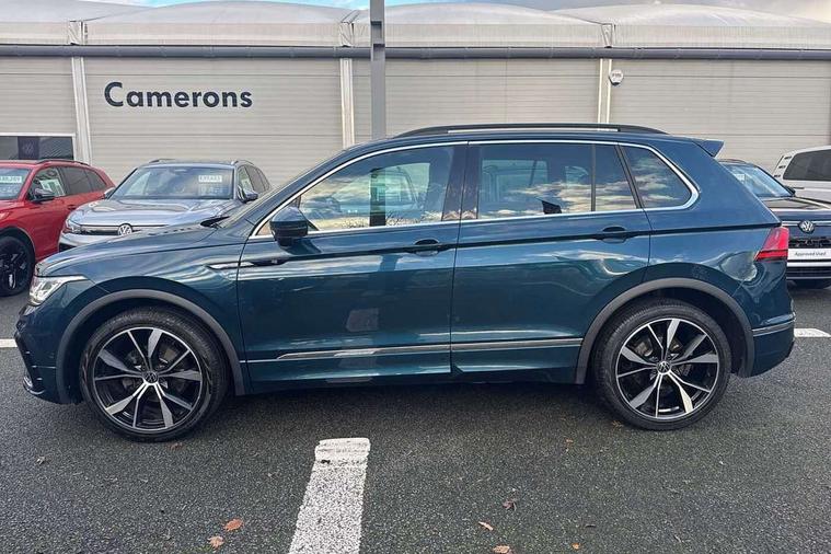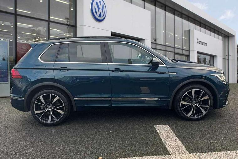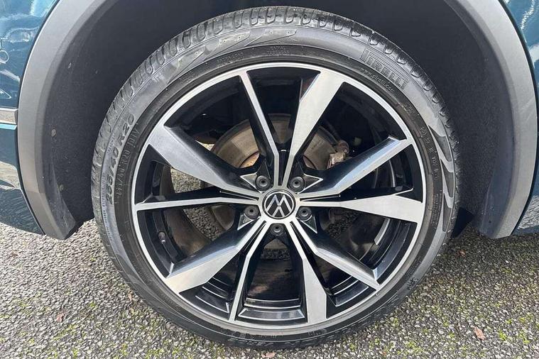Ambience pack - Tiguan R Line, Driver assistance pack plus - Tiguan, 20" Misano black with diamond turned surface alloy wheels with Airstop tyres, Anti theft alarm system with interior monitoring, backup horn and towing protection, Anti theft wheel bolts, Electronic engine immobiliser, 2 USB-C ports in the front, 1 USB-C charging socket on the center console in the rear, Diversity antenna for FM reception, Radio, SD card slot, Simultaneous pairing of 2 compatible mobile devices, SMS functionality - read, compose and send SMS messages using touch-screen display, Title and cover art display, 3 point seat belt for centre rear seats, 3 point seat belts with seat belt pretensioners for the outer rear seats, Active bonnet, Curtain airbags for front and rear passengers, Driver/Front Passenger airbags, Drivers knee airbag, Electronic parking brake with auto hold, Electronic Stability Control with driver steering recommendation, ABS, ASR, EDL, EDTC and trailer stabilization, Front assist with autonomous emergency braking (for Adaptive Cruise Control ACC up to 130 mph), Front disc brakes, Front passenger airbag deactivation, Front side airbags, Height adjustable front 3 point seatbelts + pretensioners, Hill hold control, Pedestrian monitoring system, Proactive passenger protection system in combination with front assist, Rear disc brakes, Rigid safety cell with front and rear crumple zones, Two tone horn, Warning sound and light for front seat belts if unfastened, Auto dimming interior rear view mirror, Automatic headlight control system, Black roof rails, Body colour door handles, Body coloured bumpers in R Line style, Chrome moldings on the side windows, Coming/leaving home lighting function, Dynamic headlight range control, Front and rear electric windows, Heated rear window, High level 3rd brake light, Laminated safety glass windshield, heat and sound insulating, LED rear number plate lights, License plate carrier in front and rear, Poor weather light and cornering light, Privacy glass for rear side windows and rear window, R Line body kit, R Line side sills, Rain sensor windscreen wipers, Rear exhaust tailpipe, Rear fog lamp, Rear spoiler in R style, Rear windscreen washer and wiper with interval delay, Side and rear windows in heat insulating glass, Trailer Stability Programme, Unique R Line badging, Windscreen wipers/ intermittent wipe + 4 position delay, 12V outlet in center console rear and in luggage compartment, 2 cup holders in front, 2 LED front reading lights, 2 LED rear reading lights, 3 rear headrests, 4 load lashing points, 40:20:40 split folding rear seats, Air Care Climatronic 3 zone automatic climate control with enhanced air filter and controls in the rear, Backrest release for left front seat, Black headlining, Brushed stainless steel pedals and footrest, Carpet mats in front and rear with decorative stitching in Gray, Climate control unit rear with touch function, Door and side trim panel in foam film, insert in leatherette, Front footwell illumination, Front seats head restraints (x-adjustment), Height adjustable front seats, Height/reach adjust steering wheel, Instrument lighting white adjustable panel illumination, Interior light with delay, Isofix Preparation 2 Rear child seats, Leather gear knob, Lockable cooled glovebox, Luggage compartment lighting, Rear bench seat asymetrically split folding, longitudinally movable and folding with load-through hatch and center armrest, Remote unlocking for rear seat backrest, Removable luggage cover, Safety optimised front head restraints, Sliding/reclining rear seats, Standard rear seat release, Storage compartment in driver's door, Storage compartment in passenger's door, Storage compartment in rear doors, Storage compartments in luggage area left and right, Storage tray on dashboard, Sun visors with illuminated vanity mirrors, Tool kit, Top front comfort seats, Variable boot floor, height adjustable and removable, Adaptive cruise control ACC stop and go including speed limiter, App-Connect incl. App-Connect Wireless for Apple CarPlay and Android Auto, Bluetooth phone integration system, Digital Cockpit Pro - Active info display, Distance control assist, Driver alert system, Driver profile selection, Dynamic road sign display, eCall emergency call system, Electromechanical speed sensitive power steering, Lane keeping system Lane Assist, Lights on warning, Multifunction front facing camera, Outside temperature display, Premium multifunction display with multi colour display, Revision / skills operating concept travel assistant, Service interval indicator, Start/stop system with regenerative braking, Warning sound and light for doors and tailgate open, Battery regeneration during braking, XDS electronic differential lock for improved traction and handling,