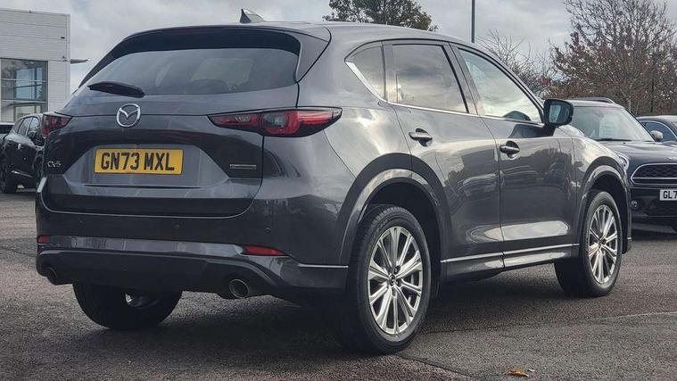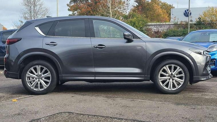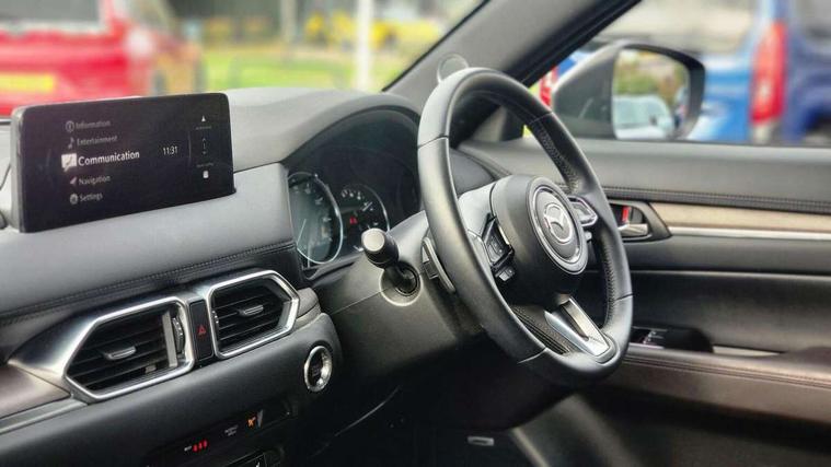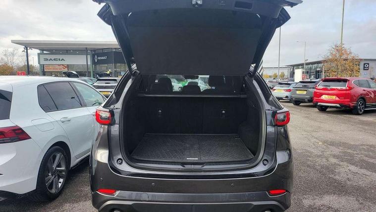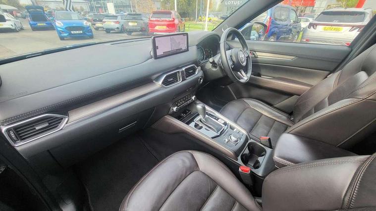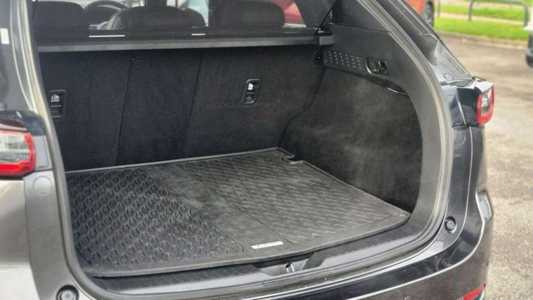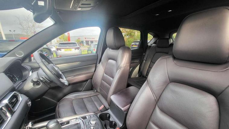 10.25" display with Mazda Connect infotainment, 360 degree surround camera, 7" colour TFT display, Advanced blind spot monitoring, Bluetooth connectivity with voice control, Collision prevention assist, Connected services, Cruising Traffic Support, Drive mode selector, Driver attention alert system, Electric power steering, Emergency stop signalling system, Engine start/stop button, Forward collision warning, Front and rear parking sensors, Integrated navigation system, Intelligent speed assist, Lane departure warning system, Lane keep assist, Power liftgate, Qi wireless phone charging, Radar cruise control with Stop and Go, Rear cross traffic alert, Service indicator, Traffic sign recognition (TSR), Trip computer, Windscreen projected colour active driving display (HUD) with memory, Wireless apple car play/android Auto, Cylinder Deactivation, i-stop, AM/FM radio, Bluetooth audio streaming, Bose premium sound system with 10 speakers, DAB Digital radio, Multimedia Commander including separate volume dial, Steering wheel mounted audio controls, Adaptive LED Headlights, Automatic headlights, Body colour door mirrors, Body colour roof spoiler, Body coloured front and rear lower bumper mouldings, Body coloured tire arch and side mouldings, Coming/leaving home lighting function, Door mirror integrated indicators, Dual large chrome tailpipes, Dusk sensitive headlamps, Electric front/rear windows with one touch auto up/down, Frameless auto dimming interior rear view mirror, Front grille in gloss black finish, Front grille in gloss black with black accent + chrome signature wing, Gloss black B and C pillars garnish, Gloss black front grille accent, Intermittent rear wash/wipe, LED auto levelling, LED daytime running lights, LED front fog lights, LED third brake light, Power folding and heated door mirrors, Power tilt/slide sunroof, Privacy glass (rear side windows only), Rain sensing front wipers, Real wood inlay dashboard panel, Rear side wing doors, Scuff plates, Shark fin antenna, Signature LED rear combination lights, Variable intermittent front wash/wipe, Vinyl with real wood inlay door trim panel, Windscreen wiper de-icer, 12v electrical power outlet, 3 seat bench in 2nd row, 3 stage heated front seats, 40:20:40 Karakuri fold-flat seat system, 6 way electric adjustable passenger seat, 8 way electric driver seat with lumbar support + memory, Black roof lining, Cargo room flat floor board with waterproof undertray, Driver seat power slide, recline and height adjustment, Driver, Front passenger and two rear grab handles with coat hooks, Driver/passenger front seatback pockets, Driver/passenger sunvisors + illuminated vanity mirrors (drivers with ticket holder), Dual zone climate control, Folding centre armrest with 2 cup holders, Front and rear door pockets, Front centre storage with two cupholders, Front passenger seat power slide, recline and height adjustment, Front seat ventilation, Heated outer rear seats, Heated steering wheel, Humidity sensor, Illuminated glovebox, Interior dome light with integral spotlight, ISOFIX child seat anchorage points attached on outer rear seats, Karakuri tonneau cover, Leather gear knob, Leather steering wheel with unique stitching and chrome centre bezel, Luggage compartment LED lighting, Luggage compartment power outlet, Nappa leather upholstery, Paddle shifts, Rear air vents, Rear headrests, Rear seat recline, Roof mounted sunglasses holder, Single front passenger seat, Three height adjustable head restraints, Tilt/height adjustable steering wheel, USB Connectivity (2x front Type-C, 2x rear Type-B), White interior LED illumination lighting, 3 point front seatbelts with pre-tensioners, 3 rear 3 point seatbelts, ABS, Advanced Smart City Brake Support - SCBS, Child locks on rear doors, Driver and front passenger side airbags, DSTC-Dynamic Stability and Traction Control, Dual front airbags, Electronic brake force distribution, Electronic parking brake with auto hold, ESP, Front and rear curtain airbags, Front passenger airbag deactivation, G-Vectoring control, Hill hold assist, Rear smart city brake support, Seatbelt reminder front and rear, Single stage passenger airbags, Smart brake support with forward obstruction warning, Tyre pressure monitoring system, Automatic door locking when moving off, Deadlock, Immobiliser, Power door locks, Remote central locking, Smart keyless entry, Thatcham Cat.1 alarm, Upper dashboard and door cards wood trim, 19" exclusive design bright alloy wheels, Tyre repair kit,