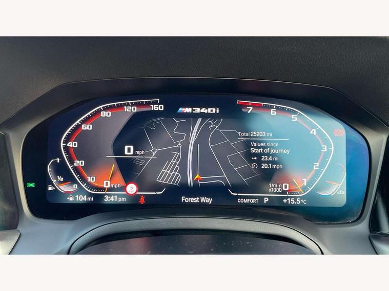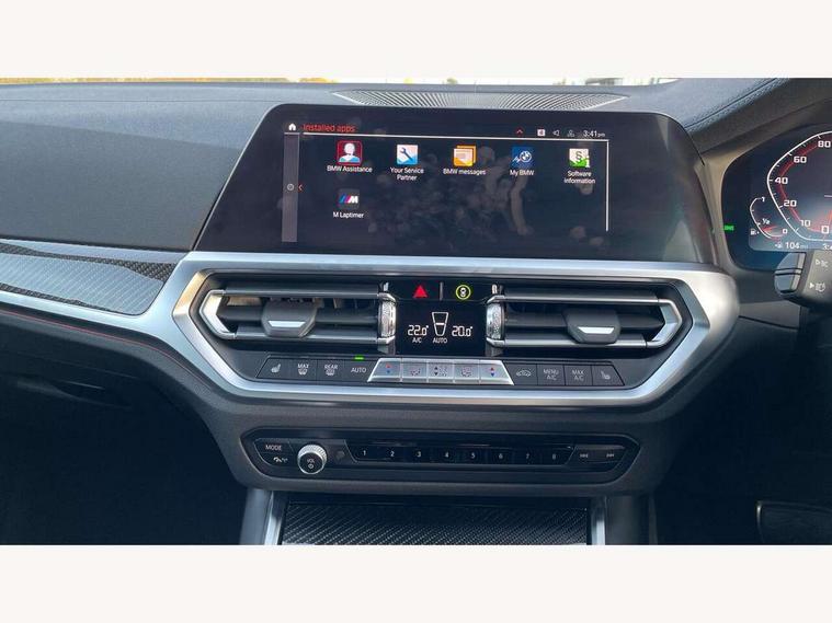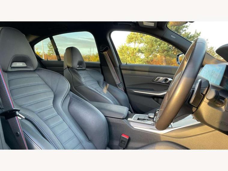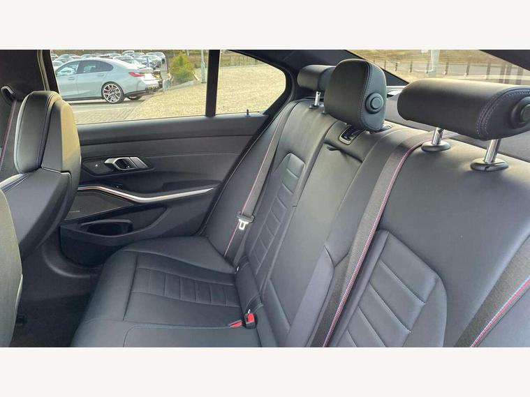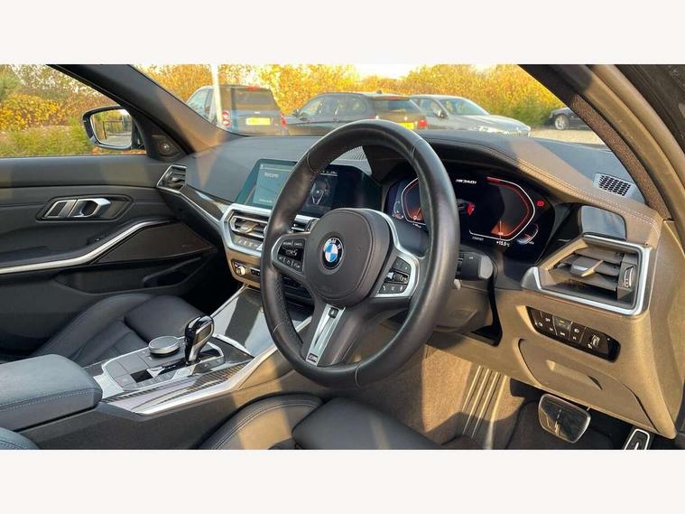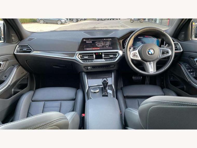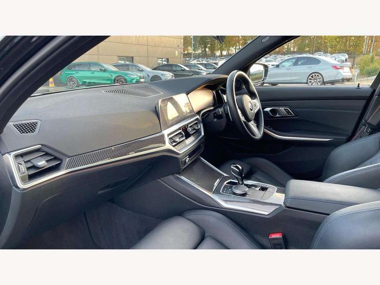 Active guard plus, Attentiveness assist, Bluetooth hands free facility with USB audio interface with audio streaming, BMW iDrive controller on centre console, BMW Live Cockpit Professional Nav with 12.3" instrument display + 10.25" display, Intelligent Voice Assist, BMW OS 7, HDD, 2USB, 4G LTE connect, BMW service history, BMW Teleservices, Brake pad wear indicator in front and rear, Check Control warning system for monitoring of lights and door/luggage compartment open warning, Condition based service, Cruise control with brake function + speed limiter, Electric power steering with Servotronic steering optimised at all speed ranges, Instrument cluster with speedometer with mph readout, tachometer, fuel gauge and oil temperature gauge, Integrated owners handbook, Oil sensor for level and grade, warning by check control system, On board computer - average speed+fuel consumption, service interval, clock/date, odometer/trip meter, outside temperature display and ice warning, Optimum shift indicator, Personal Profile - automatic lock when driving away selectable, Variable sport steering, 48V Mild hybrid technology, Adaptive M suspension, Balanced 50/50 weight distribution, Battery cut-out switch, Drive performance control - ECO PRO, comfort and sport modes, Larger capacity fuel tank, M Sport differential, Petrol Particulate Filter, Stroke dependent dampers, DAB tuner, Electronic service booklet, 2 x square exhaust tailpipes, Acoustic glazing, Active airstream chrome frame kidney grille with 8 high gloss black vertical slats, Automatic headlight beam throw control with load dependent regulating reaction, dynamic compensation of braking dive and acceleration squat, Black roof mouldings, Body colour door handles, Body colour front and rear bumpers, Body colour fuel filler flap, Dynamic brake lights, Electric windows - front and rear, with open/close fingertip control, anti-trap facility and comfort closing, Exterior mirrors - electrically folding with anti-dazzle, Fading support, Front and rear bumper system with replaceable deformation elements, Front black door sill finishers with BMW designation, Green tinted heat protection glazing, High gloss shadow line exterior trim, Interior rear view electrochromatic mirror with automatic anti dazzle function, LED daytime running lights, LED front fog lights, Lightweight engineering, M designation on front side panels, left and right, M Sport spoiler, Matt black exterior B pillar, Model designation on right side of tailgate, Rain sensor with automatic headlight activation, Shark fin antenna, Sun protection glass, Two part LED tailights in L-shape with components in smoked glass, brake light, LED turn indicator and rear fog light, Visible VIN plate, Welcome lights in interior and door handle area, Windscreen wipers with integrated washing jets, xDrive designation on left tailgate, 12V power socket in front storage compartment, 2 front cupholder in centre console with clamping elements and matt black inlay, 3 rear seats with non folding headrests with 3 point seat belts, 3 zone automatic air conditioning, 4 pieces lashing eyelets in luggage compartment, 40:20:40 split folding rear seat with loading system, Ambient lighting with welcome carpet light, Anthracite headlining, Armrest integrated in front and rear door trim + front centre console armrest, Backrest width adjustment, Centred top Luggage compartment lights, Four grab handles integrated in roof lining, Front and rear door exit lighting (left / right), Front and rear door pockets, Front and rear reading lights, Front and rear velour floor mats, Front head restraints, Heated front seats, Height adjustable mechanically and infinitely variable steering column, Illuminated armrest storage compartment, Illuminated glove compartment with separate small compartment, Interior lighting - front centre over interior mirror with soft light, rear centre and front and rear footwell lighting, M sport leather steering wheel, Make-up mirror lights, Rear centre armrest with 2 cupholders, Rear centre console with storage compartment and ventilation grille, Sunvisors with vanity mirrors and ticket pocket, Toolkit located in luggage compartment, Connected pack professional - 3 Series Saloon/Touring, M sport exterior styling pack - 3 Series Saloon/Touring, 2 tone horn, BMW emergency call, Brake energy regeneration, Braking pre-tensioning, Child proof locking system in rear door, Child seat ISOFIX attachment rear outer seats, Coasting in idle in ECO PRO mode, Crash sensor activating of airbags, Unlocking doors, hazard warning lights, interior light, safety battery terminal, Driver and front passenger side airbags, integrated in the door side seat backrest bolsters for all seat variants, Driver/Front Passenger airbags, Dry braking, Dynamic brake control, Dynamic stability control + (DSC+) - Anti-lock Braking System (ABS) with brake assist and cornering brake control + Automatic Stability Control (ASC), Dynamic Traction Control - DTC, Electric parking brake including automatic hold function and automatic release of the parking brake when driving off, Front passenger manual airbag deactivation, Head airbags for all 4 outer seats, Hill start assist, M sport seatbelt, Seat belt security check for driver and front passenger, Side impact protection, Three 3 point seat belts on all seats including front belt stopper, pyrotechnic belt tensioners and belt force limiters, Tyre pressure monitoring with three level warning strategy, Ventilated front and rear disc brakes, Warning triangle and first aid kit, Alarm system (Thatcham 1) with remote control and electronic engine immobiliser, Central locking switch for all doors, fuel filler cap and luggage compartment, Remote control with integrated key one button open/close vehicle and windows, sole opening of the luggage compartment lid and panic mode, Start/stop button with Comfort Go keyless engine start and auto Start/stop deactivation button, Vehicle key with M specific designation, 