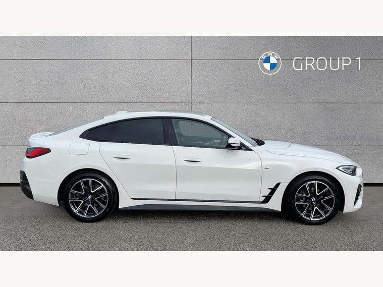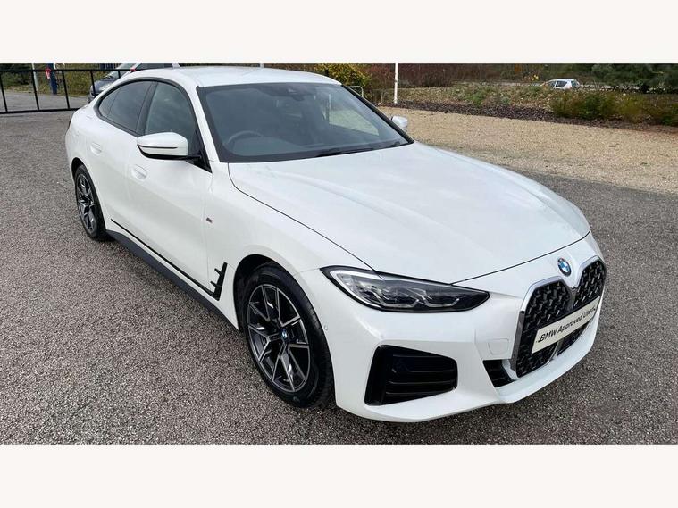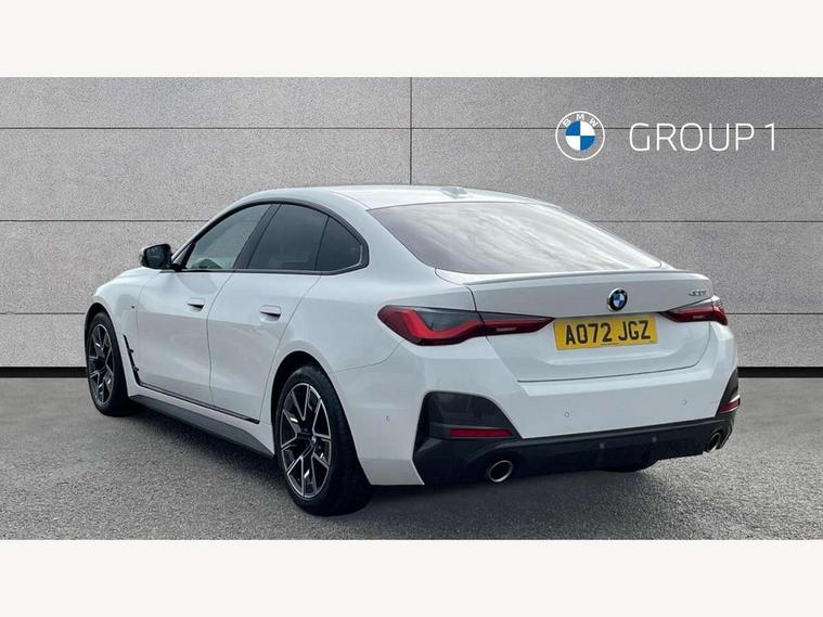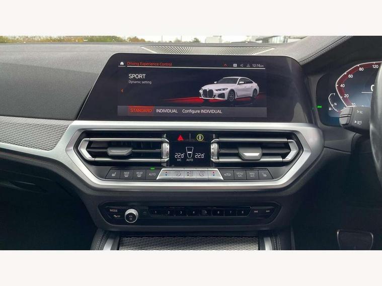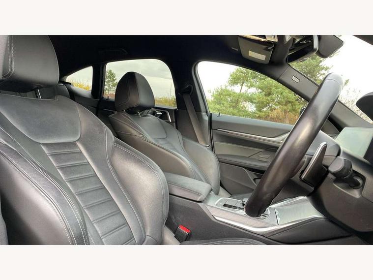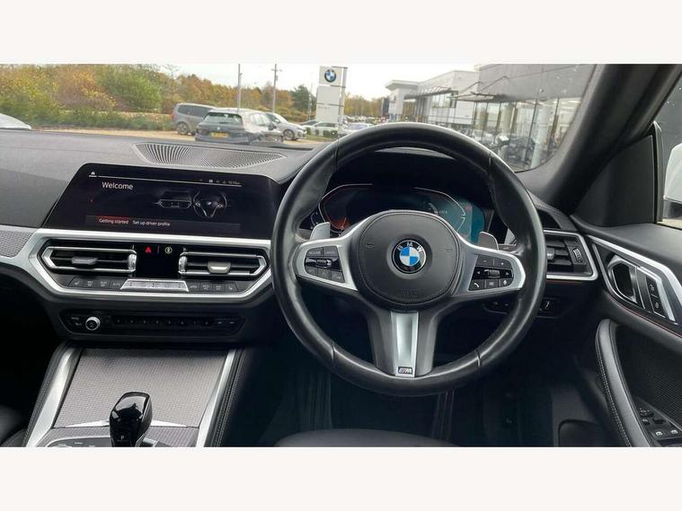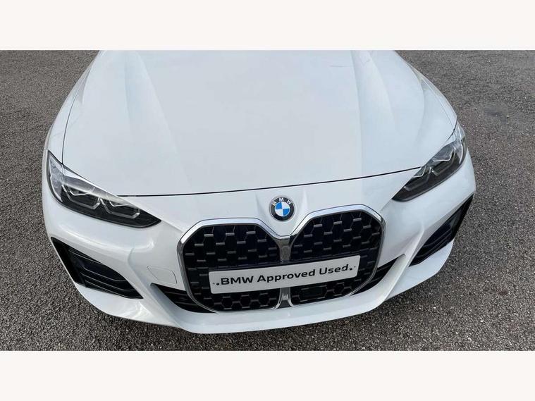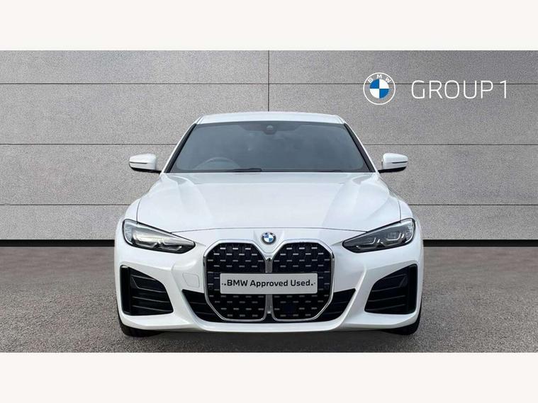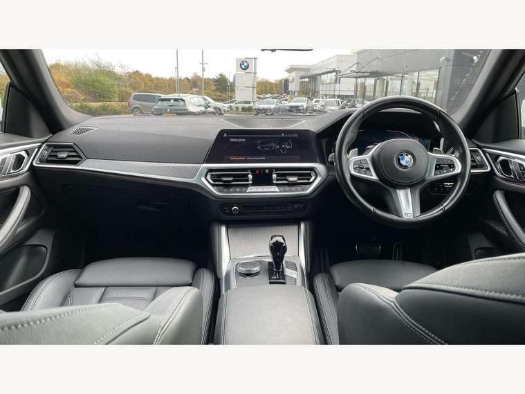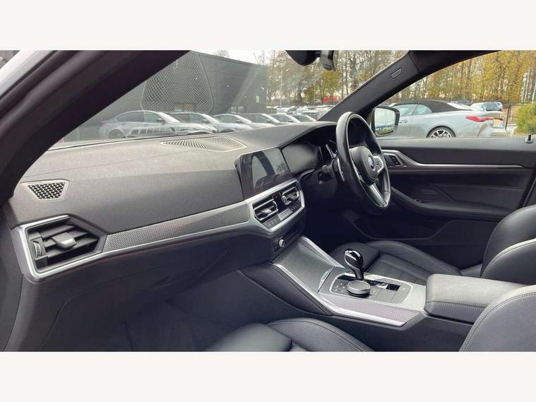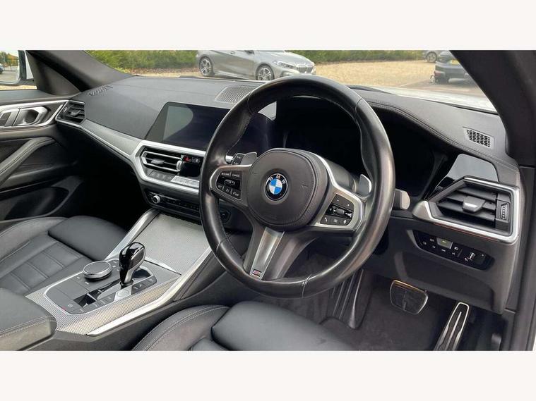 Active guard plus, Attentiveness assist, Auto start-stop, BMW ConnectedDrive online services, BMW iDrive controller on centre console, BMW Live Cockpit Professional Nav with 12.3" instrument display + 10.25" display, Intelligent Voice Assist, BMW OS 7, HDD, 2USB, 4G LTE connect, BMW service history, BMW Teleservices, Brake pad wear indicator in front and rear, Check Control warning system for monitoring of lights and door/luggage compartment open warning, Condition based service, Cruise control with brake assist, Electric bootlid, Electric power steering with Servotronic steering optimised at all speed ranges, Gearshift time display in manual mode, Instrument cluster with speedometer with mph readout, tachometer, fuel gauge and oil temperature gauge, Integrated owners handbook, Oil sensor for level and grade, warning by check control system, On board computer - average speed, fuel consumption, outside temp display with acoustic warning, clock/date, service interval, odometer/trip meter, Optimum shift indicator, Tailgate, Variable sport steering, 8 speed automatic steptronic transmission with gearshift paddles, Double VANOS, Drive performance control - ECO PRO, comfort and sport modes, High precision injection, Low centre of gravity, M sport suspension, Petrol Particulate Filter, Stroke dependent dampers, VALVETRONIC engine management, DAB tuner, Electronic service booklet, Acoustic glazing, Automatic headlight beam throw control with load dependent regulating reaction, dynamic compensation of braking dive and acceleration squat, Automatic windscreen wipers and automatic headlight, Automatically dimming electrochromatic rear view mirror, BMW emblem on engine compartment lid and tailgate, BMW kidney grille with mesh grille front side of the nuggets in matt aluminium and frame in chrome high gloss, Body colour fuel filler flap, Body colour M sport rear spoiler, Body colour roof fin, Brushed aluminium inserts in the front door sill finishers with BMW designation, Dynamic brake lights, Electric windows - front and rear, with open/close fingertip control, anti trap facility and comfort closing function all round, Exhaust tailpipe - split left and right, Exterior mirrors - electrically folding with anti-dazzle, Fading support, Follow me home headlights, Front and rear bumper system, Front apron plastic in body colour, Green tinted heat protection glazing, High gloss shadow line exterior trim, Illuminated bow type door handles in body colour drivers side with door lock, Interior rear view electrochromatic mirror with automatic anti dazzle function, LED daytime running lights, LED front fog lights, Licence plate panel integrated into front bumper and tailgate, Lightweight engineering, M designation on front side panels, left and right, Model designation on right side of tailgate, One piece front bumper cover including towing eye cover in body colour, Preparation for high beam assistant, Rear side wing doors, Rear wiper, Reversing light, Side frame decorative moulding black matt, Two part LED tailights in L-shape with components in smoked glass, brake light, LED turn indicator and rear fog light, Visible VIN plate, Welcome lights in interior and door handle area, Widened track and increased camber values for max transverse dynamics, agility and steering precision, Window recess cover black high gloss, Windscreen wipers with integrated heated washing jets, 12V power socket in front centre console, 2 front cupholder in centre console with clamping elements and matt black inlay, 3 rear headrests, 3 seat bench in 2nd row, 3 spoke M sport leather multifunction steering wheel, 3 zone automatic air conditioning, 4 pieces lashing eyelets in luggage compartment, 40:20:40 split folding rear seat and rear centre armrest with two cupholders, Ambient lighting with welcome carpet light, Anthracite headlining, Armrest integrated in front and rear door trim + front centre console armrest, Driver seat backrest width adjustment, Four grab handles integrated in roof lining, Front and rear door pockets, Front and rear footwell lights, Front and rear reading lights, Front headrests, Front sport seats, Heated driver and front passenger seats, Height adjustable mechanically and infinitely variable steering column, Illuminated armrest storage compartment, Illuminated glove compartment with separate small compartment, Luggage compartment light, Make-up mirror lights, Single front passenger seat, Storage compartment in rear centre console, Sunvisors with vanity mirrors and ticket pocket, Toolkit located in luggage compartment, Velour front floor mats, Vernasca leather upholstery, Connected professional package - 4 Series, M sport exterior styling pack - 4 Series, Park assist pack - 4 Series, 3 point seatbelts on all seats, Battery safety cut-off, BMW emergency call, Brake energy regeneration, Braking pre-tensioning, Child proof locking system in rear door, Child seat ISOFIX attachment for the two outer rear seats, Coasting in idle in ECO PRO mode, Cornering brake control (CBC), Crash sensor activating of airbags, Unlocking doors, hazard warning lights, interior light, safety battery terminal, Driver and front passenger side airbags, integrated in the door side seat backrest bolsters for all seat variants, Driver/Front Passenger airbags, Dry braking, Dynamic brake control, Dynamic stability control + (DSC+) - Anti-lock Braking System (ABS) with brake assist and cornering brake control + Automatic Stability Control (ASC), Dynamic Traction Control - DTC, Electric parking brake including automatic hold function and automatic release of the parking brake when driving off, Electronic differential lock control (EDLC), Front and rear ventilated brake disc, Front passenger manual airbag deactivation, Head airbags for all 4 outer seats, Hill start assistant, Seat belt security check for driver and front passenger, Seat belt with belt stopper, pyrotechnic belt tensioners and belt force limiters, Side impact protection, Tyre pressure 