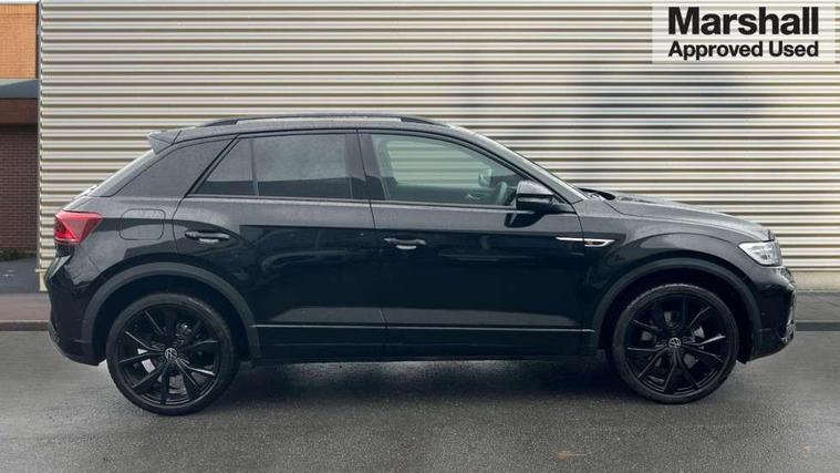 10.25" Digital cockpit pro, Advanced driver attention and drowsiness monitor, Emergency call service, Lane keeping system Lane Assist, Mobile phone interface, Modified key software - reduce switch off time for key status change to Long no motion, Online services, Park assist including front and rear parking sensors, Power assisted speed sensitive steering, Rear view camera, Service interval indicator, Tailgate/trunk lid release from outside, Think blue trainer driver tips and journey analysis, Warning sound and light for front seatbelts unfastened, Wireless app connect, Battery regeneration during braking, Start/stop function with battery regeneration, DAB Digital radio, Diversity antenna for FM reception, Music playback - MP3, WMA and AAC files, Premium USB cable in choice of either Apple or Android smartphone compatibility, SD card slot, Simultaneous pairing of 2 compatible mobile devices, Title and cover art display, We Connect and We Connect Plus functionality, Advanced dynamic light assist for LED matrix headlights, Auto dimming interior rear view mirror, Automatic hazard lights activation under emergency braking, Black roof rails, Dynamic cornering light, Dynamic headlight range control with self adjusting whilst driving, Electrically adjustable and heated door mirrors, Extended roof spoiler, Exterior ambient lighting, Exterior mirrors aspherical on driver side, convex on front passenger side, External USB type C socket and charging sockets, Front windscreen wiper with intermittent wipe and 4 position delay, Heated rear window, Illuminated front grille, IQ LED matrix headlights, LED 3rd brake light, LED rear number plate lights, LED rear tail lights with dynamic turn signal, LED separate daytime running light, Light mode for poor weather, rain, fog or snow, Power windows with comfort operation and circuit breaker, Privacy glass for rear side windows and rear window, R-Line design body coloured bumpers, Rain sensor, Rear exhaust tailpipe, Rear fog light on one side and reversing lights on both sides, Rear side wing doors, Rear wash/wipe with intermittent wipe setting, Remote electrically foldable door mirrors, puddle lights and reverse activated passenger's door mirror, Tilting and sliding panoramic sunroof with rear panoramic sunroof, 12V power socket in centre console, 3 rear head restraints, 3 seat bench in 2nd row, 4 load lashing points in luggage compartment, Air care climatronic air conditoning system with active combination filter and 2-zone temperature control, Chrome plated radiator grille inserts, air vent surrounds and light switch surrounds, Door and side trim panel with leatherette insert, Front + rear carpet mats, Front centre armrest, Front cupholders x 2, Front footwell illumination, Front reading light, Front scuff plates with R Line logo, Front seat back storage pockets, Glove compartment door with light, Instrument lighting, white adjustable panel illumination, Interior ambient lighting and surround lighting, Interior light delay, Isofix child seat preparation, Leather gearshift handle, Load-through provision with cup holder when folded down ('Unsplit rear seat bench, split folding backrest, with centre armrest), Luggage compartment lighting, Single front passenger seat, Stainless steel pedals, Storage compartment in left and right luggage area, Storage compartment in rear doors, Storage compartments in driver and front passenger doors, Sunvisors with illuminated vanity mirrors, Variable boot floor, height adjustable and removable, Black design pack - T-Roc black edition plus, Easy open package with safelock - T-Roc, 3 point height adj front seatbelts + pretensioners, 3 point seatbelts in outer rear with ECE label, ABS, Child locks on rear doors, City emergency braking and pedestrian monitoring, Driver and front passenger airbag with front passenger airbag deactivation, Driver and front passenger safety-optimised head restraints, Drivers seatbelt reminder, Electronic parking brake, Electronic Stability Control (ESC) inc EDL (Electronic Differential Lock) and ASR (Traction Control), Front and rear passengers curtain airbag system including front side airbags, Hill start assist, Predictive pedestrian protection, Rear disc brakes, Two tone horn, Tyre pressure loss indicator, Volkswagen roadside assistance, Keyless locking and starting system keyless access with safelock, Gloss deep iron dash trim, 19" Misano alloy wheels with low rolling resistance and anti theft wheel bolts, Tool kit, Trims for alloy wheels, Tyre mobility kit including compressor and sealing foam,