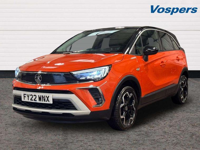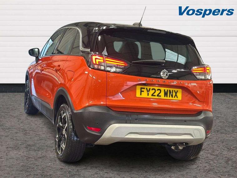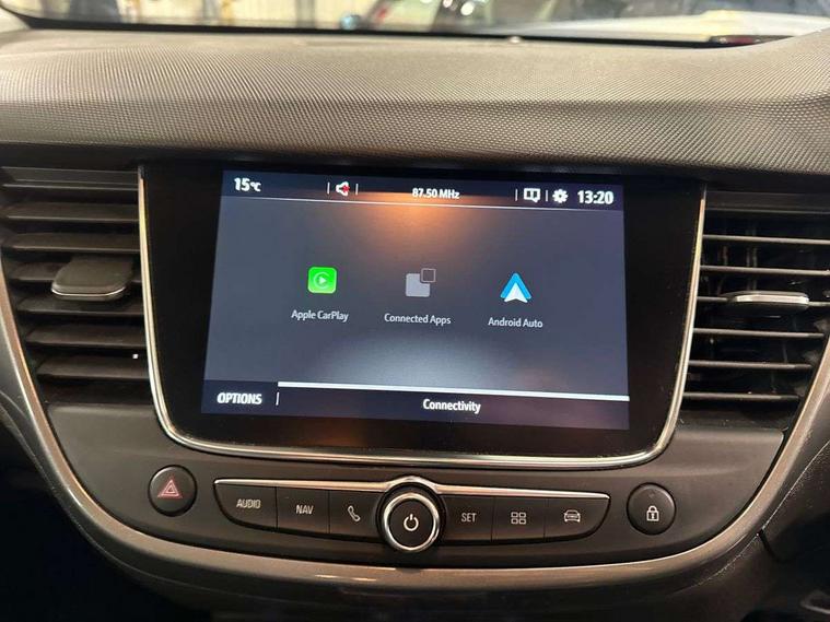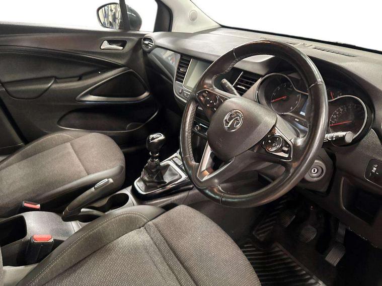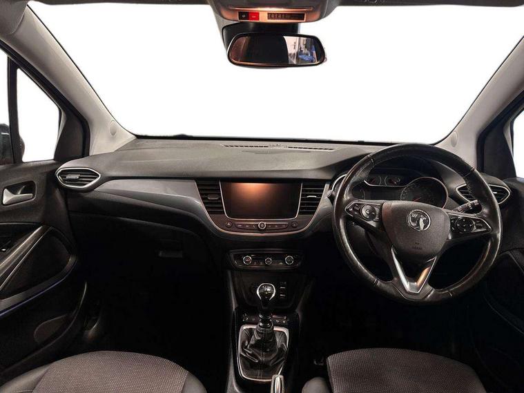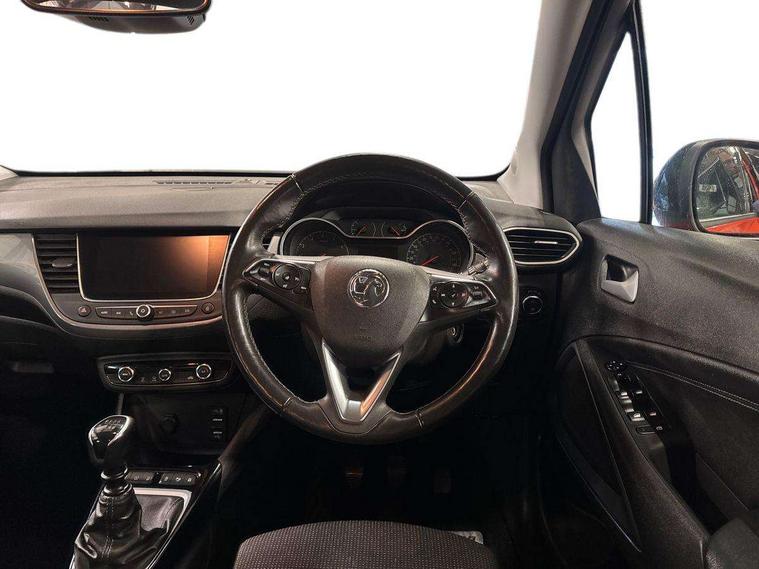 3.5" monochrome instrument colour display, Audible lights on warning, Bluetooth connectivity, Cruise control + speed limiter, Digital clock with automatic RDS time adjustment, Driver drowsiness alert system, E-call, Forward collision warning, Instrumentation - Speedometer, rev counter, low fuel gauge warning light + water temperature gauge warning light, shift up/down indicate light, Lane departure warning system, Multi function trip computer, Multimedia sat nav pro with 8" colour touchscreen, AM/FM, Bluetooth streaming, Bluetooth mobile phone portal, apple CarPlay/Android Auto + 6 speakers, Outside temperature display with ice warning, Refridgerant low indicator, Service interval indicator, Speed sensitive power steering, Speed sign recognition, Vauxhall connect, Front wheel drive, 2 x USB connections, DAB Digital radio, Steering wheel mounted audio/phone/cruise controls, 2 speed wipers/wash wipe/intermittent wipe, Alloy effect front and rear skid plates, Automatic anti dazzle rear view mirror, Automatic headlamp levelling system, Automatic high beam control with cornering light, Automatic lighting control, Black door mirror housings, Black radiator grille with chrome bar, Black roof, Body colour door handles, Body colour front and rear bumpers, Chrome effect upper window moulding, Dark tinted rear side windows + tailgate window, Electrically adjustable and heated door mirrors, Front power windows with express up/down and anti-pinch function, Hazard warning lights, Headlamps for left side traffic, Heated rear window, Integrated tailgate spoiler, Intermittent rear wash/wipe, LED daytime running lights, LED front fog lights, LED Headlights, LED side repeat indicators, LED tail lights, Rain sensitive windscreen wipers, Rear fog lights, Rear power windows with express up/down and anti-pinch function, Rear side wing doors, Rear wing door, Reversing light, Side window demist vents, Solar heat absorbing windscreen and windows, Third brake light, Welcome lighting, Windscreen demist vents, 12v power outlet - front, 2 way adjustable front passenger seat, 2 way front passive headrests, 3 rear seats, 3 spoke flat bottomed leather covered steering wheel with bezel decoration, 4 way electrically adjustable lumbar support for drivers seat, 60/40 split folding rear seat backrest, Adjustable rear seat backrest, Air recirculation facility, Ambient lighting, Anti submarining ramps in front seats, Cabin particulate filter - removes dust, airborne particles and pollen, Centre console, Driver and front passenger illuminated vanity mirrors with flip up covers, Driver's seat armrest, Drivers ergonomic active seat with 8 way manual adjustable driver seat , height, reach and backrest, Dual zone electronic climate control, Fade up/fade down on interior lighting, Four adjustable facia vents, Front door pockets with bottle holders, Front map reading lights, Fully carpeted luggage area, Glovebox with lid, Height adjustable front/rear head restraints, Illuminated load area, Interior courtesy light operated by all doors, Isofix system on outer rear seats, Jet black premium leather side bolsters, Luggage compartment cover, Multi-speed fan with Illuminated control, Open storage compartment in centre console, Passenger assist handles, Reach + rake adjustable steering column, Rear centre headrest, Rear door pockets with bottle holders, Rear floor ventilation ducts, Rear reading lights, Satin chrome effect bezel on steering wheel, Seat cushion extension, Single front passenger seat, Sparkle cloth/vinyl upholstery, Storage pockets on front seat backs, Two drinks holders in centre console, Rear view camera plus pack - Crossland, Winter pack - Crossland, 3x3 point rear seatbelts, 6 airbags - Driver and co-driver front, front side, head curtain roof airbags, front and rear row coverage airbags, ABS, Automatic emergency braking with pedestrian detection, Child locks on rear doors, CSC - Cornering stability control, Deactivate switch for side impact airbags, Deformation zones front and rear, Dual seatbelt pretensioners on front seats, EBD - Electronic brakeforce distribution, Energy absorbing steering column, Engine drag torque control, ESP + traction control, Front and rear seatbelt unfastened audible warning and warning light, Front side impact airbag, Hill start assist, Hydraulic Brake Assist (HBA), Hydraulic brake boost, Inertia reel lap and diagonal seatbelts for all seats, Passenger airbag deactivate switch, Pedestrian detection, Rear seat belt pretensioners, Reinforced passenger safety cell, Seatbelt load limiter, Side impact protection beams, Smart seatbelt reminder for front and rear seats, Tyre pressure monitoring system, 2 remote folding keys, Electronically protected audio equipment, Engine immobiliser, Locking wheel nuts, Remote central deadlocking, Remote control central locking activation switch on driver door, Remote control central locking operates on doors, tailgate and fuel filler flap, Remote security alarm system, Visible vehicle identification number, Black facia with silver trim insert, Black trim inserts on front doors, Cluster black with chrome rings, 17" five twin spoke diamond bi colour alloy wheels,