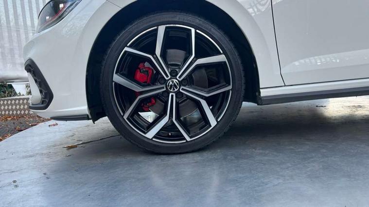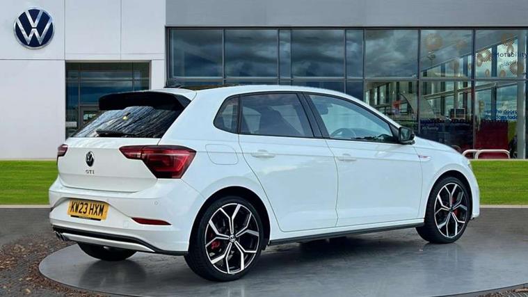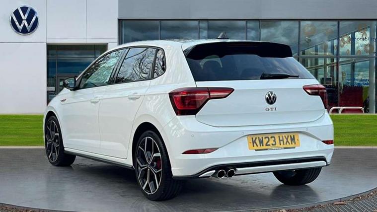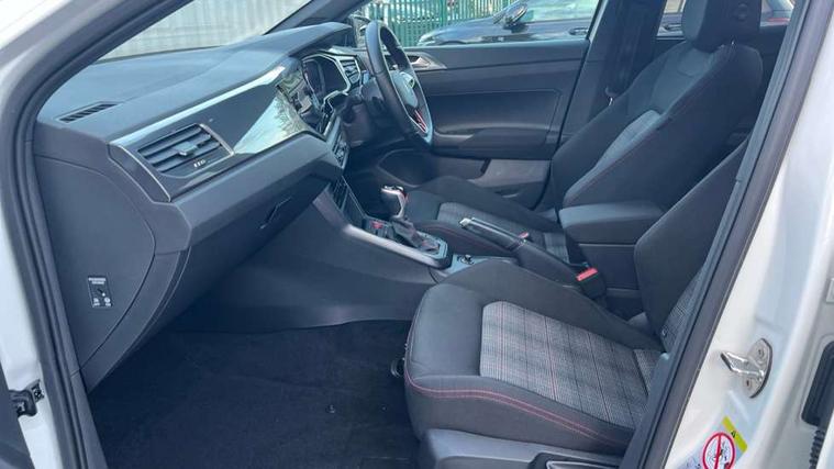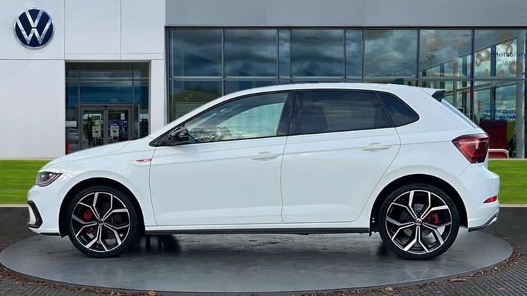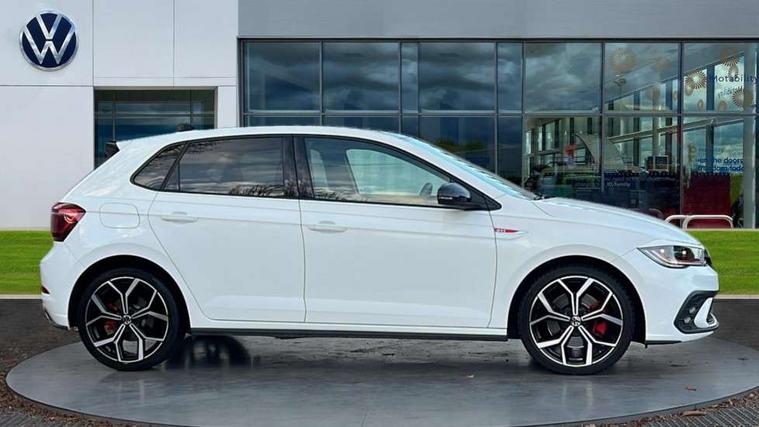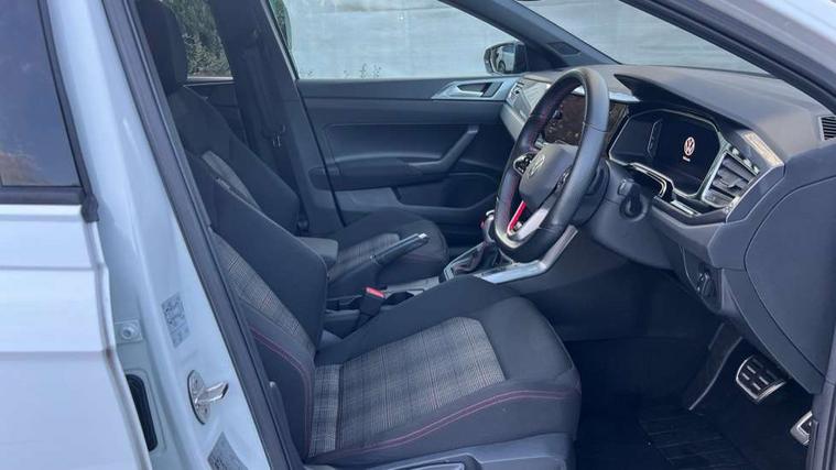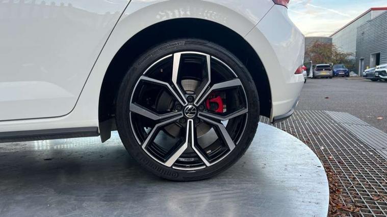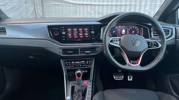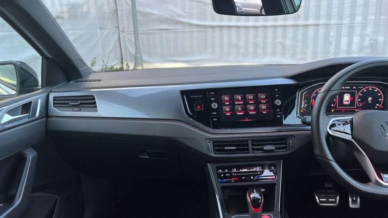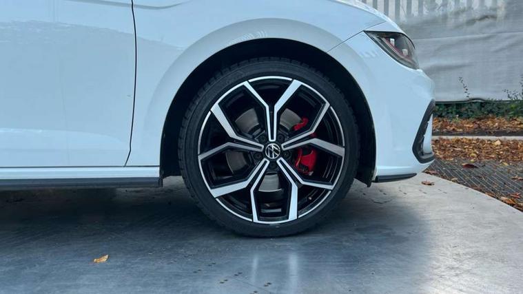 Adaptive cruise control with follow-to-stop and speed limiter, Bluetooth mobile phone interface, Digital Cockpit Pro with 10.25" Display, Driver alert system, Dynamic road sign display, Eco mode, Emergency call service, Power assisted speed sensitive steering, Preparation for We connect and We connect plus, Speedo and rev counter, electronic odometer, trip, service interval display and fuel gauge, Travel Assist - Lane keeping system and traffic jam assist, Travel assist including emergency assist, Trip computer, Warning signal and warning light for front and rear seatbelts not fastened, Washer fluid level indicator, Wireless app connect, Adaptive chassis control, Front wheel drive, Heavy duty rear axle, Rear shock absorpion sports version, Sports select suspension lowered by 15mm, Start-stop system with battery regeneration (recuperation - energy recovery during braking), DAB Digital radio, Diversity antenna for FM reception, Front and rear 6 speakers, Body colour bumpers, Body colour door handles, Electric front windows, Front scuff plates in aluminium with GTI logo, Heat insulating darkened glass in side and rear windows, Heat insulating glass windscreen, Power folding adjustable/heated exterior mirrors and front passenger exterior mirror lowering function, Rain sensor, Rear electric windows, Rear fog light, Rear side wing doors, Rear windscreen washer and wiper with interval delay, Sport bumpers with air intakes with honeycomb structure, Third brake light, Twin chrome exhaust tailpipes, 12V power socket in centre console, 2 USB-C ports in the front, 2 USB-C charging sockets on the center console in the rear, 3 rear head restraints, 60/40 split folding rear seat and rear seat bench not split, Air care climatronic air conditoning system with active combination filter and 2-zone temperature control, Black roof lining, Chrome plated radiator grille inserts, air vent surrounds and light switch surrounds, Door and side trim panel, Driver and front passenger seat height adjustment, Driver/passenger sunvisors with illuminated vanity mirrors, Front + rear carpet mats in recycled material, Front centre armrest, Front footwell illumination, Front seat backrest storage pockets, GTI sports gearshift knob in aluminium leather, Handbrake lever handle in leather, Headliner in recycled material, Isofix child seat preparation easy-fit (for two outer rear seats, and front passenger seat) compatible with I-size, LED interior light with switch off delay and dimmer, 2 reading lights front and rear, Luggage compartment cover, Luggage compartment floor, Luggage compartment lighting, Single front passenger seat, Stainless steel pedals, Standard pedal cluster, Three spoke leather wrapped multifunction sports steering wheel with shifting paddles, IQ LED matrix headlights pack - Polo, Light and sight pack - Polo GTI, 3 point height adj front seatbelts + pretensioners, 3x3 point rear seatbelts, ABS, Driver and front passenger airbag with front passenger airbag deactivation, Drivers and front passengers safety optimised head restraints, ESC (Electronic stability control) + EDL (Electronic Differntial lock) and ASR (Traction control), Extended and predictive pedestrian/ cyclist protection, Front and rear disc brakes with red brake calipers, Front curtain and side airbags with center airbag, Hill hold control, Manual child lock in rear doors, Two tone horn, Tyre pressure loss indicator, Alarm with interior protection, Anti-theft alarm system with interior monitoring, backup horn, and towing protection, Anti-theft wheel bolts, Electronic engine immobiliser, Chrome applications on rotary light, mirror adjustment, window regulator switches, outlet with frame in black, Low rolling resistance tyres,