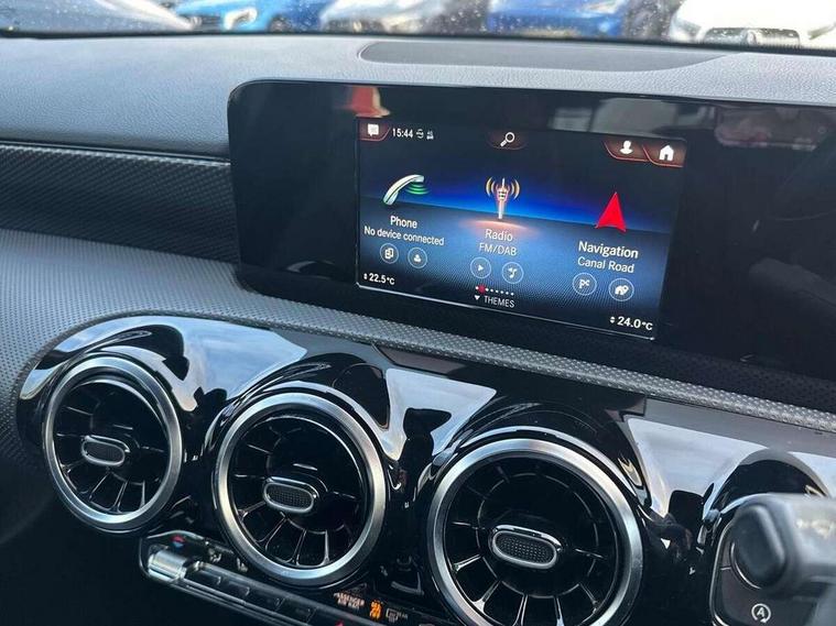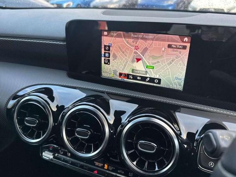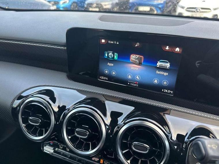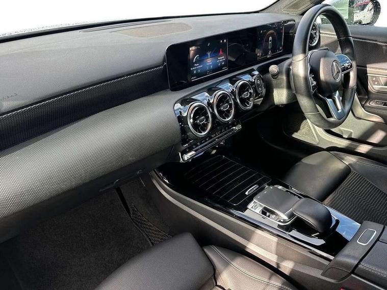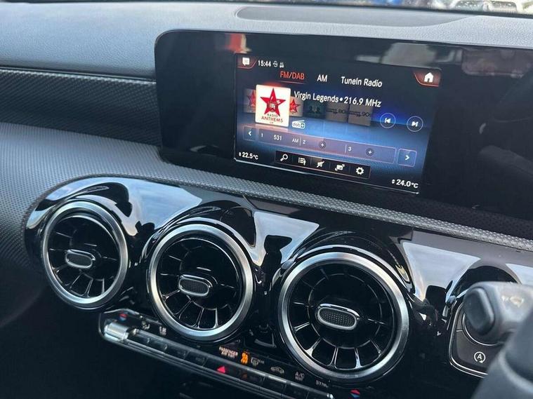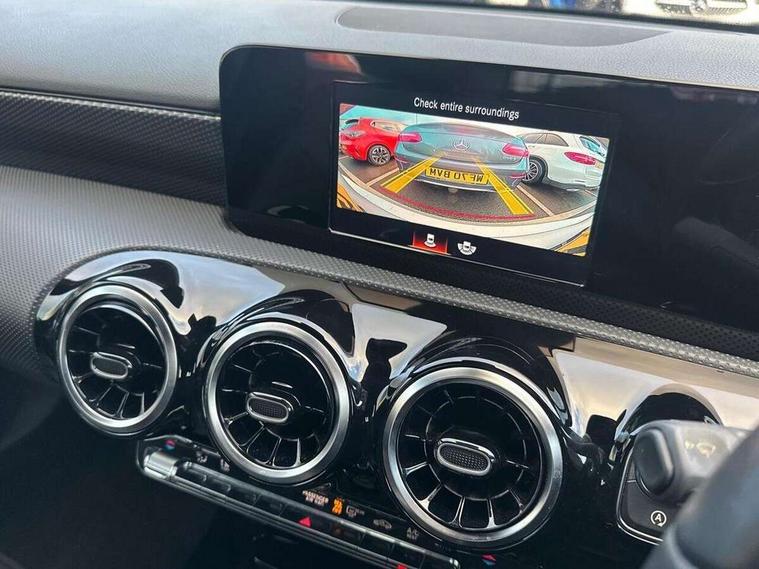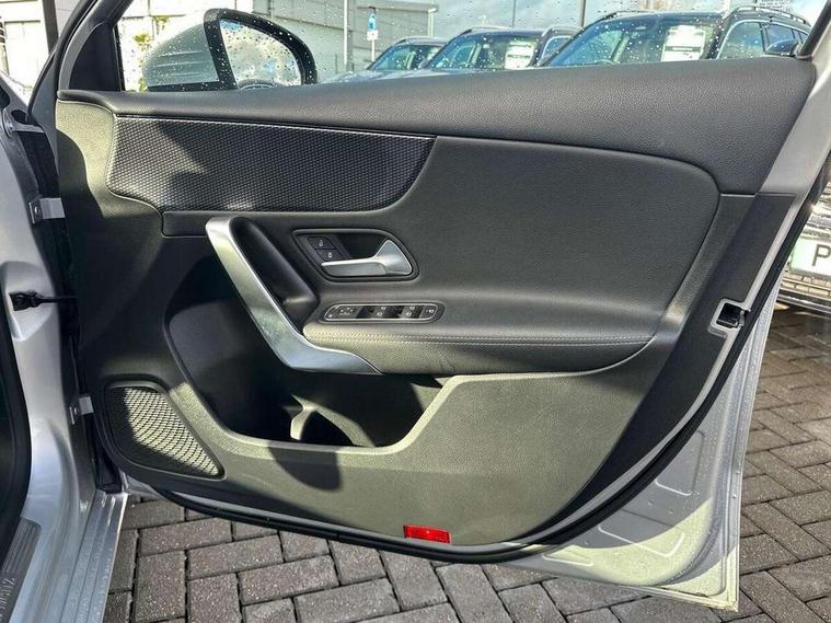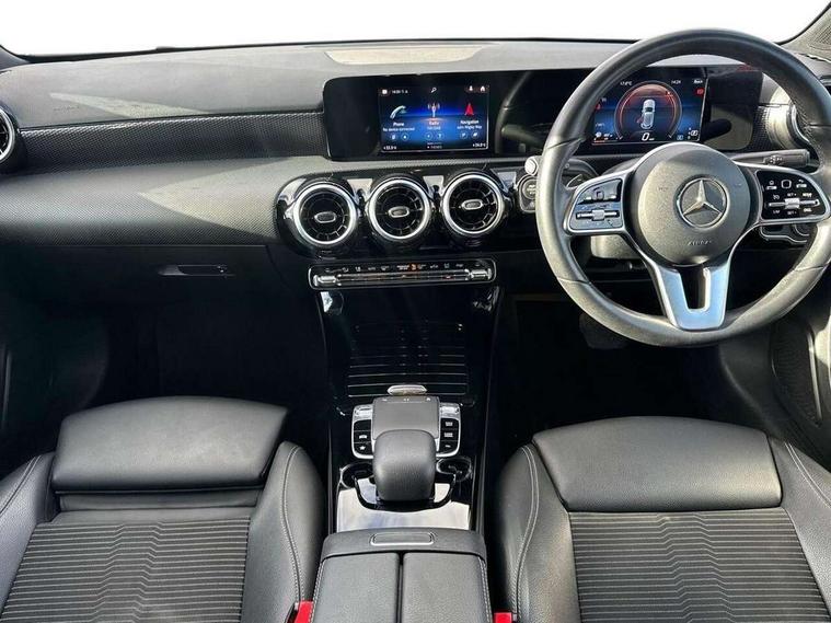 180 degree rear view camera with parking guidelines, 7" colour screen in instrument panel, 7" touchscreen media display, Active lane keep assist, Attention assist, Brake pad wear indicator warning light, Cruise control + speed limiter, Direct steering, Direction indicators with lane change function, DYNAMIC SELECT with a choice of driving modes (ECO, Comfort, Sport, Sport+ and Individual), Fluid level warning indicator for fuel, oil, coolant and washer fluid, Hard-disk navigation, Lamp failure indicator, Mercedes me connect including emergency call system, accident recovery, breakdown and maintenance management, Outside temperature gauge, Radio aerial integrated into roof spoiler, Service indicator (ASSYST), Speed sensitive power steering, Stop/start system, Trip computer, Voice activation, Lowered comfort suspension, DAB Digital radio, Dual bluetooth interface, 2 USB ports (type C), MBUX multimedia system with DAB digital radio and touchpad including satellite navigation, Adaptive brake lights, Blue tinted glass, Body colour bumpers, Body colour door handles, Body colour side skirt, Body coloured door mirrors, Chrome beltline trim, Chrome weather strip, Diamond radiator grille with black pins with one louvre in silver + chrome insert, Electric adjustable and heated door mirrors with integrated LED side indicators, Electric front windows, Electric rear windows, Exhaust system - Twin trapezoidal tailpipes in polished stainless steel, Headlamp assist automatic headlamp activation, Heated glass rear windscreen + timer control, LED high performance headlamps with integrated LED daytime running lights, LED tail lamp, LED third brake light, Rain sensor windscreen wipers, Rear fog lights, Rear wiper, 12V socket, 3 Spoke leather multi function steering wheel, 40:20:40 split folding rear seats, Air vents surround and cruciform nozzle in silver chrome, Artico man-made leather/Fleron fabric upholstery, Auto Mercedes-Benz child seat recognition sensor, Black roof lining, Controller on centre console with chrome surround, Cup holder and stowage compartment lighting, Floor mats, Front centre armrest with storage compartment, Front comfort seats with adjustable head restraints, Front door sills with Mercedes Benz lettering, Front doors with ambient and signal light, Front footwell lights, Front reading lamps, Front seat backs luggage nets, Front seat cushion length adjustment, Front signal exit lamp, Front vanity lights, Gearshift paddles on steering wheel, Handle recess/closing light, Height/reach adjustable steering column, Illuminated glovebox, ISOFIX Child seat top tethers and anchor fixings, Load securing rings in luggage compartment, Luggage compartment cover, Manual height adjustable front seats, Oddments tray lighting, Rear head restraints, Rear Reading Lamps, Seat occupancy sensor for front passenger seat, Storage compartment under load area floor, Sunvisors with illuminated vanity mirrors, Touchpad, Touchpad illumination, Twin front cupholders, Two zone thermotronic luxury automatic climate control, Seat comfort pack - A Class, 3 rear 3 point seatbelts, ABS with Brake Assist, Active bonnet, Active brake assist includes forward collision warning system with autonomous braking, Adaptive brake assist with hold function and hill start assist, Black seatbelts, Childproof locks manually operated for rear doors and electrically operated for rear power windows, Crash responsive emergency lighting, Driver and passenger head and side airbags, Drivers knee airbag, Dual stage driver/passenger airbags, Electronic parking brake, ESP curve dynamic assist, ESP with ASR, Front and rear seatbelt reminder, Tyre pressure monitoring system, Warning triangle and first aid kit, Window airbags, Alarm system/interior protection/immobiliser, Keyless Go, Remote central locking and crash sensor with emergency opening function, Dark carbon fibre interior trim, 17" 10 spoke light alloy wheels painted in vanadium silver, Tirefit sealant kit,