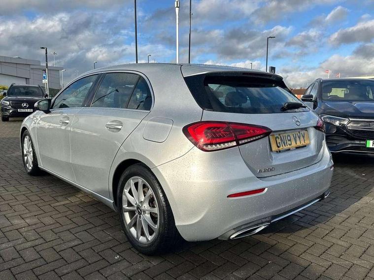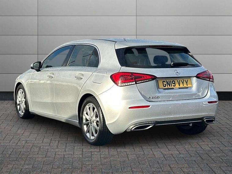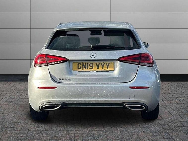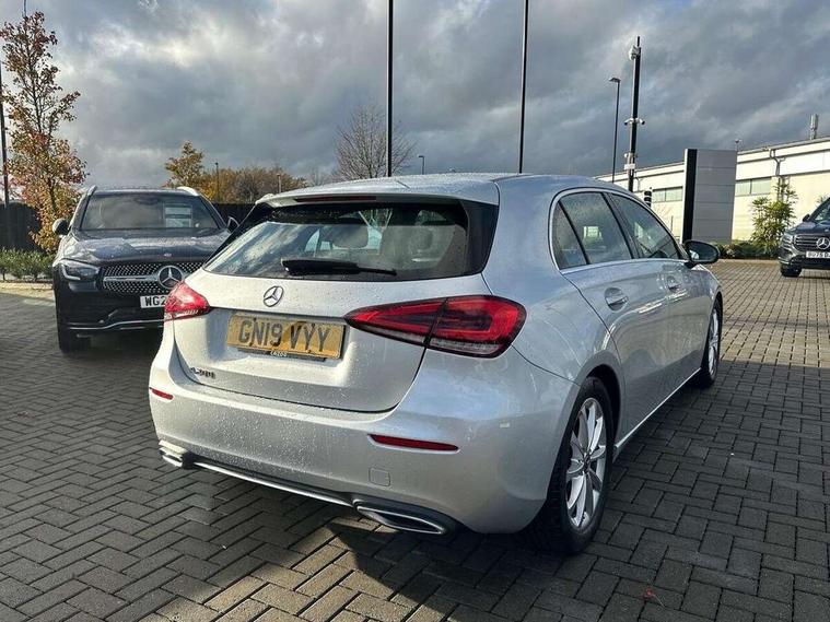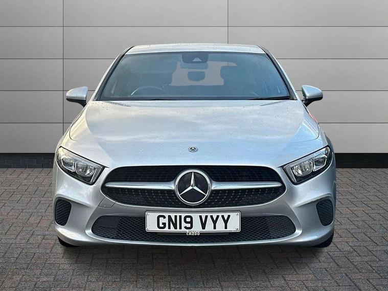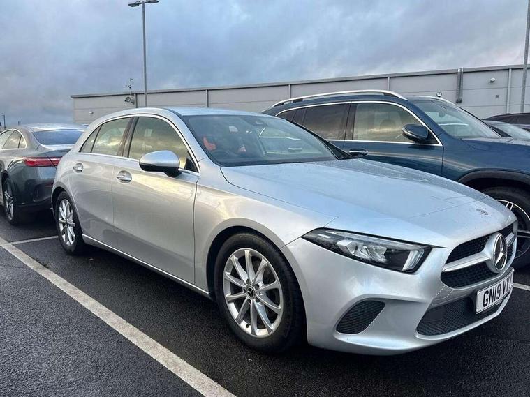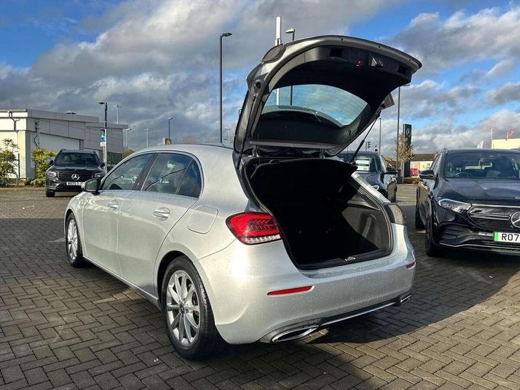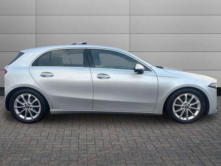 180 degree rear view camera with parking guidelines, 7" colour screen in instrument panel, 7" touchscreen media display, Active lane keep assist, Attention assist, Brake pad wear indicator warning light, Cruise control + speed limiter, Direct steering, Direction indicators with lane change function, DYNAMIC SELECT with a choice of driving modes (ECO, Comfort, Sport, Sport+ and Individual), Fluid level warning indicator for fuel, oil, coolant and washer fluid, Hard-disk navigation, Lamp failure indicator, Mercedes me connect including emergency call system, accident recovery, breakdown and maintenance management, Outside temperature gauge, Radio aerial integrated into roof spoiler, Service indicator (ASSYST), Speed sensitive power steering, Stop/start system, Trip computer, Voice activation, Lowered comfort suspension, DAB Digital radio, Dual bluetooth interface, 2 USB ports (type C), MBUX multimedia system with DAB digital radio and touchpad including satellite navigation, Adaptive brake lights, Blue tinted glass, Body colour bumpers, Body colour door handles, Body colour side skirt, Body coloured door mirrors, Chrome beltline trim, Chrome weather strip, Diamond radiator grille with black pins with one louvre in silver + chrome insert, Electric adjustable and heated door mirrors with integrated LED side indicators, Electric front windows, Electric rear windows, Exhaust system - Twin trapezoidal tailpipes in polished stainless steel, Headlamp assist automatic headlamp activation, Heated glass rear windscreen + timer control, LED high performance headlamps with integrated LED daytime running lights, LED tail lamp, LED third brake light, Rain sensor windscreen wipers, Rear fog lights, Rear wiper, 12V socket, 3 Spoke leather multi function steering wheel, 40:20:40 split folding rear seats, Air vents surround and cruciform nozzle in silver chrome, Artico man-made leather/Fleron fabric upholstery, Auto Mercedes-Benz child seat recognition sensor, Black roof lining, Controller on centre console with chrome surround, Cup holder and stowage compartment lighting, Floor mats, Front centre armrest with storage compartment, Front comfort seats with adjustable head restraints, Front door sills with Mercedes Benz lettering, Front doors with ambient and signal light, Front footwell lights, Front reading lamps, Front seat backs luggage nets, Front seat cushion length adjustment, Front signal exit lamp, Front vanity lights, Gearshift paddles on steering wheel, Handle recess/closing light, Height/reach adjustable steering column, Illuminated glovebox, ISOFIX Child seat top tethers and anchor fixings, Load securing rings in luggage compartment, Luggage compartment cover, Manual height adjustable front seats, Oddments tray lighting, Rear head restraints, Rear Reading Lamps, Seat occupancy sensor for front passenger seat, Storage compartment under load area floor, Sunvisors with illuminated vanity mirrors, Touchpad, Touchpad illumination, Twin front cupholders, Two zone thermotronic luxury automatic climate control, Seat comfort pack - A Class, 3 rear 3 point seatbelts, ABS with Brake Assist, Active bonnet, Active brake assist includes forward collision warning system with autonomous braking, Adaptive brake assist with hold function and hill start assist, Black seatbelts, Childproof locks manually operated for rear doors and electrically operated for rear power windows, Crash responsive emergency lighting, Driver and passenger head and side airbags, Drivers knee airbag, Dual stage driver/passenger airbags, Electronic parking brake, ESP curve dynamic assist, ESP with ASR, Front and rear seatbelt reminder, Tyre pressure monitoring system, Warning triangle and first aid kit, Window airbags, Alarm system/interior protection/immobiliser, Keyless Go, Remote central locking and crash sensor with emergency opening function, Dark carbon fibre interior trim, 17" 10 spoke light alloy wheels painted in vanadium silver, Tirefit sealant kit,