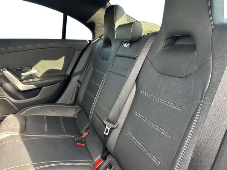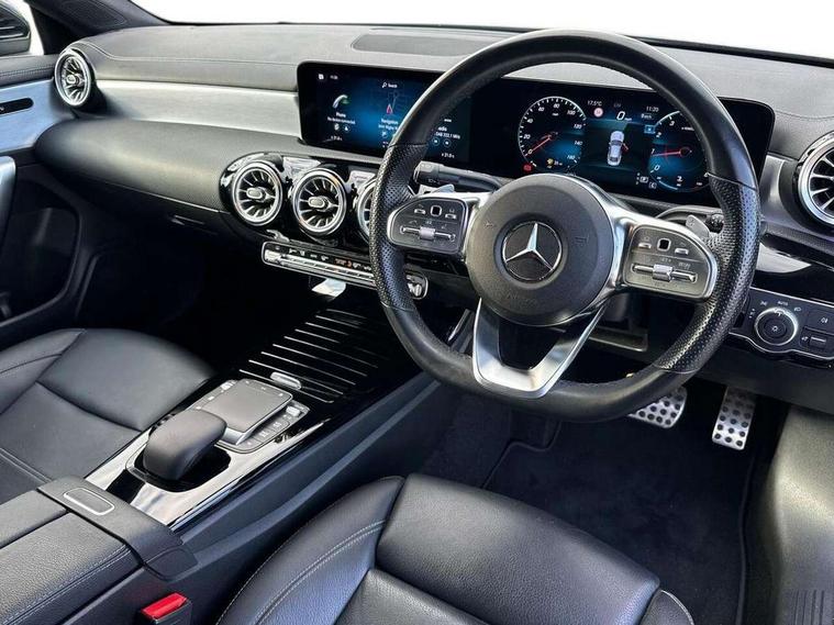 10.25 inch Instrument display with digital cockpit, 10.25 inch touchscreen central media display, Attention assist - Monitors steering behaviour and long journey fatigue, Bluetooth connection, Car wash mode, DYNAMIC SELECT with a choice of driving modes (ECO, Comfort, Sport and Individual), ECO start/stop function, Fluid level warning indicator for fuel, oil, coolant and washer fluid, Hard-disk navigation, Hey Mercedes Voice activation, Lamp failure indicator, Mercedes me connect including emergency call system, accident recovery, breakdown and maintenance management, Mercedes me remote services, Outside temperature gauge, Owners manual and service booklet in English, Pre-installation of private car share, Preinstallation for Mercedes Benz link, Radio aerial integrated into front and rear windshields, Service indicator (ASSYST), Smartphone integration with Apple CarPlay and Android auto, Traffic sign assist, Trip computer in multifunction display with current consumption indicator, 7G-DCT 7 speed automatic transmission, Lowered comfort suspension, Rear axle multi-link, DAB digital radio tuner, MBUX multimedia system with DAB digital radio and touchpad including satellite navigation, Mid-range sound system, USB (type C) ports (2) in stowage compartment and 1 in front of centre console, Adaptive brake lights, AMG body styling with AMG front apron and rear apron and visible exhaust tailpipe in chrome trim elements, AMG bodystyling side skirts, Auto headlights, Body colour bumpers, Body colour door handles, Chrome beltline strips, Chrome weather strip, Diamond radiator grille pins in chrome with silver painted louvres and chrome insert, Electric panoramic sliding sunroof, Electric windows, Electrically adjustable and heated door mirrors with integrated LED indicators, Exhaust system with 2 Visible tailpipe trim elements and rear apron with trim in chrome, Headlamp assist automatic headlamp activation, Heated glass rear windscreen + timer control, High level LED third brake light, Integrated LED daytime running lights, Interior mirror with black reading lamps and frameless, LED tail lamp, Multibeam LED headlamps with adaptive highbeam assist plus, Privacy glass with dark tinting on rear side windows and rear window, Rain sensing windscreen wipers with two sensitivity settings, Rear boot, Rear fog lamp, Rear side wing doors, Window line trim strip in chrome, 3 seat bench in 2nd row, 3 spoke flattened bottom nappa leather multifunction steering wheel with perforated leather in grip area, 40:20:40 split folding rear seat backrests, Air conditioning - Two zone thermotronic luxury automatic climate control with display, Air vents with surround in silver chrome, Automatic child seat recognition sensor, Black roof lining, Brushed stainless steel sports pedals with rubber studs, Floor mats with stitched AMG lettering, Front centre armrest with stowage, Galvanished gear shift paddles on steering wheel, Heated front seats, Illuminated front door sills with changeable cover, Illuminated glove compartment stowage, Interior lighting - 64 colour Ambient lighting, Luggage net on driver/front passenger seat backrest, Manually height and reach adjustable steering column, Rear armrest with two integral cup holders for drinks, Rear head restraints, Single front passenger seat, Sport seats with fixed head restraints, Stowage compartment in centre console with retractable cover, Sunvisors with illuminated vanity mirrors, Touchpad on center console, Twin front cupholders, Two outer rear seat isofix and top tether child seat fixing points, Keyless go pack - CLA, Light and sight pack - CLA, Mirror pack - CLA, Parking package - CLA, Seat comfort pack - CLA, Active bonnet pedestrain safety measure which detects an impact and raises bonnet by 65mm, Adaptive brake assist with hold function and hill start assist, Anti-lock braking system (ABS), Black seat belts, Bonnet with power domes, Brake pad wear warning indicator, Childproof locks manually operated for rear doors and electrically operated for rear power windows, Crash responsive emergency lighting, Driver and front passenger head and sidebags, Driver and front passenger windowbags, Drivers knee airbag, Dual stage driver and front passenger airbags, Electric parking brake, Electronic stability programme with acceleration skid control, ESP curve dynamic assist, Front and rear seatbelt reminder, Front passenger seat occupancy sensor, Three point rear seat belts, Tyre pressure monitoring system, Warning triangle and first aid kit, Remote central locking and crash sensor with emergency opening function, Urban guard vehicle protection system with immobiliser and interior protection, Light aluminium with longitudinal grain interior trim, 18" 5 twin spoke design alloy wheels painted in titanium grey with high sheen finish, Summer tyres, Tirefit tyre sealant kit,