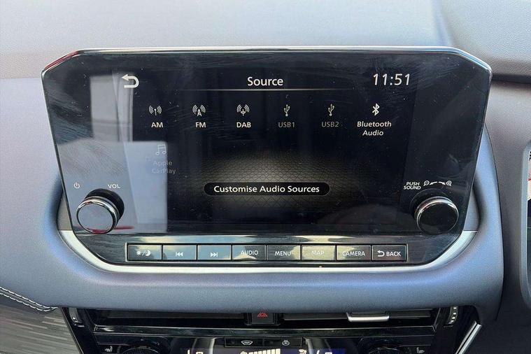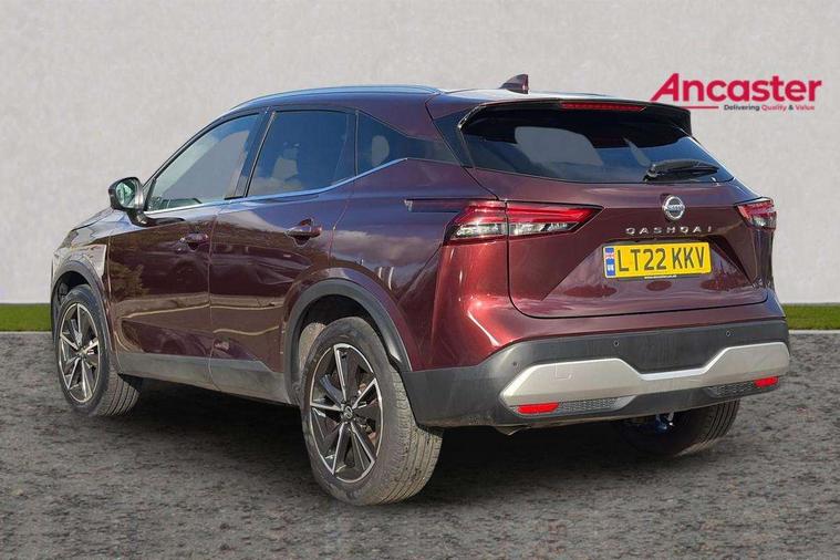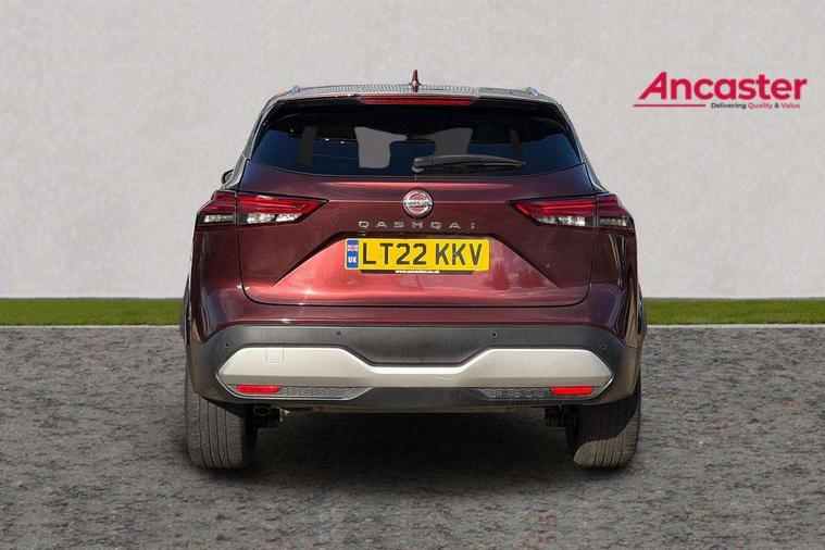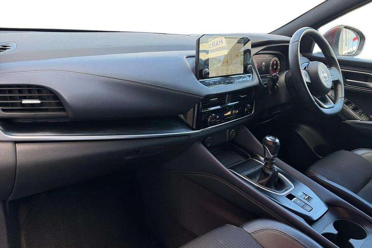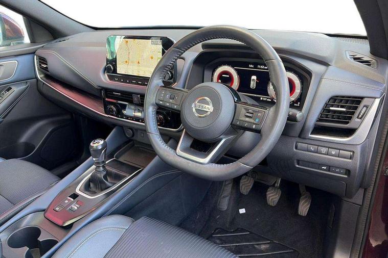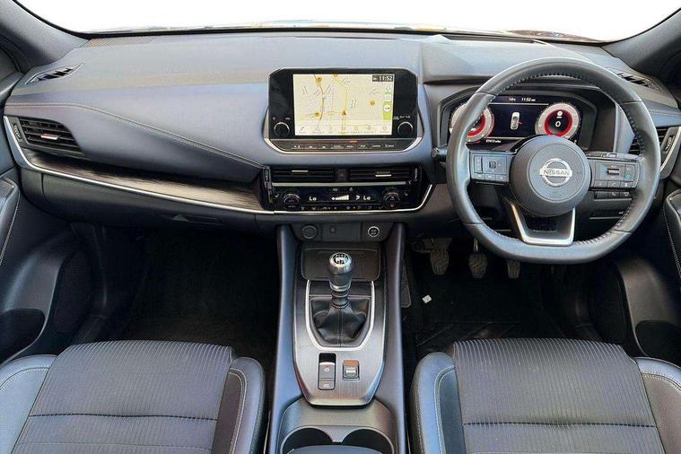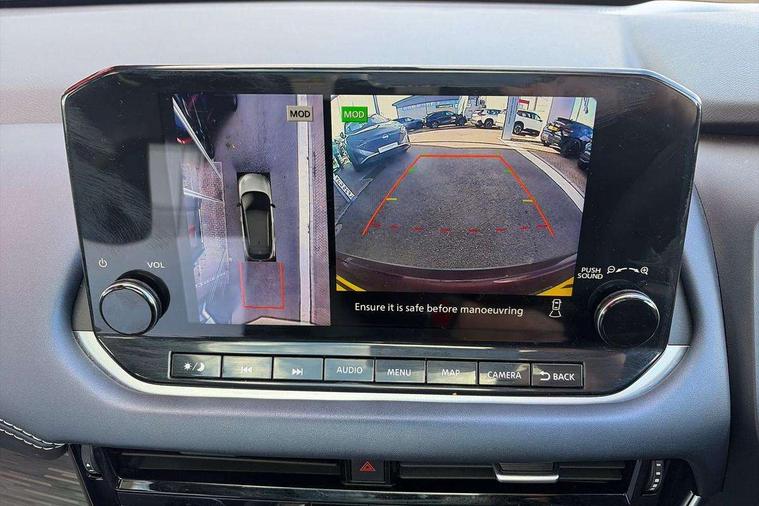 Blind spot warning, Drive modes (sport, normal, eco), Electric speed sensitive power steering, Emergency and breakdown call, Front and rear parking sensors, Full Digital 12.3" TFT Digital Combimeter, Google maps services - search, weather, 3D maps and Google street view, Hands free power tailgate, Idle stop/start system, Intelligent around view monitor, Intelligent Cruise control (ICC), Intelligent driver alert system, Intelligent forward collision warning, Intelligent lane intervention, Lane departure prevention, Lane departure warning system, Moving object detection, Nissan connect 9" touchscreen infotainment system, Nissan connect navigation, Push button starter, Rear cross traffic alert, Remote control services - door locks, lights, horn and car locator, Telematics - notifications and connectivity services, TomTom live traffic services, Traffic sign recognition with legal speed adjustment, Trip computer, Virtual personal assistant and firmware over the air capability, Wireless Apple CarPlay and wired Android Auto, Wireless charging pad, 6 speakers, AM/FM audio system with DAB, Bluetooth audio streaming, Front USB connections (Type-A and Type-C), Rear USB charging only ports (Type-A and Type-C), Auto dimming rear view mirror, Auto rear wiper when reversing, Body colour mirror caps, Body coloured door handles, Bodyside mouldings, Chrome side window finisher, Door handle with button, Dusk sensor, Electric auto folding door mirrors, Electrically adjustable and heated door mirrors with LED turn indicator, Fixed panoramic glass roof with electric sunshade, Follow me home headlights, Front and rear LED turning signals, Intelligent auto headlights, LED daytime running lights, LED rear lights, One touch front and rear electric windows with remote opening and closing, Partially body coloured bumpers, Privacy glass, Rear roof spoiler, Rear side wing doors, Rear styling plate, Roof rails, Shark fin antenna, Splash free rain sensing wipers, Super UV and infrared cut glass, Three blink turn signal, 12v power socket in dashboard and luggage, 2 way electrical driver lumbar adjustment, 2x Rear coat hooks, 3 bench rear seats in 2nd row, 3 rear headrests, 4 folding assist grip, 6 Luggage hooks - 4 on floor, 2 on side, 60/40 split folding rear seat bench, 8 way electric adjustable drivers seat, Ambient lighting around centre console, Ambient lighting in front doors, Centre console storage tray, Chrome interior door handles, Cloth/syntech leather monoform upholstery, Dark headlining, Driver and front passenger sunvisors with illuminated vanity mirrors, Driver seat back pocket, Dual zone automatic climate control with pollen filter, Front and rear door storage, Front cupholders x 2, Front door with bottle holders, Glovebox with light, Hard trunk cover, Height adjustable front headrests, Leather shift knob, Leather steering wheel, Luggage board system, Luggage space lighting, Manual lumbar support on passenger seat, Manually adjustable passenger (slide recline + lifter), Multifunction steering wheel, Passenger seat back pocket, PVC front centre console and armrest, Rear armrest with 2 cupholders, Rear door bottle holders, Single front passenger seat, Soft PVC kneepad, Steering wheel switches, Tilt/telescopic adjustable steering wheel, Two rear isofix child seat anchorage points with top tether, Welcome light and doors with console tray ambient lighting, Drive assist pack - Qashqai, Heat pack - Qashqai, Tech Pack (Drive Assist + HUD), 3x3 point rear seatbelt pretensioners + load limiters, ABS, ESP, EBD and brake assist, Active brake limited slip, Auto hold function, Child locks on rear doors, Curtain and front side, far side airbags, Driver and passenger airbags, Driver, passenger and 2nd row rear seat belt reminder, Electronic parking brake, Front seatbelt pretensioners + load limiters, Height adjustable front seatbelts, Hill start assist, Intelligent blind spot intervention, Intelligent front emergency braking with pedestrian, cyclist recognition and junction assist, Intelligent rear automatic braking, Tyre pressure monitoring system, Vehicle dynamic control, Capless fuel filler, Engine immobiliser, Nissan i-key, Rear bumper with silver insert, Remote central door locking with deadlocking, Thatcham Cat.1 alarm, 19" Alloy wheels,