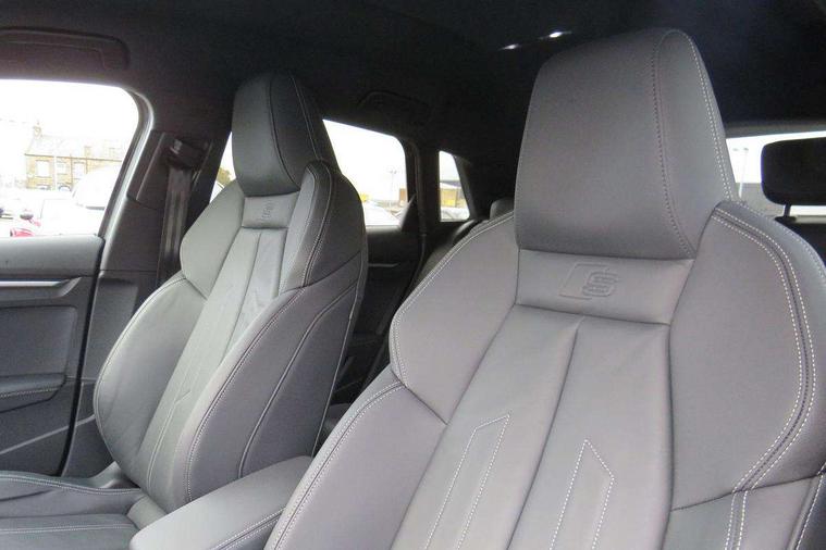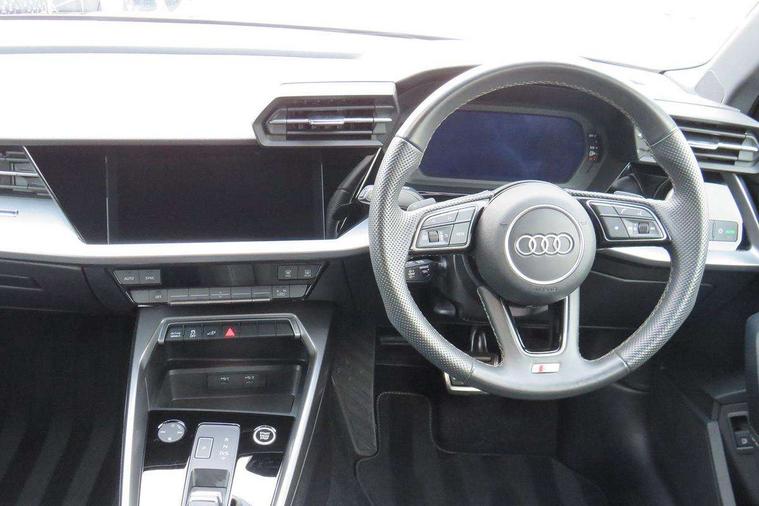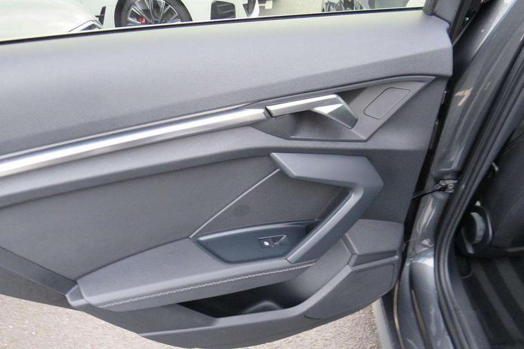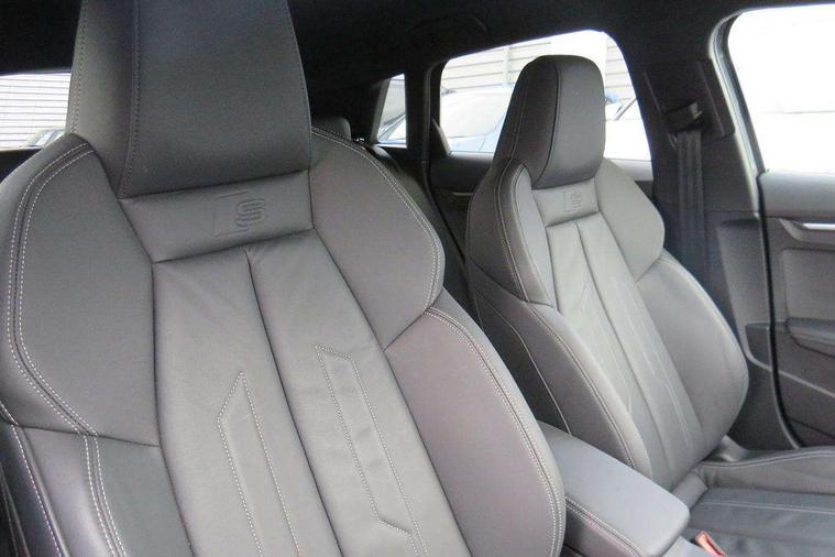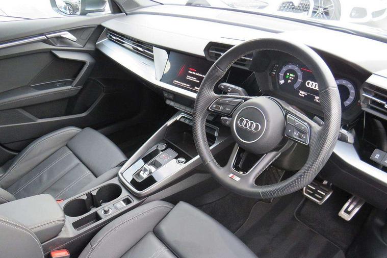 Audi drive select (Auto, Comfort, Dynamic, Efficiency and Individual), Audi smartphone interface, Audi Virtual Cockpit - 10.25" digital and colour instrument cluster, Automatic start/stop system with recuperation, Bluetooth interface, Camera based traffic sign recognition, Collision avoidance assistant, e-Call (emergency call), Electromechanical power speed sensitive steering, Lane departure warning system, MMI Navigation Plus with high resolution 10.1" colour touch screen display, Service indicator, Trip computer, Voice control system with natural language interaction, 3 pin 10 amp domestic charging cable, 3.6 kw On-board charger, Standard suspension, Type 2 mode 3 32 amp charging cable, Type 2 socket for AC charging, 2xUSB-C connection with data and charging functions, 6 passive loudspeakers, DAB Digital radio, 3rd brake light, Acoustic glass windscreen, Aluminium window trim, Auto dimming frameless rear view mirror, Body colour exterior mirrors, Electrically adjustable/heated/folding/dimming door mirrors with kerb view includes integrated LED indications + kerb view function for passenger side, Front electric windows, Illuminated door sills with aluminium inserts at the front with S logo, LED daytime running lights, LED headlights with LED rear lights and dynamic rear indicators, Light and rain sensors, Privacy glass - dark tinted rear window, rear door and side windows, Rear electric windows, Rear side air outlets in grained matt black, Rear side wing doors, Rear wiper, S line bumpers, S roof spoiler, 12V socket and storage compartment in front centre console, 3 seat bench in 2nd row, 3 spoke leather multifunction steering wheel with paddle shift, 4 way electrically adjustable lumbar support for driver and front passenger, 60/40 split folding rear seat bench, Black cloth headlining, Dual zone electronic climate control, Front and rear centre armrest in artificial leather, Front and rear headrests, Front/rear floor mats, Height and reach adjustable steering wheel, Interior lighting - glove compartment light and right hand side, Luggage compartment floor covering, Manual boot compartment lid, Manually adjustable front seats, Seat side bolsters, Single front passenger seat, Stainless steel pedals and front footrest in black, Twin leather upholstery with front sports seats S embossed logo, Aluminium interior elements pack - A3 Sportback, LED interior lighting pack - A3 Sportback, S line styling pack - A3 Sportback, 3x3 point rear seat belts, Driver and front passenger airbag with passenger airbag deactivation, Electronic Stabilisation Control (ESC) including ABS, ASR and EDL, First aid kit with warning triangle and 2 safety vests, Front side airbags with head airbags and interaction airbag, Pre-sense front with pedestrian and cyclist detection, Seatbelt monitoring, Tyre pressure loss indicator, Anti theft alarm, Anti-theft wheel bolts, Electronically operated child locks, Immobiliser, Remote control central locking, Dark spectrum aluminium inlays, accent surfaces in the dashboard and centre console in platinum grey silk effect paint finish, Tool kit, Tyre repair kit,