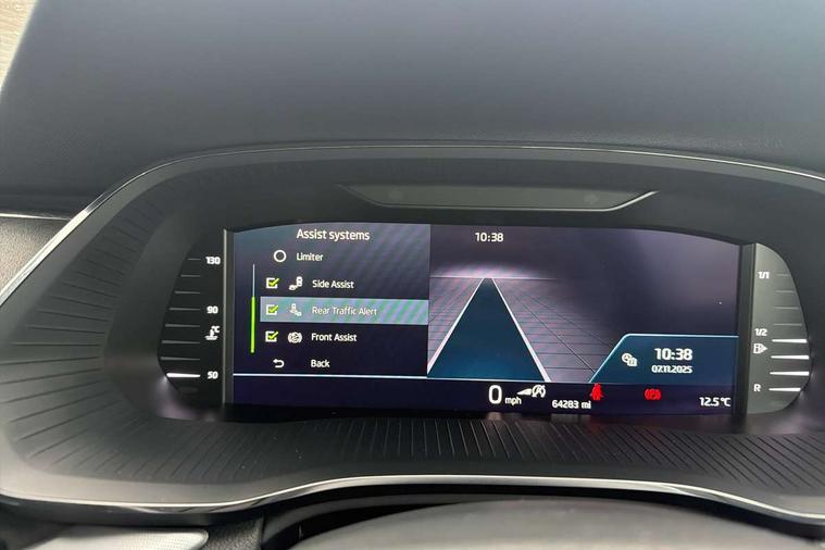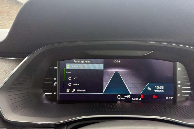 1x USB Type C port in rear view mirror (charging only), 2x USB Type C ports in rear of front centre armrest (charging only), Adaptive cruise control, Blind Spot Detection (BAS), Bluetooth system, Columbus satellite navigation with 10" touchscreen display, Drive mode selector, Electro-mechanical power steering, Front assist system, Lane assist, Smartlink (includes android auto and mirrorlink), Speed limiter, Virtual Cockpit - 10.25" digital display, Voice control system, Wireless SmartLink for Apple Car Play, 2x USB Type C ports (for charging and data transfer), DAB Digital radio, Aero front windscreen wipers with intermittent function, Auto dimming rear view mirror, Body colour door mirrors and handles, Chrome grille surround, Chrome strip in lower front bumper, Chrome window surround, Electric front and rear windows, Electrically adjustable, heated and folding door mirrors with memory function, Heated rear windscreen, High level third brake light, Ice scraper in fuel cap, Rain and light sensors, Rear fog light on one side, Rear privacy glass, 3 rear headrests, 4 foldable roof handles, Chrome inner door handles, Electrically adjustable driver's seat with memory and lumbar support, Front centre armrest, Front head restraints, Illuminated air conditioned glovebox, Leather trimmed gearshift lever, Luggage compartment lighting x1 light, Sun visors with mirrors, Sunglasses storage, Textile floor mat set, Ticket holder, Two-spoke leather multi function steering wheel, Umbrella in door panel, Unsplit rear bench seat and split folding backrest, LED interior light pack - Octavia, 3 point front/outer rear seatbelts+pre-tensioners, Alarm with interior monitoring, tilt sensor and back up horn, Automatic door unlocking in case of crash, Automatic fuel cut off in case of crash, Automatic warning lights in case of emergency braking, Driver and passenger front and side airbags, Drivers knee airbag, Electronic parking brake, Emergency call and proactive services, ESC including ABS, EBV, MSR, ASR, EDS, HBA, DSR, Head and curtain airbags, Hill hold control, Hill start assist, ISOFIX on front passenger seat and outer rear seats, Manual rear child locks, Passenger airbag deactivate switch, Rear disc brakes, Two tone horn, Tyre pressure monitor, Visual and acoustic seat belt reminder, Warning reflectors in front door, Door locks with immobiliser, Keyless entry and start/stop including rear doors, Remote central locking, Chrome air vent surrounds,