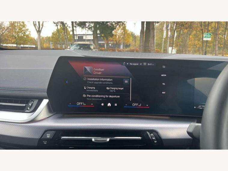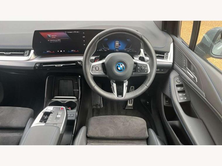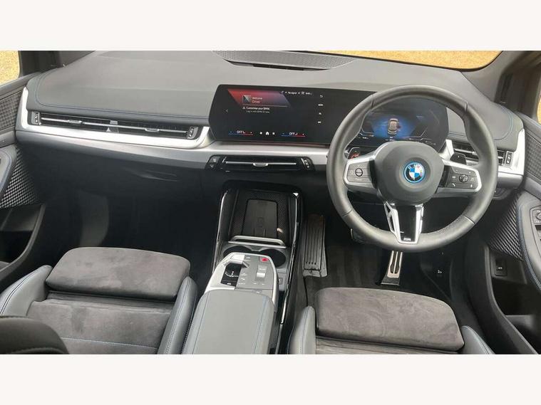 Active Guard, Attentiveness assist, Automatic powered tailgate, Automatic start/stop function, BMW Online services, BMW Operating system 9 with BMW Maps, real-time traffic information, in-car experiences, remote services and smartphone integration, BMW Teleservices, Brake pad wear indicator in front and rear, Condition based service, ConnectedDrive Services, Drive off assistant, Flat air vents on instrument panel in high gloss black, adjustable slats with elements in pearl chrome, iDrive controller, Instrument cluster with speedometer with miles per hour read out, tachometer and fuel gauge, Language version English, On board computer - average speed+fuel consumption, service interval, clock/date, odometer/trip meter, outside temperature display and ice warning, Parking assistant with active park distance control, reversing assistant, lateral parking aid and rear view camera, Servotronic variable electric power steering (EPS), Widescreen display, Wireless charging, Drive performance control with ECO PRO comfort + sport mode, eDrive exterior sound, Gear selector switch with toggle operation, M Adaptive suspension, Mode 3 charging cable, Performance Control, Petrol Particulate Filter, Steptronic transmission with double clutch and gear shift paddles, 2x USB Type C ports in front centre console for charging and data transfer, 2x USB Type C ports in rear centre console for charging, DAB Digital radio, Personal eSim, Welcome sound upon opening of the front driver or passenger door, Air inlet middle part on front apron in lines specific design with trim strip in satinised aluminium, Automatic headlights, Black rear bumper trim strip, BMW emblem, engine compartment lid and tailgate, Body colour roof mouldings, Body coloured door mirror caps, Contoured rear roof spoiler in vehicle colour with side aeroblades in black high-gloss, Driver side exterior mirror lighting with BMW logo projection, Dynamic brake lights, Electric adjustable heated door mirrors, Electric windows - front and rear, with open/close fingertip control, anti-trap facility and comfort closing, Folding door handles integrated flush with surface, Front and rear windscreen wipers with heated front washer nozzles, Front bumper cover with independent design in body colour with inserts in black high gloss, Front bumper design elements in satinised aluminium, Front door exit lights, Front door sill finishers aluminium inserts with M inscription, Front entry sills with aluminium inserts + BMW inscription, Front oramental grille with radiator grille bars in satinised aluminium, Heated rear window, Hidden exhaust pipe, High gloss shadow line, Home light, Key with M identification, LED Daytime running lights and parking lights with turn indicators, LED number plate light, LED third brake light in rear spoiler, M identification on sides, Manual headlight range control, Model inscription on right tailgate, Rain sensor, Rear bumper cover with independent design in body colour with inserts in black high gloss, Rear side wing doors, Shark fin antenna, Side sill covers with independent design in Body colour, Trailer stabilisation logic, Trims on front and rear bumper covers colour-coordinated with side window graphic, Visible VIN plate, Welcome lighting, Windscreen washer nozzle for rear view camera, 12V power socket in luggage compartment and front centre console, 12V socket in right side trim panel, 2 bag hooks in luggage compartment, 2 front reading lights, 2 open cup holders in front centre console, 2 x USB Type C ports for charging in front centre console + 2 x USB Type C ports for charging in rear centre console, 3 seat bench in 2nd row, 40:20:40 split folding rear seats with backrest, Ambient lighting front and rear, Automatic two zone climate control air conditioning, Bottle trays in all doors, Child seat ISOFIX attachment for two outer rear seats and front passenger seat with anchorage points, Driver and front passenger sports seats, Embellishers on steering wheel spokes in pearl chrome, Four grab handles integrated in roof lining, Front and rear door pockets, Front and rear footwell lighting, Front and rear side armrest integrated into door trim, Front centre console storage compartment, Front head restraints, Glovebox with light, Heated front seats, Height adjustable 3 rear head restraints, Illuminated wireless charging tray, Interior door handle recess light on all doors, Luggage compartment lighting, M Anthracite headlining, M specific floor mats, M sport leather steering wheel, Manual adjustment of seat height, fore/aft position, seat depth, backrest tilt and head restraint height, Map pockets, Mechanical rear seats with fore/aft adjustment, Middle centre console storage compartment, Multi-function controls for steering wheel, One piece parcel shelf opens together with tailgate and removable, Rear cloth hooks, Single front passenger seat, Stainless steel pedals, Steering wheel column manual adjustment, Storage compartment lighting in centre console and storage tray in centre stack, Storage compartment net in left side trim panel, Storage compartment with folding cover under centre console armrest cushion, Sunvisors with illuminated vanity mirrors, 3 point seatbelts on all seats, front pyrotechnic belt tensioners, stopper and belt force limiters, rear coded belt buckles, Acoustic protection for pedestrians, Airbag - Front driver and passenger, front and rear head, front side, curtain head protection, manual deactivation of front passenger airbag possible, Anti lock braking system (ABS) with brake assist, Automatic hold function, BMW emergency call, Brake drying, Braking readiness, Child proof locking system in rear door, Cornering brake control, Crash Sensor - activates hazard/interior lighting + unlocks doors, DSC - Dynamic Stability Control, Dynamic brake control, Dynamic Traction Control - DTC, Electromechanical parking brake, Energy recovery system, Front disc brakes, Integrated braking system, PC iBrake PostCrash approach contro
