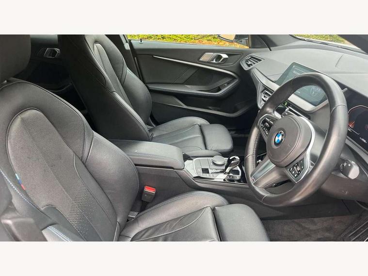 Active guard plus, Attentiveness assist, Auto start-stop, BMW Intelligent Personal Assistant, BMW Live Cockpit Professional with 10.25" high resolution instrument and control display, BMW Online services, BMW operating system with 7.0 mid interface, BMW Teleservices, Check Control warning system for monitoring of lights and door/luggage compartment open warning, Cruise control with braking function, iDrive controller with 7 short cut favourite buttons on centre console, Integrated navigation data with map data via USB +features such as 3D landmarks and micro city models, Integrated owners handbook, Intelligent voice assistant, Lane departure warning system, M Sports steering, On board computer - average speed+fuel consumption, service interval, clock/date, odometer/trip meter, outside temperature display and ice warning, Optimum shift indicator, Personal Profile, Pull away assistant, Speed limiting function, Aluminium lightweight construction, Balancer shaft, Double VANOS, Drive performance control with ECO PRO comfort + sport mode, Dual clutch automatic transmission, Electronic differential lock, High precision injection, M Sport suspension with stiffer spring/damper set-up and vehicle lowered by 10mm + twin tube gasfilled shock absorbers and Anti roll bars, Performance Control, Petrol Particulate Filter, VALVETRONIC engine management, 2x USB Type C ports (for charging and data transfer), 4G LTE Connectivity with hard wied 4G network sim card, DAB digital radio, MP3 players and RDS double tuner, Auto wipers, Automatic headlight beam throw control, Automatically dimming rear view mirror, Body colour door handles, Body colour mirror caps, Chrome 'M' logo side designation, Chrome exhaust single tailpipe, round, Direction indicator side lights integrated exterior mirrors, Electric windows - front and rear, with open/close fingertip control and trap release, Exterior mirrors - electrically folding with anti-dazzle, Fading support, Follow me home headlights, Front and rear bumper system with replaceable deformation elements, Front door sill finishers in black plastic with M designation in metallic look, Heated, electrically adjustable exterior mirror aspheric on driver side, convex on passenger side, High gloss black B pillar finish, High gloss shadow line exterior trim, High level third brake light, LED daytime running lights, LED front fog lights, LED Headlights, Lightweight engineering, Model designation on right side of tailgate, Preparation for high beam assistant, Rain sensor with automatic headlight activation, Rear boot, Rear fog lights, Rear side wing doors, Reversing light in rear light cluster, Welcome lighting, 12V power socket in centre console, 2 cupholders in front centre console, 3 rear seat head restraints, 3 rear seats, 3 spoke M sports design leather steering wheel finished in nappa leather with specific M badge, Anthracite finished floor mats with contrasting surround, Anthracite headlining, Automatic two zone climate control air conditioning, Child seat ISOFIX attachment for two outer rear seats and front passenger seat with anchorage points, Conditioned based service, Driver and front passenger seat heating, Front and rear door pockets including bottle trays, Front and rear side armrests integrated into door trim, Front armrest foldable with integrated storage compartment, Front centre interior light over interior mirror and rear centre automatic interior light when door is opened/ignition switched off or via remote key, Front head restraints, Front passenger seat, Front sports seats with electric side bolster adjustment, Glove compartment, Glovebox with light, Luggage compartment lighting, Manually adjustment steering wheel column, Multi-function controls for steering wheel, Sun visors with vanity mirrors and insert tab, Through loading system with 40/20/40 split folding rear seat, Two lashing eyes, Additional interior lighting pack - 2 Series Gran Coupe, Extended storage pack - 2 Series Gran Coupe, M Sport exterior styling aerodynamics pack - 2 Series Gran Coupe, 2 tone horn, Airbag - Front driver and passenger, front and rear head, front side, curtain head protection, manual deactivation of front passenger airbag possible, Anti lock braking system (ABS) with cornering brake control, BMW emergency call, Brake drying, Braking readiness, City braking function, Crash sensor activating of airbags, Unlocking doors, hazard warning lights, interior light, safety battery terminal, Dynamic stability control + (DSC+), Dynamic Traction Control - DTC, Electrically operated hand brake, Rear brake discs, Rear child proof door locks, Seat belt security check for driver and front passenger, Seatbelt warning, Side impact protection, Three point seat belts on all seats including front belt stopper, pyrotechnic belt tensioners and belt force limiters, Trailer stability control, Tyre pressure monitoring system, Ventilated front disc brakes, Warning triangle and first aid kit, Central locking switch for all doors, fuel filler cap and luggage compartment, Deadlocking function system to all doors, Drive away locking system on all doors and luggage compartment, Locking wheel bolts, Start/Stop button (illuminated) in centre console with keyless engine start and Auto Start-Stop deactivation button, Thatcham Cat.1 alarm and immobiliser, Two remote control key with integrated key - open/close doors/fuel flap/tailgate +1 button for unlock compartment with M design high gloss black inlay, Contrast stitching on instrument panel, 18" Burnished M double spoke bi-colour alloy wheels finished in orbit grey - style 819M, Reduced rolling resistance tyres,