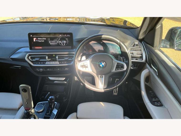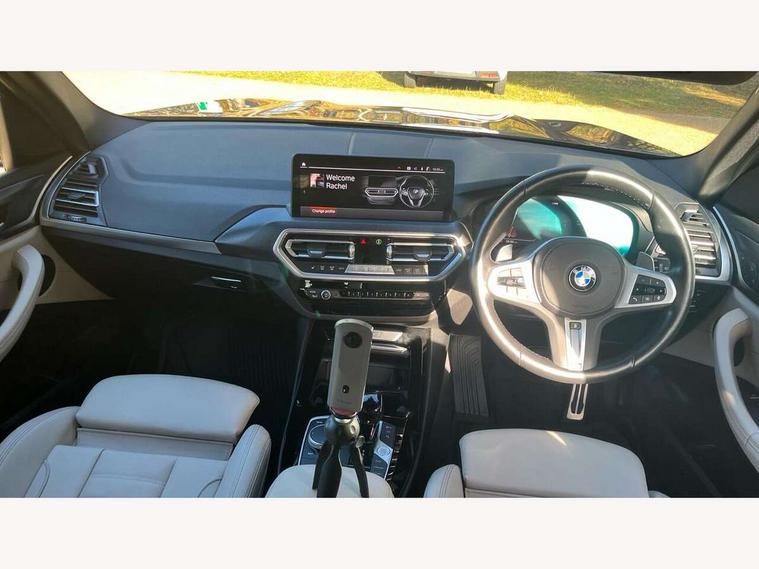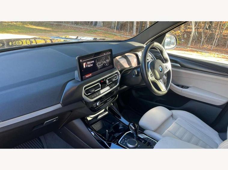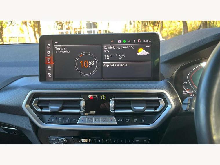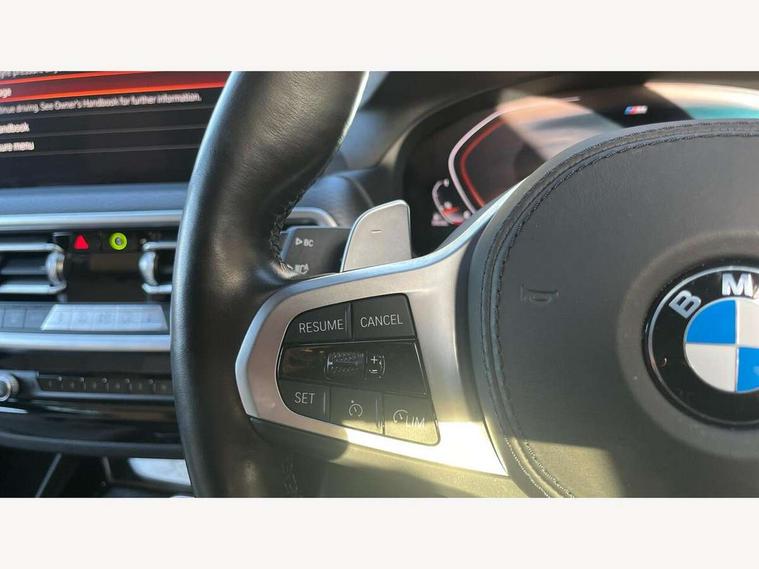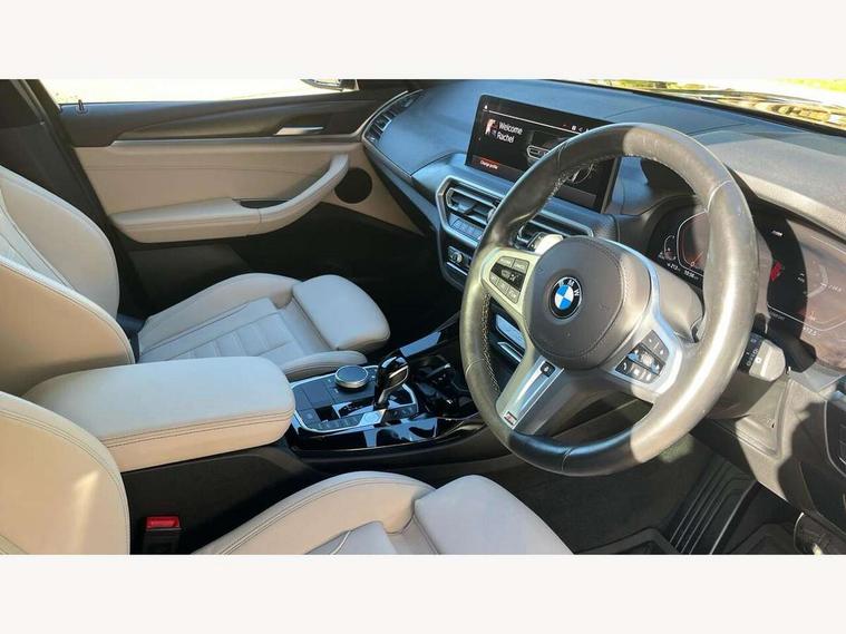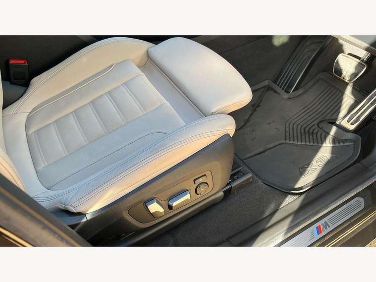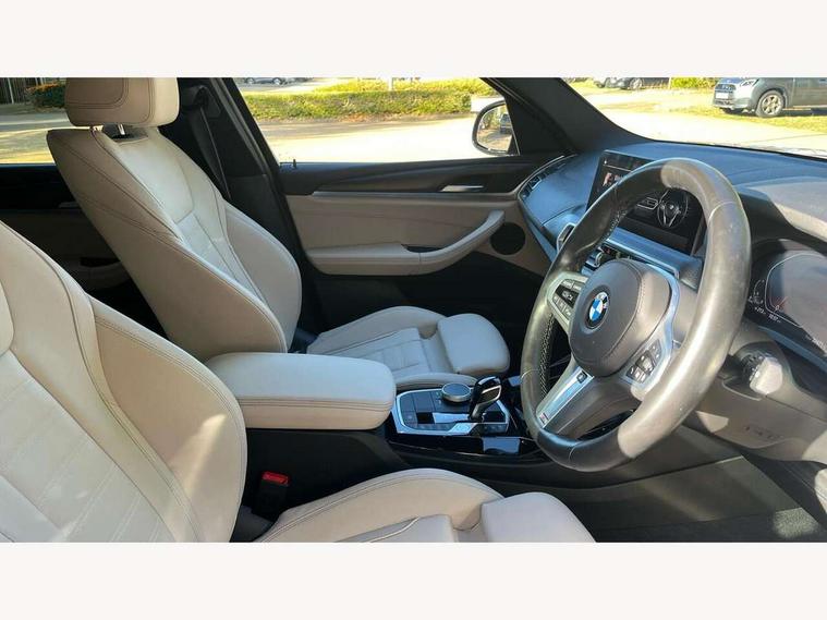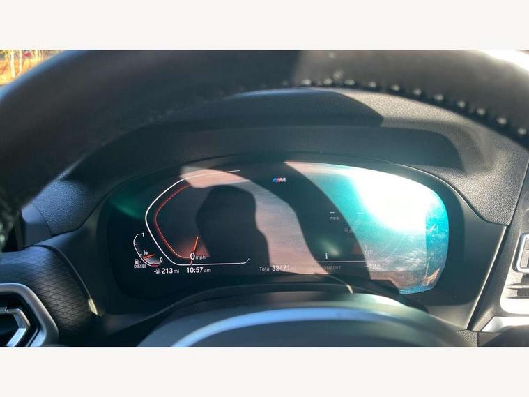 Active Guard, Attentiveness assist, BMW Live Cockpit Professional nav system including 12.3" instrument display + 12.3 high resolution control display, BMW Online services, BMW Teleservices, Brake pad wear indicator in front and rear, Check Control warning system for monitoring of lights and door/luggage compartment open warning, Condition based service - BMW service history, electronic service booklet, integrated owner's handbook, Connected drive services, Cruise control with brake function + speed limiter, Electric boot lid, Front/rear Parking distance control, iDrive Controller with 8 favourite buttons, Instrument cluster with speedometer with mph readout, tachometer, fuel gauge and oil temperature gauge, Lights on warning by audio warning signal when ignition is switched off, Oil sensor for level and grade, warning by check control system, On board computer - average speed+fuel consumption, service interval, clock/date, odometer/trip meter, outside temperature display and ice warning, Optimum shift indicator, Personal Profile - automatic lock when driving away selectable, Stop/start system, Variable sports power steering, Automatic transmission with gearshift paddles, Diesel particulate filter, Drive performance control with ECO PRO comfort + sport mode, Incorrect fuelling protection, Larger capacity fuel tank, M sport suspension, Multi-link rear suspension, Performance Control, BMW professional radio/CD/MP3, DAB tuner, Acoustic glazing, Automatic windscreen wipers and automatic headlight, Black finish on B pillars, Body colour door handles, Body colour electric adjust heated aspherical door mirrors, Body colour roof mouldings, Body coloured bumpers, Direction indicator, side repeaters, integrated in exterior mirrors, Dynamic brake lights, Exhaust tailpipes - dual, round, split left and right with chrome finisher, Fingertip control / anti-trap function on electric window, Folding wing mirrors with auto dimming, Follow me home headlights, Front and rear bumper system with replaceable deformation elements, Front and rear electric windows, Gloss chrome tailpipes finishers, Green tinted heat insulating glass, Heated windscreen washer jets, High beam assistant, High gloss black shadow line roof rails, High gloss shadowline exterior trim in decorative moulding side frame/recess cover/guide rail/B, C pillars/mirror frame and triangle with mirror base, High level 3rd brake light incorporating LED Technology, Interior rear view electrochromatic mirror with automatic anti dazzle function, LED tail lights, Lightweight engineering, M aerodynamic bodystyling, Model designation, Rear side wing doors, Rear wing door, Rear wiper, Shark fin antenna, Side exterior M designation badges, Visible VIN plate, Welcome lighting, Windscreen wipers with adjustable interval, 12V power socket in front centre console, 3 rear headrests, 3 zone automatic air conditioning, 4 lashing points to secure luggage, 40:20:40 split folding rear seat with loading system, 5 seats, Ambient lighting, Anthracite headlining, Automatic interior light when door is opened/ignition switched off or via remote key, Foldable storage floor with compartment, Four grab handles integrated in roof lining, Front and rear bottle holders integrated into door trim storage compartments, Front and rear side armrests integrated into door trim, Front centre armrest with storage compartment, Front footwell lights, Front head restraints, Front sports seats, Front/rear courtesy lights with soft on/off dimming, Front/rear reading lights, Heated front seats, Isofix rear child seat preparation, Leather gear knob, Luggage area underfloor compartment, Luggage compartment lighting, M sport leather steering wheel, Multifunction steering wheel, Parcel shelf removeable and storable under boot floor, Reach and rake adjustable steering column, Rear centre armrest with 2 cupholders, Removable / retractable luggage cover, Seat backrest width adjustment, Slope adjustable rear seats, Storage compartment in rear centre console and front/rear door trims, Sun visors with vanity mirrors and ticket pocket, Toolkit located in luggage compartment, Two front cupholders with removable oddments tray/lid, Vernasca leather upholstery, Connected pro pack - X3, Driving assistant pack - X3, ADB - Automatic Differential Brake, Anti-lock braking system (ABS) with brake assist, Automatic Stability Control (ASC), Battery safety cut-off, BMW emergency call, Brake drying, Brake energy regeneration, Braking pre-tensioning, Child locks on rear doors, Cornering brake control (CBC), Crash Sensor - activation of central locking release, hazard warning light and interior lighting, Deactivation of fuel pump in the event of a crash, Driver and front passenger front and side airbags with passenger deactivation and ITS front and rear head airbags, DSC+, Dynamic brake control, Dynamic Traction Control - DTC, Electromechanical parking brake, Hill descent control, Hill start assist, Seatbelt security check for front seats, Side impact protection, Three point seatbelts to all seats with front and outer rear pyrotechnic belt tensioners and seat belt force limiters, Two tone horn, Tyre pressure sensor, Ventilated front and rear disc brakes, Warning triangle and first aid kit, Central locking switch for all doors, fuel filler cap and luggage compartment, Electronic engine immobiliser, Locking wheel nuts, Remote control including two integrated key - one button for open/close all lockable content, windows and separate button for open luggage compartment, Remote control Thatcham category 1 alarm, Start/stop button with Comfort Go keyless engine start and auto Start/stop deactivation button, Low rolling resistance tyres,