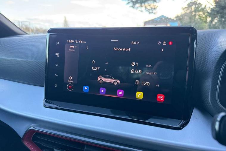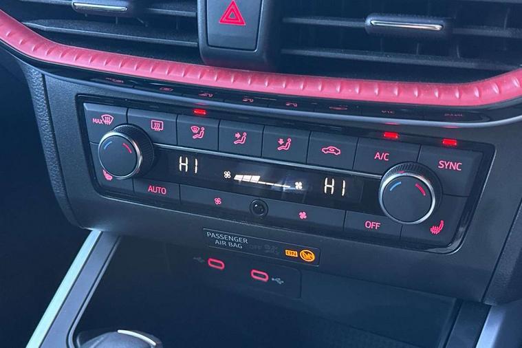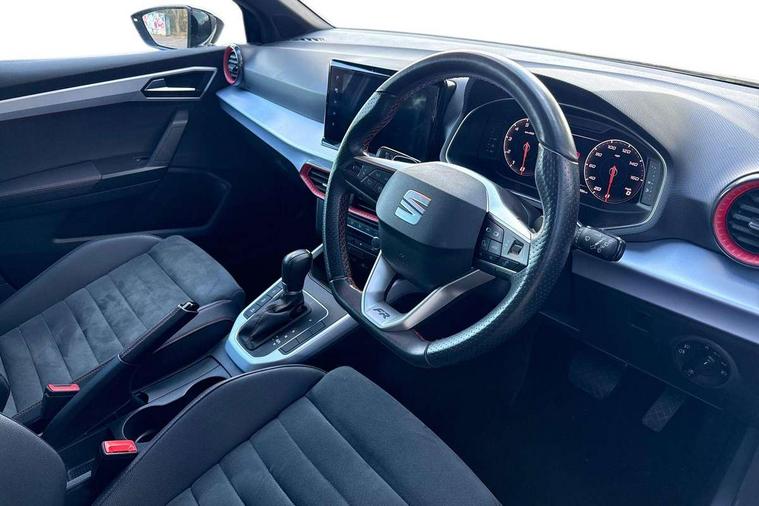 Digital cockpit, Electric speed sensitive power steering, Full Link Smartphone Integration with Mirror Link, Apple Car Play, Google Android Auto with USB Type C cable for Apple and Android compatibility, Lane keeping system, Rear parking sensor, Seat connect with safety, service, remote and online, SEAT Drive profile - Four different models normal-sport-eco-individual, steering response, throttle response and gear shifts mode, Bluetooth interface for hands free and audio streaming, DAB digital radio and AM/FM radio, Steering wheel mounted audio controls, Anti theft roof antenna, Auto dimming interior rear view mirror, Automatic activation of hazard warning lights, Body coloured bumpers, Body coloured door handle inserts, Chrome roof rails and window surrounds, Chrome window trim, Dark tinted rear windows, Electric front/rear windows, Electrically adjustable, heated and folding door mirrors, FULL LED automatic headlights with dynamic headlight range control, coming and leaving home, LED daytime running lights, LED rear tail lights and licence plate lights, Protective side mouldings, Rain sensing wipers, Rear spoiler, Rear window wash/wipe, Roof colour door mirrors, Twin exhaust pipe styling hidden exhaust pipe, Visible VIN plate, Windshield wiper with intermittent control and potentiometer, 2 cupholders, 60/40 split folding rear seat, Aircare filter, Black interior roof, Daring red Illuminated coloured air vent, Double boot floor, Driver sunvisor with covered mirror + card holder, Dual zone climate control, Front courtesy light with 2x front and 2x rear reading lights, Front seat back storage pockets, Front sport seats, Heated front seats, Height adjustable front seats, Height/reach adjustable steering column, Illuminated boot, Interior ambient lighting, Interior light in footwell, central console and door panel, ISOFIX points in outer rear seats with top tether anchorage points, Microsuede cloth upholstery, Passenger sunvisor with vanity mirror, Perforated flat bottomed leather steering wheel/gear knob/handbrake with red stitching and FR logo, Steering wheel mounted gearshift paddles, Two front and three rear height adjustable headrests, Connectivity pack plus - Arona, Interior chrome pack - Arona, 3 point seatbelts on all rear seats, ABS, Active front headrests, Child locks on rear doors, Driver and front passenger airbags with front passenger airbag de activation, front side and curtain airbags, Electronic stability control, Emergency Brake Assist (EBA) and front assist, Front and rear seatbelt reminder, Hill hold control, Multi-Collision braking, Tiredness recognition system, Traction control, Tyre pressure monitoring system, Alarm with back-up horn, Electronic engine immobiliser, Locking wheel bolts, Remote central locking + deadlocks, Tow away protection, Titan black dashboard, 18" Performance Cosmo grey matt alloy wheels,