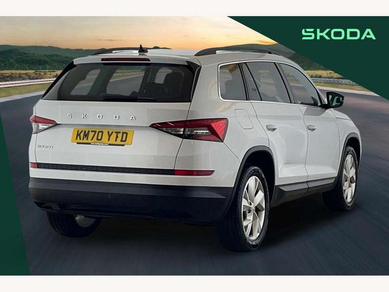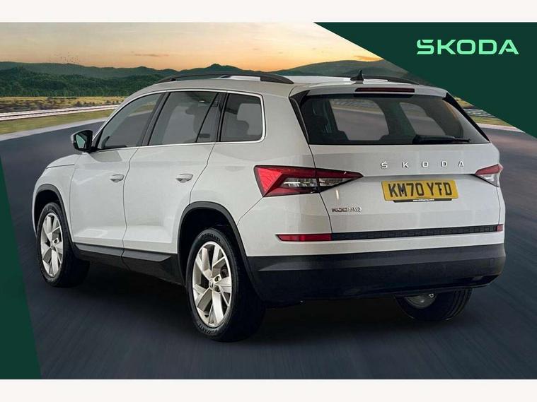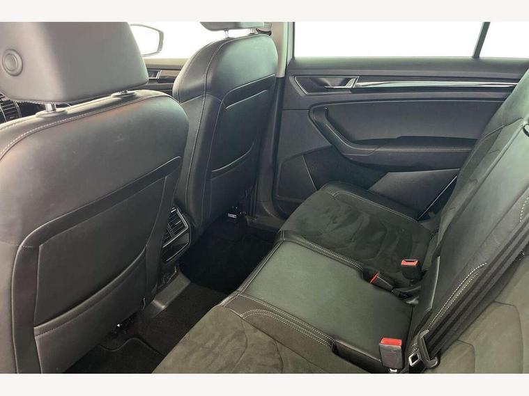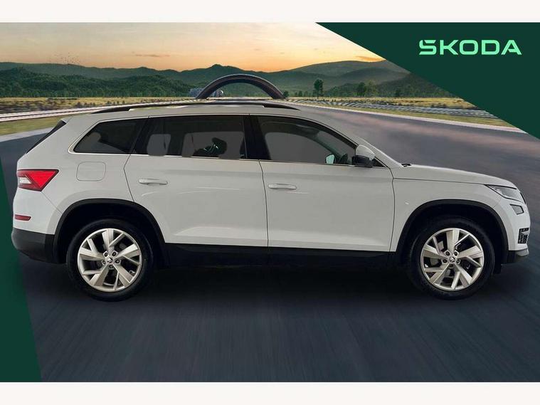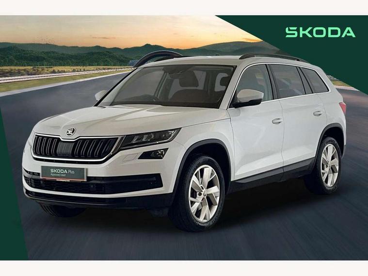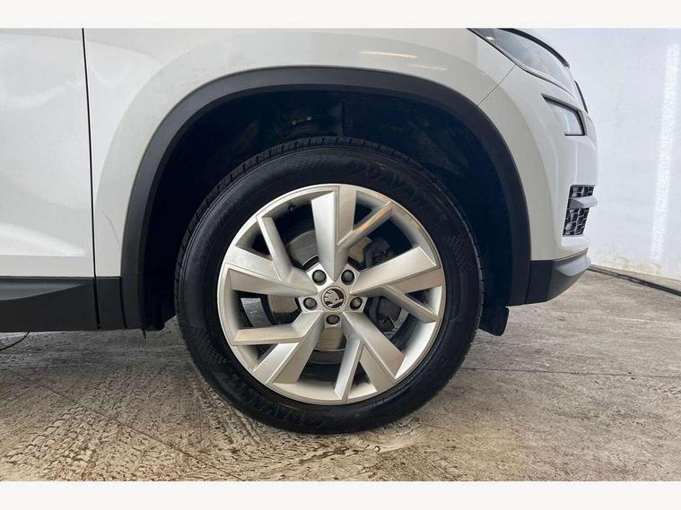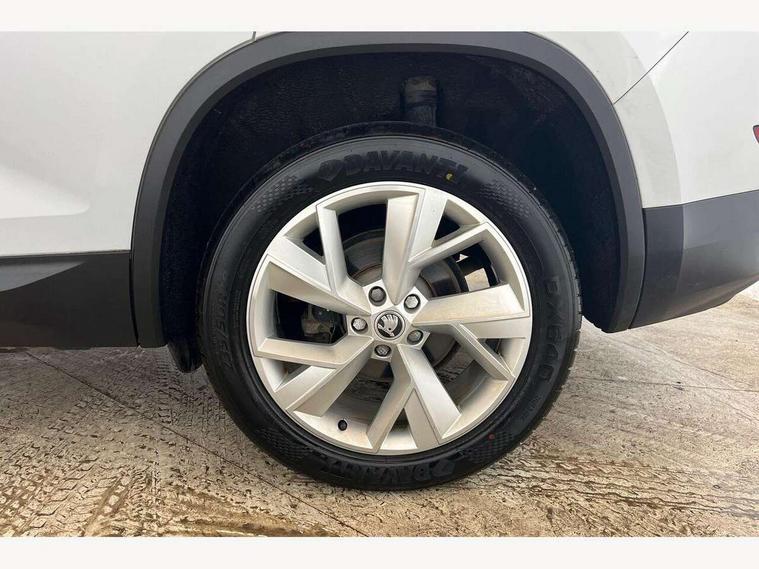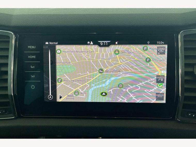 Bluetooth system, Digital voice enhancement, ECO Stop/start function, Exterior temperature indicator, Map care, Smartlink wireless for apple carplay and wired for android auto, Speed limiter, USB C Port x 2 in front centre console, Bolero Radio, DAB Digital radio, DVD System, Aero front windscreen wipers with intermittent function, Aero rear window wiper, Auto dimming rear view mirror, Automatic activation of hazard warning lights, Black electric window control buttons, Black wheel arch surrounds, Body colour bumpers, Body colour door mirrors and handles, Electric front and rear windows, Electrically adjustable, heated and folding door mirrors, Front and Rear door steps, Full LED Headlights with adaptive front light system and LED daytime running lights, Headlight washers, Heated rear window, Invisible tailpipe, LED front fog lights with static cornering light function, LED rear fog light, LED third brake light in rear spoiler, Light assistant (coming home/tunnel light), Radiator grille frame in matt black with chrome strip, Rain and light sensors, Rear spoiler, Safety reflectors on front and rear doors, Sunset privacy glass, 12V socket in boot, 2 rails with 2 hooks including 4 hooks for net programme, 4 foldable roof handles with rear coat hooks, 4 lashing points on luggage floor, 60:40 foldable rear seat with sliding adjustment and backrest angle adjustment, Bottle holders in door panel in the 1.5 litre front and 1 litre rear, Cargo storage compartments, Centre console with open storage box, cup holder and 12V socket, Chrome headlight control button, Chrome interior door handles, Coat hooks on B pillar, Covered storage compartment on driver side, Front and rear door armrest with black adductor trim, Front and rear height adjustable headrests, Front centre armrest with storage compartment, cup holder and 12V socket, Front courtesy lights, Gear shift lever with chrome frame and black gloss insert, Illuminated and cooled glovebox, Illuminated luggage compartment, Isofix child seat fittings in outer rear seats with top tether, Manually adjustable steering column, Net programme in boot (1x horizontal Net, 2x vertical Nets), Overhead glasses storage compartment, Pollen filter, Rear centre armrest with cupholders, Roll up luggage compartment cover with intermediate position, Small Bags on the inner sides of the front backrests, Storage compartment in lower middle instrument panel with closing, Three rear height adjustable headrests, Ticket holder on A Pillar, Umbrella in door panel, Chrome pack - Kodiaq, Auto door release and activation of warning lights, Driver and passenger airbags, Electronic parking brake with hill hold control, Emergency rear braking signal, ESC (incl. ABS+MSR+ASR+EDS+HBA+DSR+RBS+MKB), Front and rear three point safety belt on all seats, Front assist includes AEB city/urban, Front passenger airbag deactivation switch, Front side airbags, Fuel cut off safety device, Head and knee airbags, Rear disc brakes, Safety vest holder in door, Seat belt reminder for all seats, Tailgate unlocking from outside, Two tone horn, Tyre pressure monitor, Warning lights in front doors, Alarm with interior monitoring and tilt sensor with safe function, Immobiliser, Keyless entry and start system (KESSY), Remote central locking,