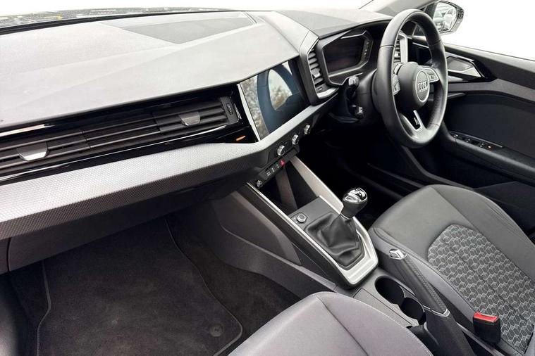 10.25" Digital instrument cluster display classis style instrument dials + speed, odometer, time, outside temperature, telephone menu + fuel level warning, Audi connect safety emergency and service including E-call, Audi drive select - power steering assistance + engine, Audi smartphone interface with connect compatible smartphone via USB directly MMI display + Nav, music, third party apps controlled via MMI controller, Automatic start/stop system, Bluetooth interface, Cruise control, Driver's information system, Electromechanical power steering, Emergency services call system, Lane departure warning system, Service interval indicator, Speed limiter, Voice control system, Washer fluid level indicator, Dynamic suspension, 1 x SDXC card reader, 2 x USB type C connection points, DAB Digital radio, MMI radio plus with 8.8" colour MMI display screen and MMI touch, Auto dimming rear view mirror, Body coloured bumpers, Body coloured door mirrors, Electric front and rear windows, Electrically adjustable, heated, folding door mirrors with integrated LED side indicator, Front side air inlets in grained matt black and C frame in titanium black, Heat insulating glass windscreen and side windows, Heated rear windscreen, High level LED brake light, LED headlights with LED rear lights + dynamic rear indicators + headlight adjustment and high beam, turning light + LED daytime running lights, Radiator grille and rear diffuser in matt titanium black, Radiator protective grille frame in matt aluminium silver, Rain and light sensors, Rear fog lights, Rear side wing doors, Rear wing door, Rear wiper, Side front spoiler lips in grained matt black, 12V socket in centre console with two cup holders, 3 rear seats with headrests, 3 seat bench in 2nd row, 40:60 Split folding rear seat or folded fully, Door sill trims with aluminium inlay, Driver and passenger seat with manual height adjust with forward and backwards adjustment, Front head restraints, Front passenger seat, Front/rear floor mats, Height and reach adjustable steering wheel, ISOFIX child seat mounting for front passenger and outer rear seats including top tether attachment point of outer rear seats, Leather gear knob with aluminium trim, Leatherette handbrake grip, Luggage compartment light with front and rear reading lights, Manually adjustable lumbar support in front seats, Novum cloth upholstery with front sport seats, Titanium grey cloth headlining, Luggage compartment pack - A1, 3x3 point rear seatbelts, Audi pre-sense front with pedestrain and cyclist recognition, Brake assist function, Driver and front passenger airbag with front side and head airbags, Electronic Stability Control including ABS, EBD, ASR and EDL, Front passenger airbag deactivation switch, Hill hold assist, Manual rear child locks, Seatbelt height adjustment for front seats, Seatbelt monitoring, Tyre pressure warning light, Warning triangle and first aid kit, Anti theft alarm, Anti theft wheel bolts and loose wheel warning, Immobiliser, Remote central locking with 2 foldaway keys, Aluminium trim for control switches, air vents and digital instrument cluster, Silver grey accent areas including air vents, door handle recesses and centre console in diamond paint finish, Slate grey inlays polygon structure in fine paint finish,