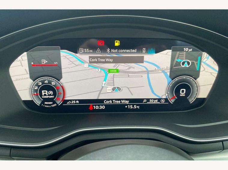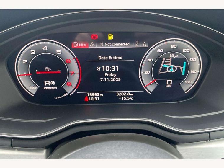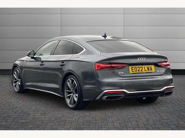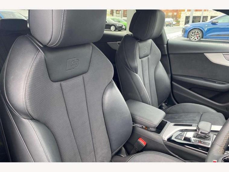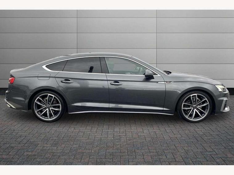 Audi connect safety and service (e-call), Audi connect with Amazon Alexa Integration, Audi drive select (Auto, Comfort, Dynamic and Individual), Audi parking system plus with front and rear sensors, Audi smartphone interface, Audi virtual cockpit - 12.3" full colour digital instrument cluster, vehicle/engine speed, Radio/media information+Driver assistance systems, Automatic start-stop system with coasting functionality and efficiency programme, Bluetooth interface, Electro-mechanical power steering, Email, calendar and text messages displayed via MMI, MMI nav+ with MMI touch - 10.1" high resolution MMI display, touch sensitive, 3D map, route/country info, dynamic route guide, personal route assist, Power operated tailgate, Rear view camera, Service interval indicator, Voice control system, Sports suspension lowered by 23mm, 8 passive loudspeakers, CD player, DAB digital radio reception, Two additional USB ports for rear passenger in rear centre console, Two SDXC card slots, Audi matrix LED headlights with LED rear lights + dynamic front and rear indicators, Auto dimming rear view mirror, Body colour bumpers, Body colour door handles, Body colour front spoiler lip, Body colour side sill trim, Body coloured door mirrors, Electric adjustable heated door mirrors, Electric folding door mirrors, Electric front windows, Front fog lights, Honeycomb structure radiator grille in grained matt black, LED daytime running lights, LED third brake light, Matt aluminium silver tailpipe trim, Privacy glass, Rain and light sensors, Rear side wing doors, S line badges on front wings, S line front and rear bumpers with side skirts, S Line rear diffuser in matt titanium black with trim strip in matt aluminium silver, Side air inlets in grained matt black with matt aluminium silver inlay, Variable front intermittent wipers, Windscreen with acoustic glazing, 4 way electric lumbar support for driver and front passenger, 40/20/40 split folding 3 seater rear bench seat, Adjustable steering column, Black cloth headlining, Black perforated leather gearknob, Contrast stitching on seats, steering wheel and gear lever gaiter, Deluxe 3 zone electronic climate control, Front centre armrest, Front head restraints, Front/rear floor mats, Heated front seats, Illuminated door sill trim with S logo, ISOFIX child seat mounting and top tether, Luggage compartment mat, Manual seat adjustment, Rear headrests, Single front passenger seat, Stainless steel pedals, Sunvisors with vanity mirrors, LED interior light pack - A5/RS5, 3x3 point rear seatbelts, 6 airbags - Driver, front passenger, curtain and side airbags, Electromechanical parking brake, Electronic Stabilisation Control (ESC) including ABS, ASR and EDL, Front passenger airbag deactivation, Height adjustable front seatbelts, Hill hold assist, Multi collision brake assist, Pop-up bonnet for pedestrian protection, Pre sense city, Seatbelt monitoring, Tyre pressure warning, Variable restraint system, Warning triangle and first aid kit, Anti theft alarm system, Anti theft wheel bolts, Immobiliser, Keyless Go, Remote central locking, Matt brushed aluminium inlays, Tool kit, Tyre repair kit,