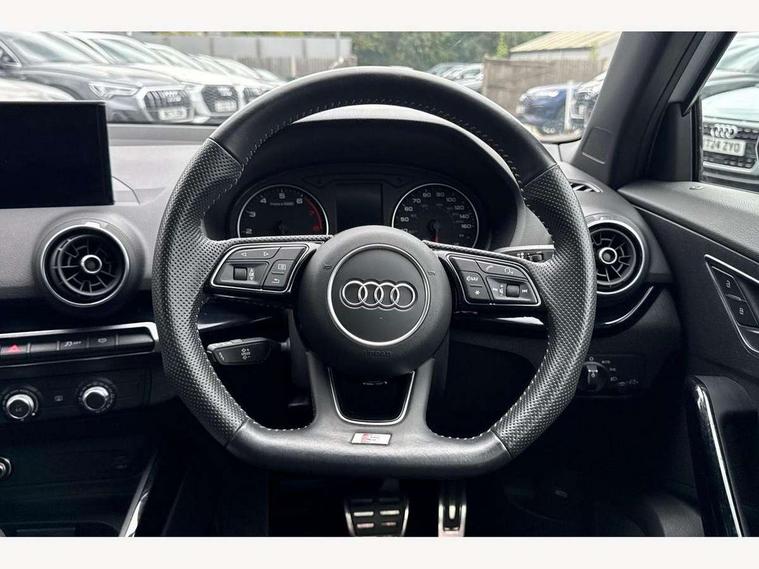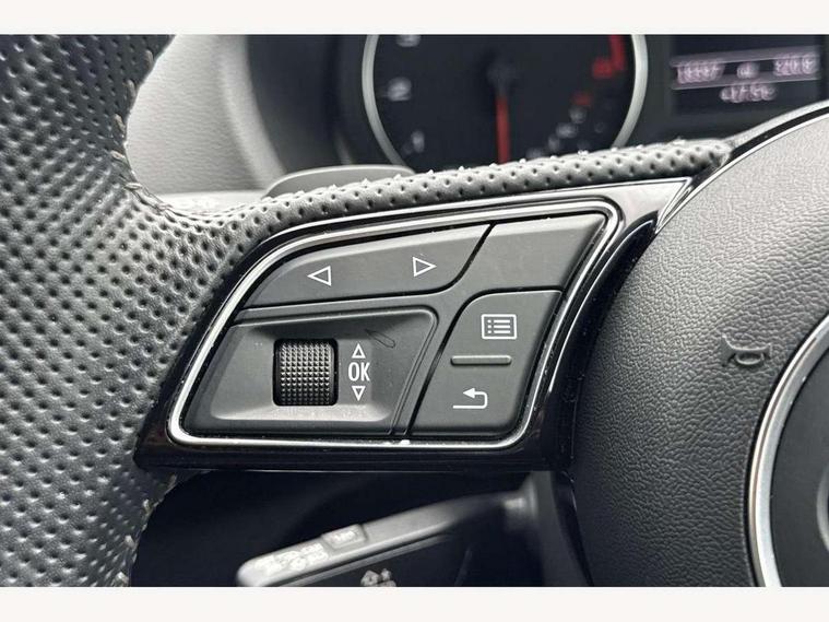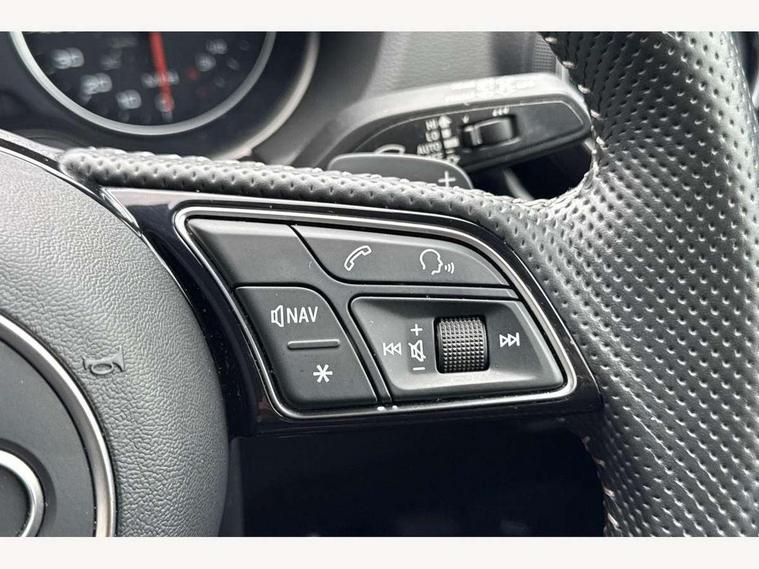 Audi drive select, Audi smartphone interface, Automatic start/stop system with recuperation, Bluetooth interface includes bluetooth audio streaming, Cruise control, MMI - Multi Media Interface control system, MMI SD card integrated nav with 3D map display, dynamic route guidance with TMC, MMI search, natural voice recognition and myAudi special destinations, Power operated tailgate, Progressive steering, Service interval indicator, Dynamic suspension, 2 x SDXC card reader, Audi music interface - apple iPod, apple iPhone, USB storage media, compatible MP3 players, 2 x USB charging points and 1 x Aux-in, CD Drive, DAB digital radio and AM/FM radio, MMI radio plus with 7" colour MMI screen and MMI controller, Black window trims, Bumper in full body colour paint finish, Chrome exhaust tailpipe, Electrically adjustable and heated door mirrors with integrated LED side indicators, Front and rear electric windows, Front underbody guard and rear diffuser trim in selenite silver, Front windscreen with grey tinted sunband, Headlight washers, Interior mirror, LED headlights with LED rear lights + dynamic rear indicators, LED indicator lights, Manual folding door mirrors, Privacy glass - dark tinted rear and rear side windows from B-pillar backwards, Rain and light sensors, Rear wiper, S Line body styling - front and rear bumpers, side skirts, radiator grille, rear diffuser insert and front air intakes, 3 spoke flat bottomed high multi-function leather sport steering wheel with gearshift paddles, 60/40 split folding rear seat bench, Black cloth headlining, Floor mats with contrast stitching, Front centre armrest, Front headrests, Front sport seats with S embossed logo, Height/reach adjust steering wheel, Illuminated door sill trims with S logo, ISOFIX child seat mounting for front passenger with airbag deactivation and outer rear seat including top tether attachment point for outer rear seats, Manual seat adjustment including seat height adjustment for front seats, Stainless steel pedals, Storage compartments - Glovebox, cupholder compartment in centre console, storage compartment in rear centre console, front and rear door pockets, Three rear headrests, Black styling pack - Q2, LED interior lighting pack - Q2, Non smoking pack - Q2, 3x3 point rear seatbelts, 6 airbags - Front, curtain and front side airbags, Electromechanical parking brake, Electronic stabilisation control including ABS, ASR and EDL, Extended and proactive pedestrian protection, Hill hold assist, Multi collision brake assist, Pre-sense front with pedestrian recognition, Seatbelt monitoring, Tyre pressure warning light, Warning triangle and first aid kit, Anti theft alarm, Anti theft wheel bolts, Central locking system with remote control key, Electronically operated child locks, Aluminium interior element, Black inlays - decorative trims in black for centre console and front and rear door pull handles,