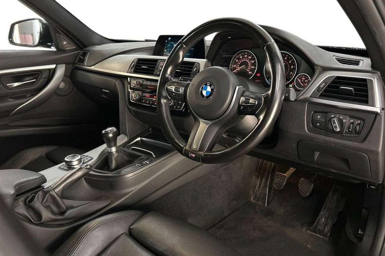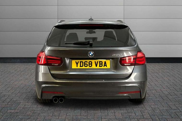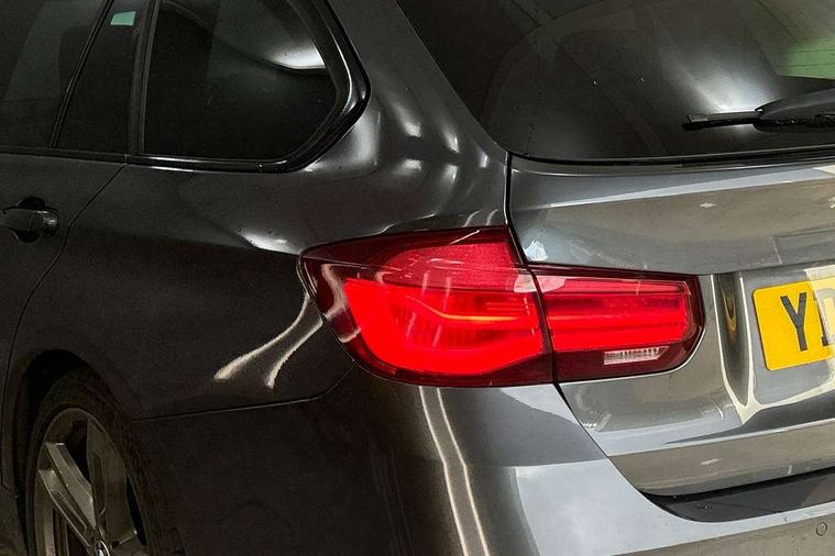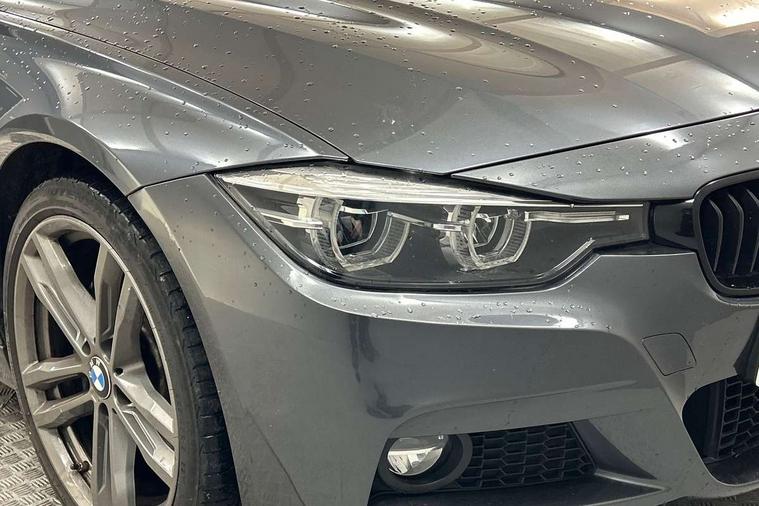 Automatic start/stop system, Automatic tailgate operation, Average speed gauge, BMW iDrive controller on centre console, BMW Online services, BMW remote services, BMW Teleservices, Brake force display, Brake pad wear indicator in front and rear, Check Control warning system for monitoring of lights and door/luggage compartment open warning, Controller and Control Display+6.5" monitor, Cruise control with brake function + speed limiter, Digital clock, Door/boot open warning light, Instrument cluster with speedometer with mph readout, tachometer, fuel gauge and oil temperature gauge, Lights on warning, M Sport instrument cluster, Odometer, Oil sensor for level and grade, On board computer, On board diagnostics, Operation warning of all exterior lights, Optimum shift indicator, Outside temperature display, Pesonal profile, Real time traffic information, Service interval indicator, Trip computer, Battery cut-out switch, Drive Performance Control, Electronic differential lock, Multi-link rear suspension, BMW professional radio/CD/MP3, CD player, DAB Digital radio, Harman/Kardon loud speaker system, 2 speed adjustable intermittent wipers with wash/wipe function, Active air flap radiator grille, Auto dimming rear view mirror, Automatic headlight beam throw control, Body colour bumpers, Body colour door handles, Body colour roof mouldings, Clear indicator lenses, Dark chrome exhaust tailpipe, Dark headlamp surround, Darkened rear light clusters, Direction indicator, side repeaters, integrated in exterior mirrors, Door sill finisher with M designation, Dynamic brake lights, Electric front and rear windows with one touch/convenient open/close function, Front and rear bumper system with replaceable deformation elements, Green tinted heat insulating glass, Heated rear window with automatic switch off, Heated windscreen washer jets, High beam assistant, High gloss black air inlets, High gloss black finish B pillar, High gloss black rear bumper insert, High gloss shadow line, High level third brake light, Independent opening for tailgate window, LED fog lights, LED rear lights, LED welcome home lights, M aerodynamic body styling, Matt black exterior trim, Rain sensor + automatic driving lights control, Rear wash/wipe, Shark fin roof aerial, Sun protection glass, Visible VIN plate, 12V sockets in front centre console and passenger footwell, 3 rear seat head restraints, 4 foldable grab handles - rear with clothes hook, 4 lashing points on luggage floor, 40:20:40 split folding rear bench seat, Anthracite headlining, Automatic interior light soft on/soft off system, Dual zone automatic air conditioning, Folding front centre armrest + storage, Front and rear door armrests, Front and rear velour floor mats, Front door storage bins with bottle holder, Front sports seats with electric side bolster adjustment, Glovebox light, Glovebox opener with chrome spider, Height adjustable front headrests, Indirect front interior illumination - soft-light function, Leather gear knob, Leather gear selector lever handle, Leather handbrake lever, Luggage compartment lighting, Reach + rake adjustable steering column, Rear centre armrest with 2 cupholders, Rear child seat isofix attachment with passenger airbag deactivation, Retractable luggage cover, Separation net, Storage compartment in rear centre console, front and rear door trims and under luggage compartment, Sunvisors with illuminated vanity mirrors and ticket pocket, Through load system, Toolkit located in luggage compartment, Two front cup holders with a sliding lid, Extended lighting package - 3 Series, Extended storage pack - 3 Series Touring/Saloon, High gloss shadow line pack - 3 Series, Interior lights pack - 3 Series Touring, Luggage compartment storage pack - 3 Series Touring, 3 point seatbelts on all seats (2 front, 3 rear), front pyrotechnic belt tensioners and belt force limiters, rear coded belt buckles, ABS, Automatic Stability Control (ASC), BMW emergency call, Brake drying, Brake energy regeneration, Braking pre-tensioning, Cornering brake control (CBC), Crash sensor, Driver and front passenger front and side airbags with passenger deactivation and ITS front and rear head airbags, DSC+, Dynamic brake control, Dynamic Traction Control - DTC, Hill start assist, M Sport braking system, Rear child proof door locks, Seatbelt security check for driver seat, Side impact protection, Twin horns, Tyre pressure monitor, Ventilated front and rear disc brakes, Warning triangle and first aid kit, Alarm system (Thatcham 1) with remote control and electronic engine immobiliser, Automatic drive away locking facility, Central locking switch for all doors, fuel filler cap and luggage compartment, Remote control including integrated key with blue insert, Start/stop button with Comfort Go keyless engine start and auto Start/stop deactivation button, Air-conditioning and radio control panel with Chrome highlight, 19" M double spoke alloy wheels style in bicolour orbit grey - style 704M, Low rolling resistance tyres, Run-flat tyres,